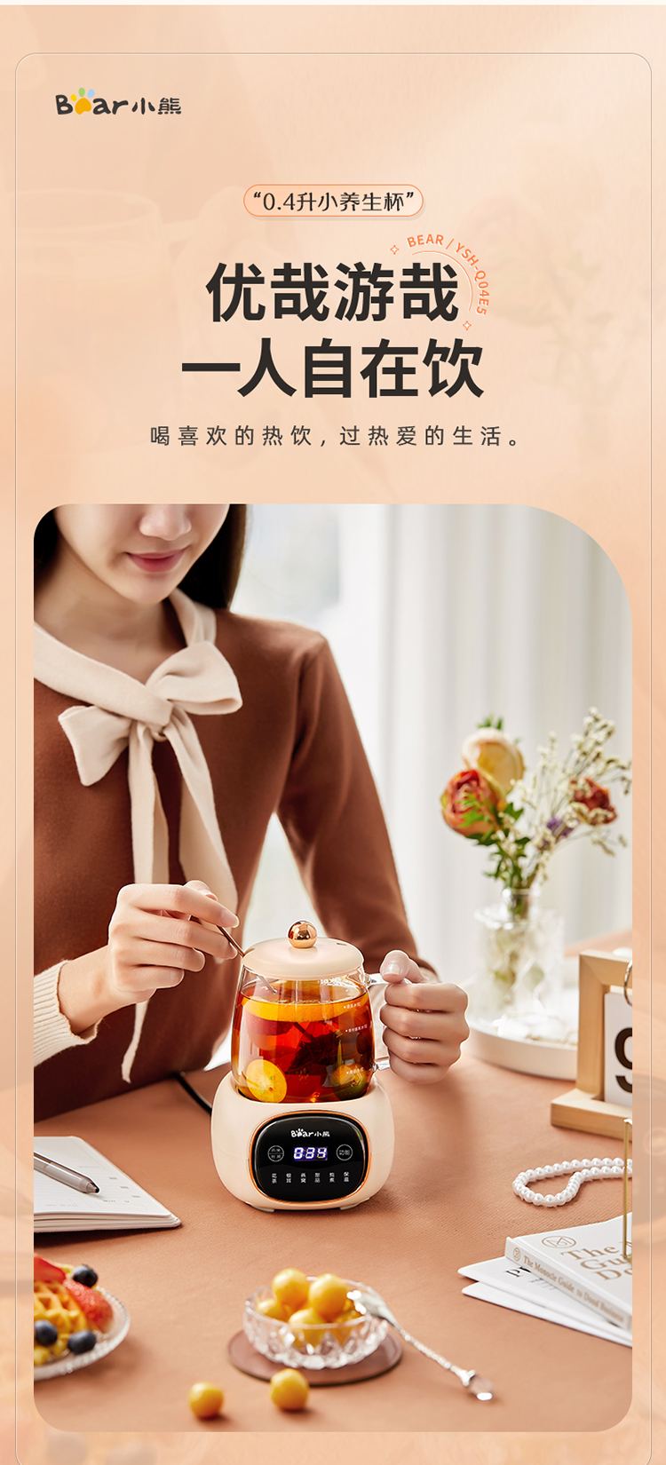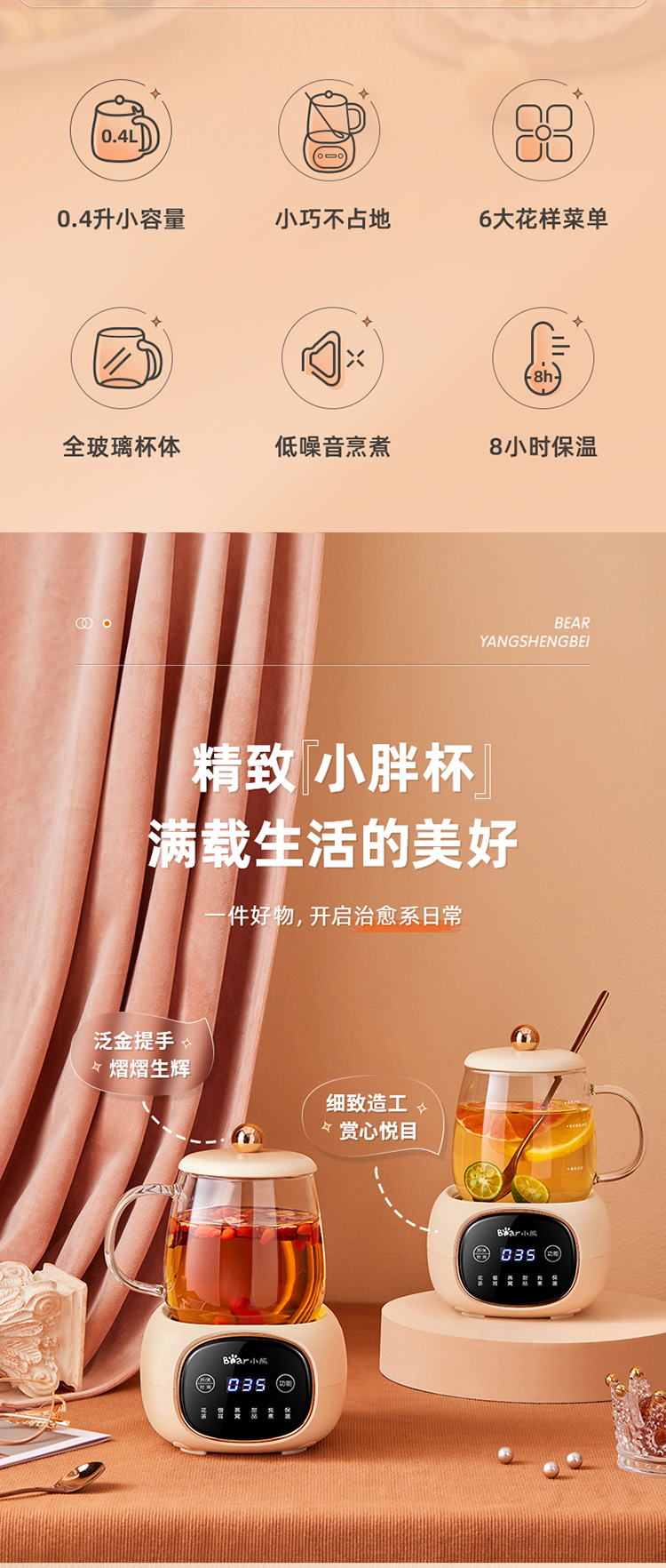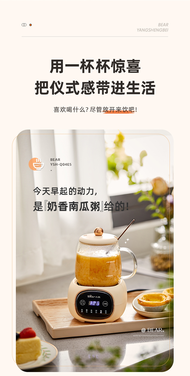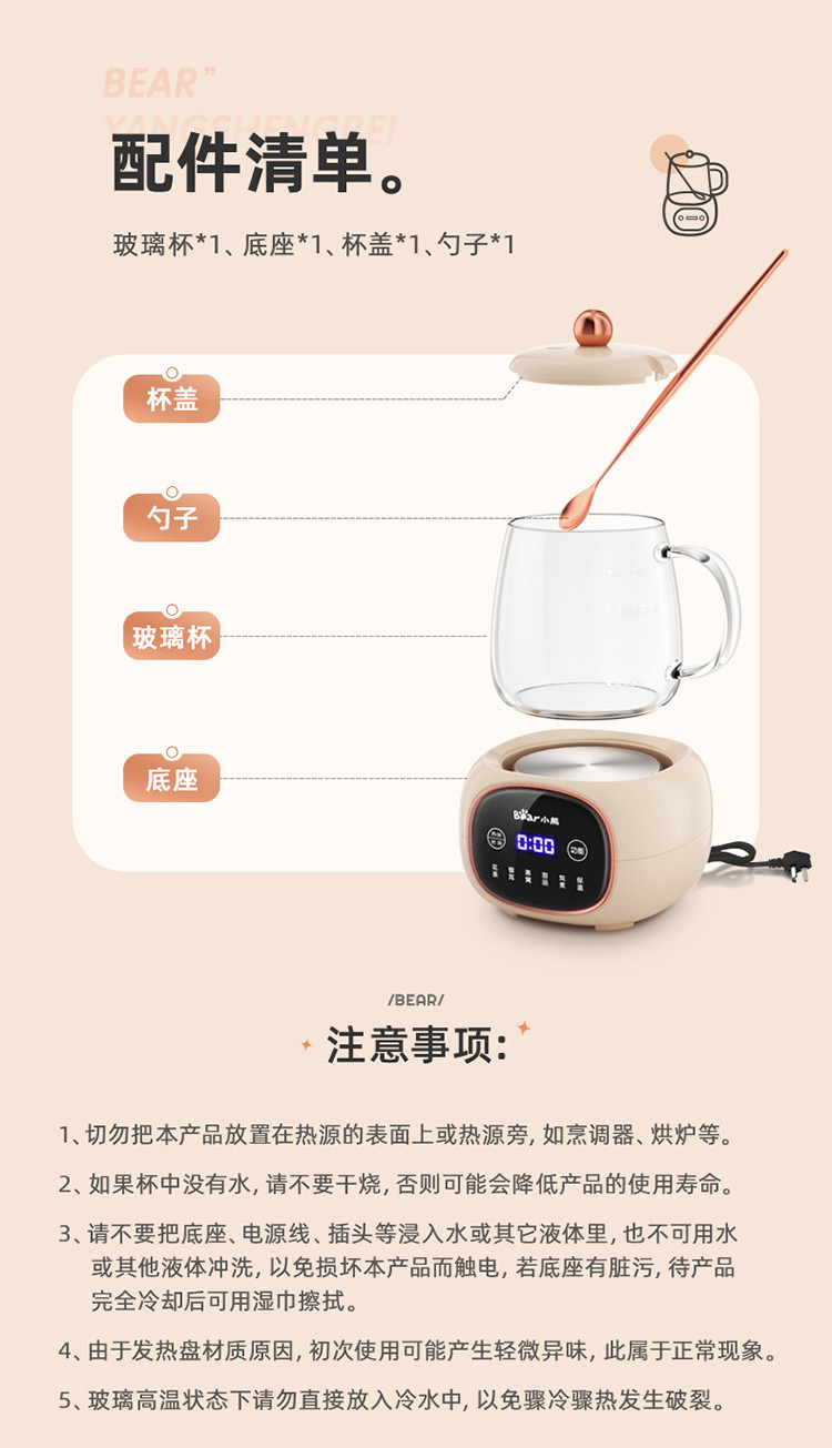 (特)小熊(Bear)迷你养生壶养生杯 电炖杯电热杯煮花茶壶烧水壶办公室杯子0.4L全玻璃杯体YSH-Q04E5