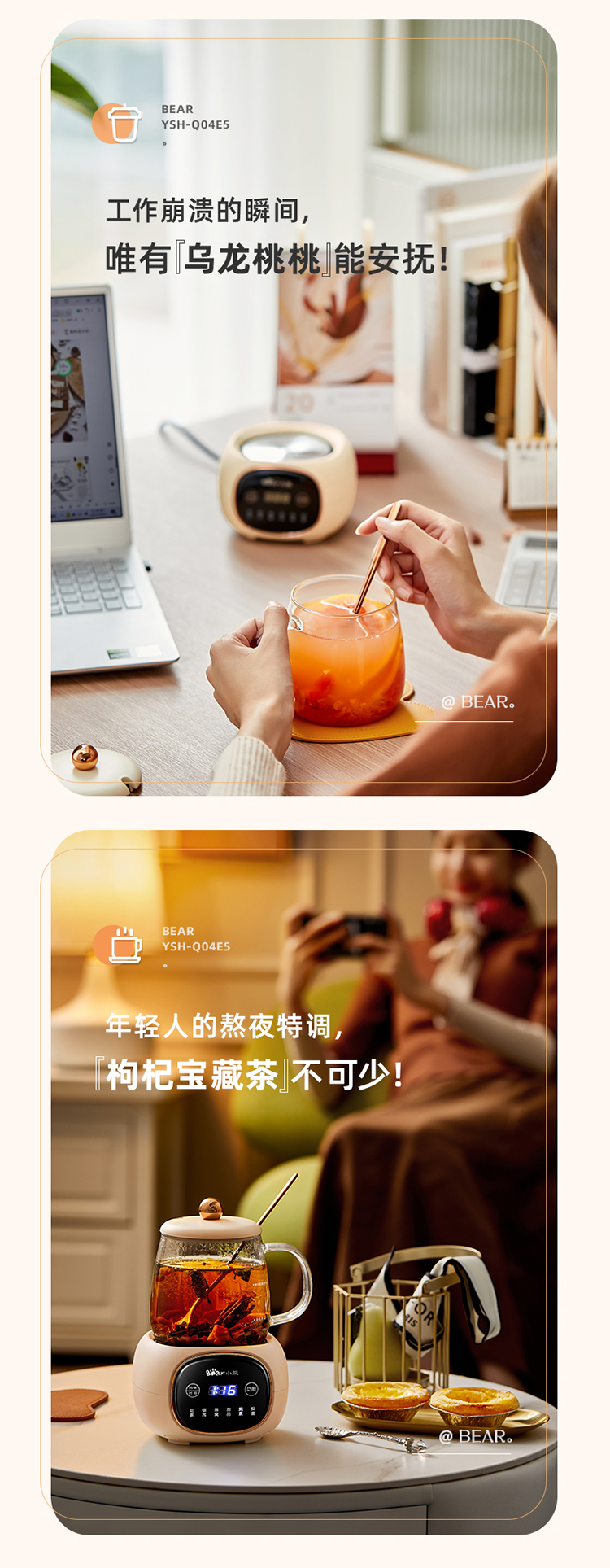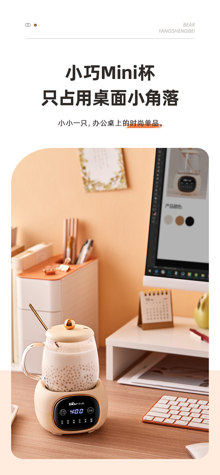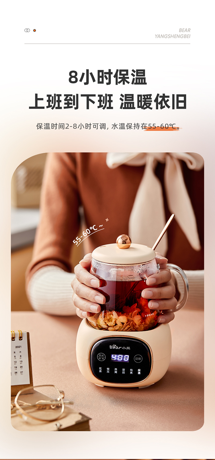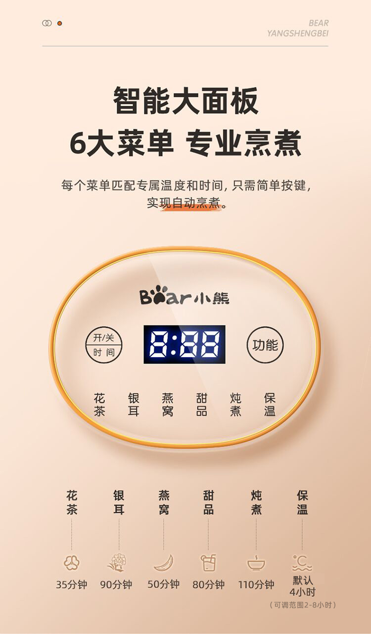 (特)小熊(Bear)迷你养生壶养生杯 电炖杯电热杯煮花茶壶烧水壶办公室杯子0.4L全玻璃杯体YSH-Q04E5