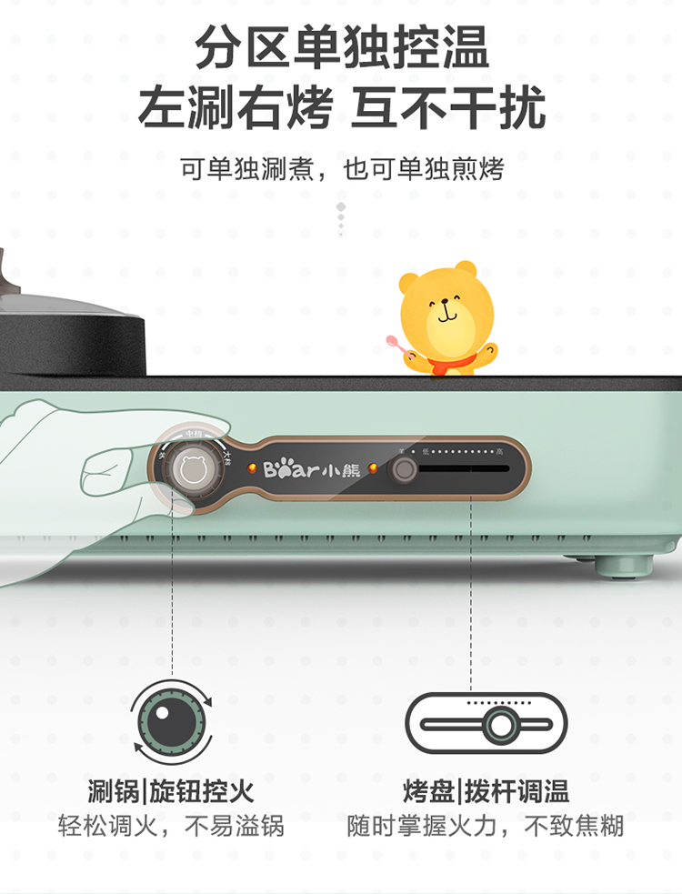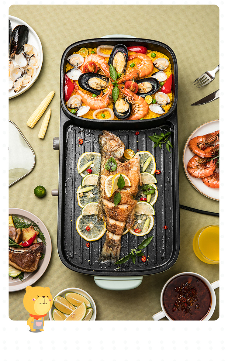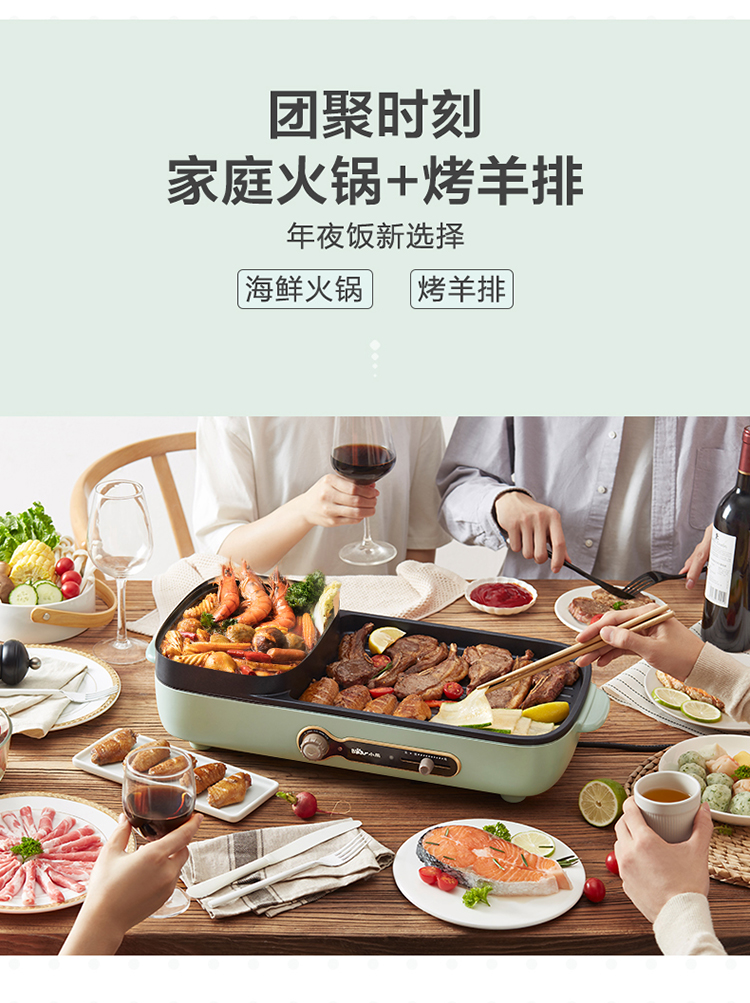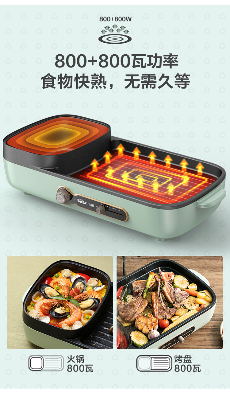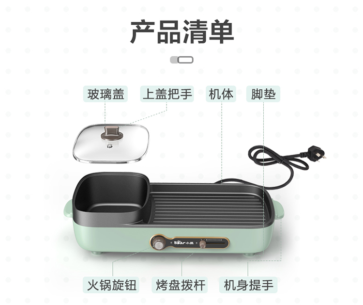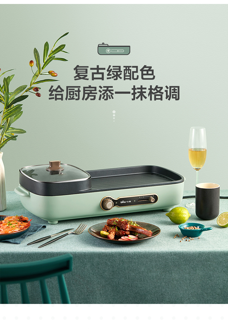 (特)小熊(Bear)烤肉锅 烧烤炉 烤涮一体两用锅电烤盘烤肉机家用烤肉盘多功能电火锅电烤炉DKL-C15G1