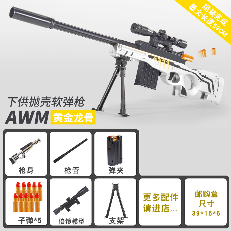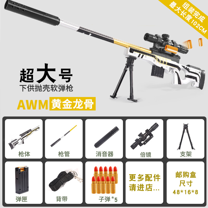 - 支架标靶+大号AWM-102CM抛壳软弹枪-银【电商盒】