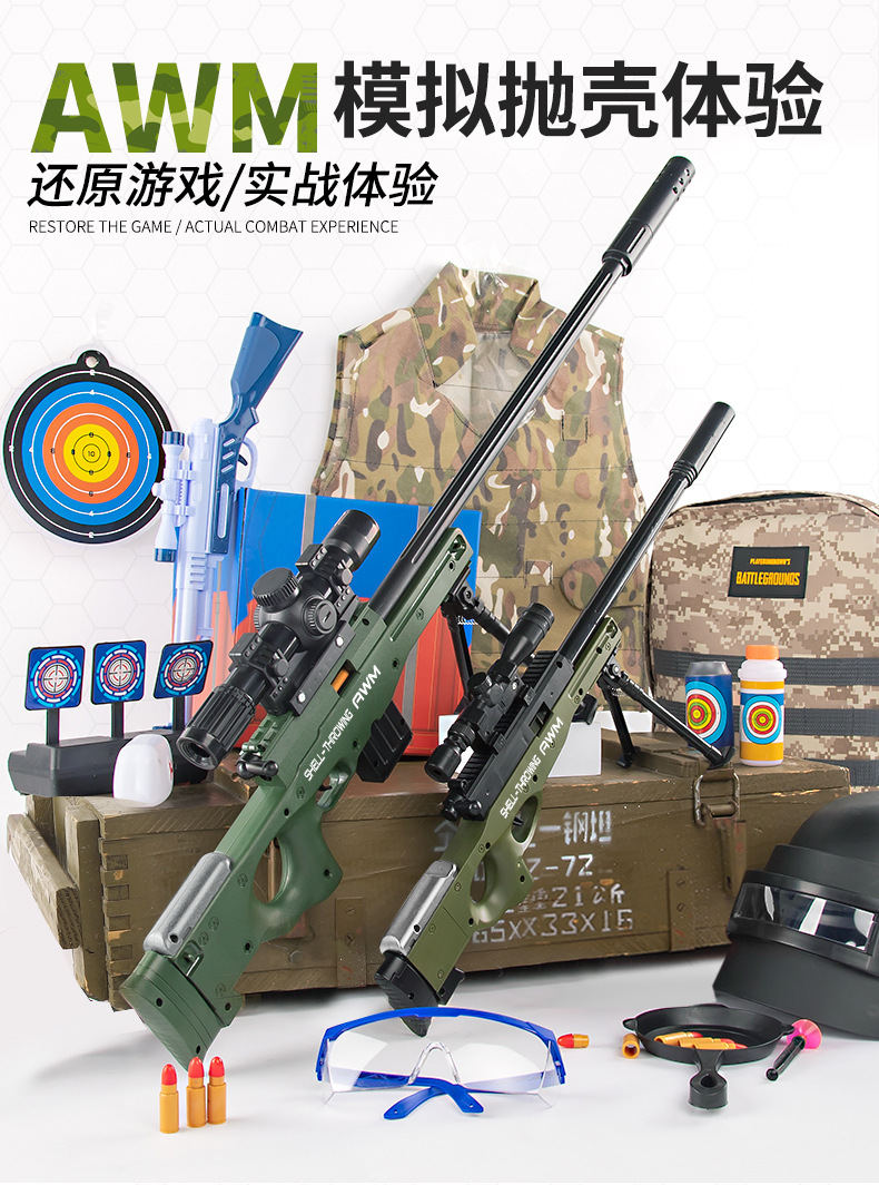 - 支架标靶+大号AWM-102CM抛壳软弹枪-绿【电商盒】