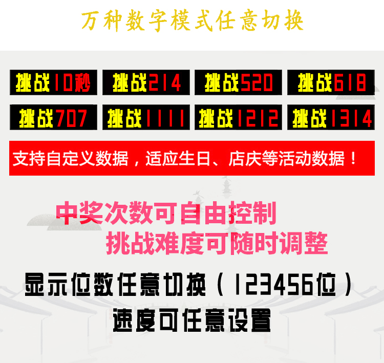 - 2.3寸6位屏幕 带音乐 插电或充电宝