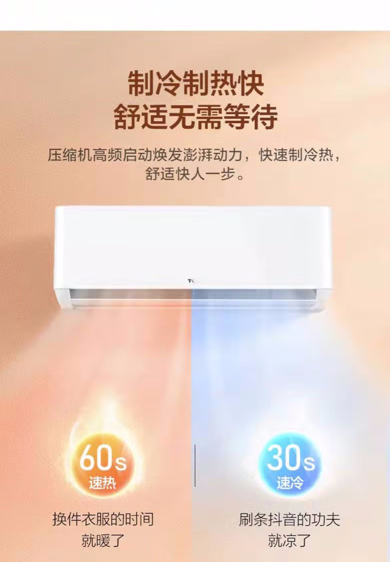 TCL空调 1.5匹 新三级能效 变频冷暖 壁挂式空调(包3米铜管)