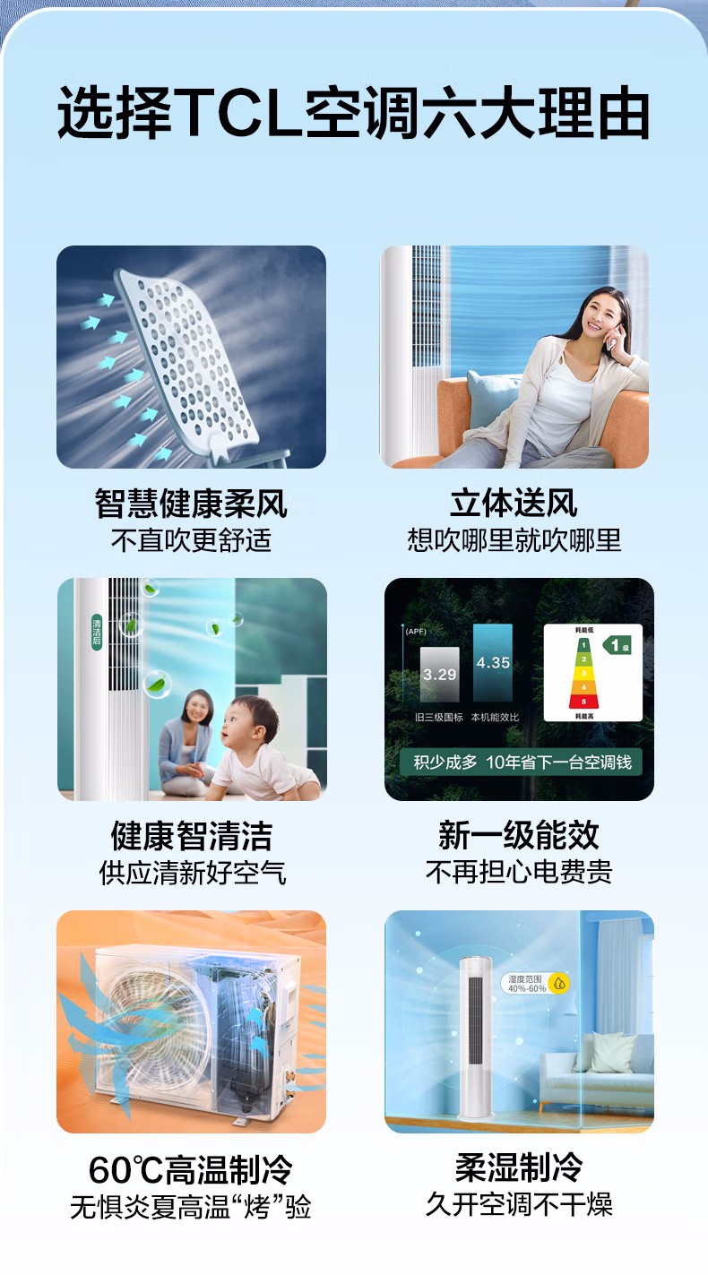 TCL空调 大2匹 变频冷暖 一级能效 柔风自清洁 圆柱立柜式空调