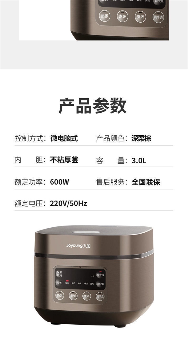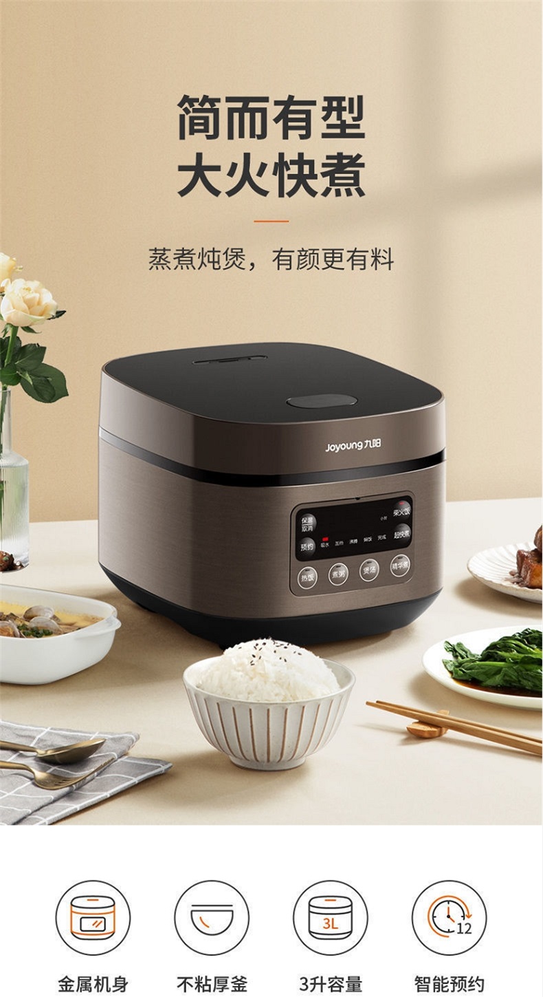 九阳(Joyoung)电饭煲电饭锅3L大火力智能预约多功能焖煮防溢家用迷你电饭煲 F30FZ-F4170