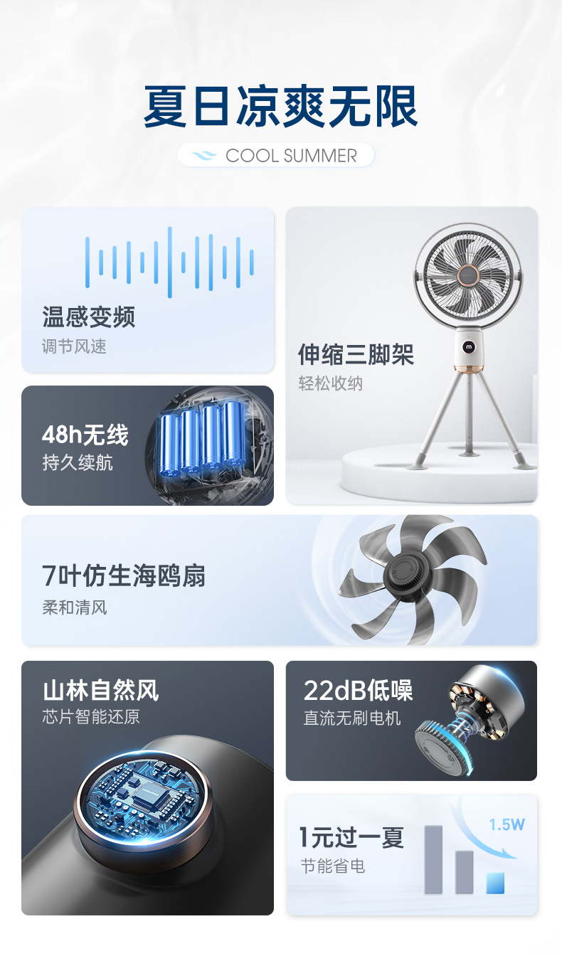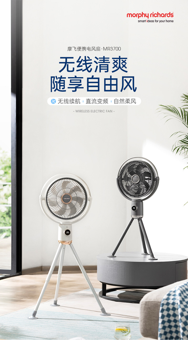摩飞电器(Morphyrichards)电风扇 空气循环扇 家用立式风扇落地扇 无线遥控直流变频伸缩电扇 MR3700白