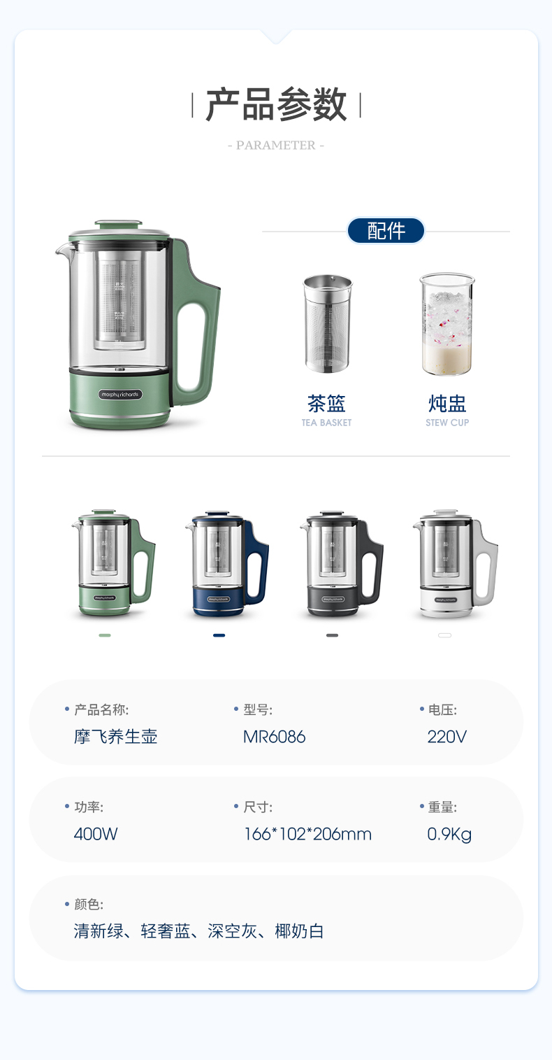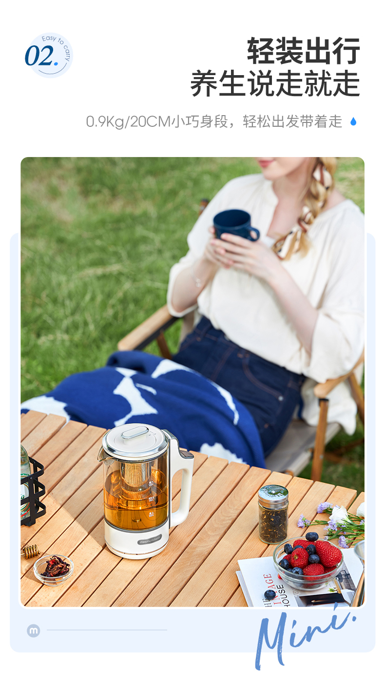 (特)摩飞(Morphyrichards)便携养生壶迷你煮茶器烧水壶养生杯小型办公室家用多功能煮茶壶热水壶MR6086