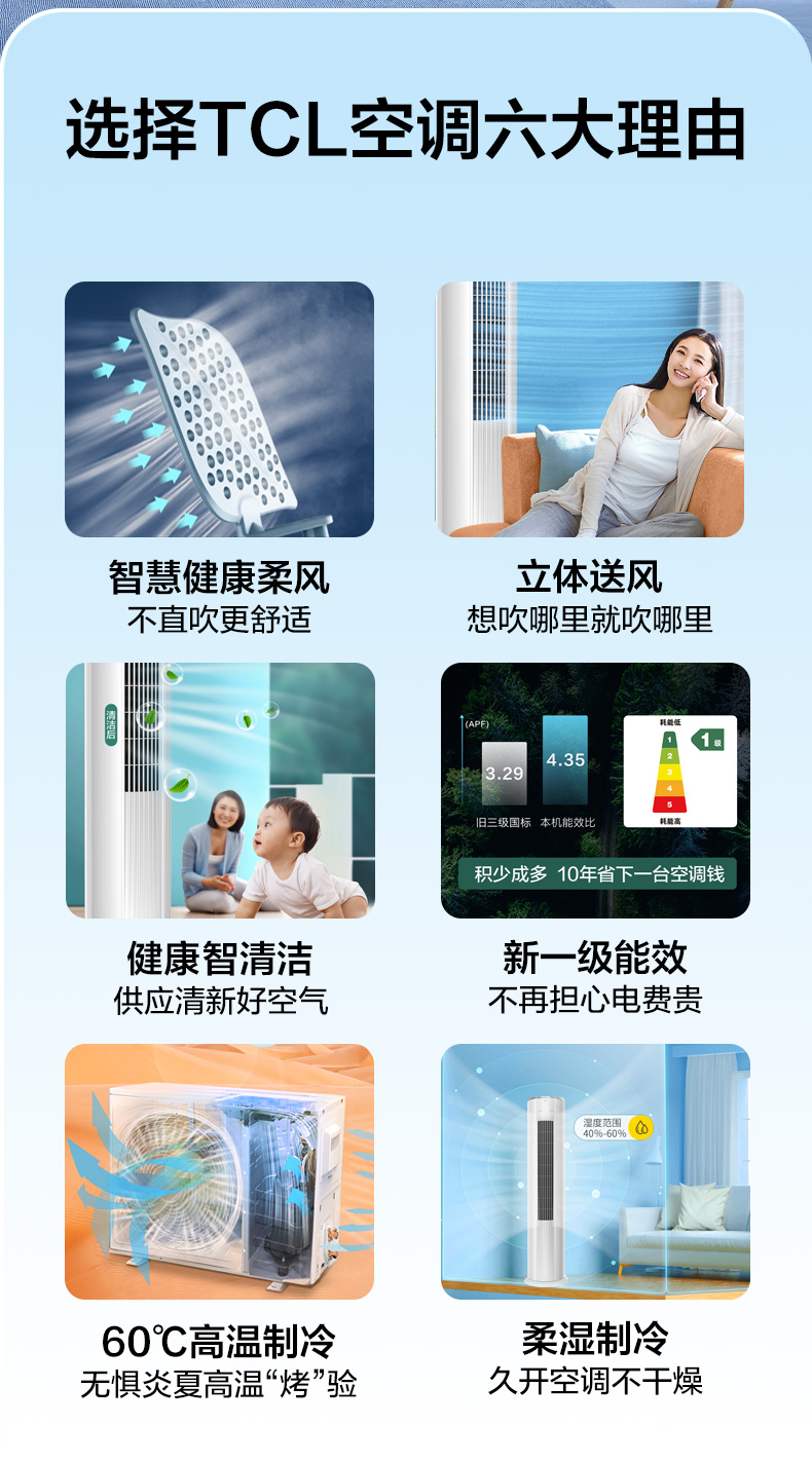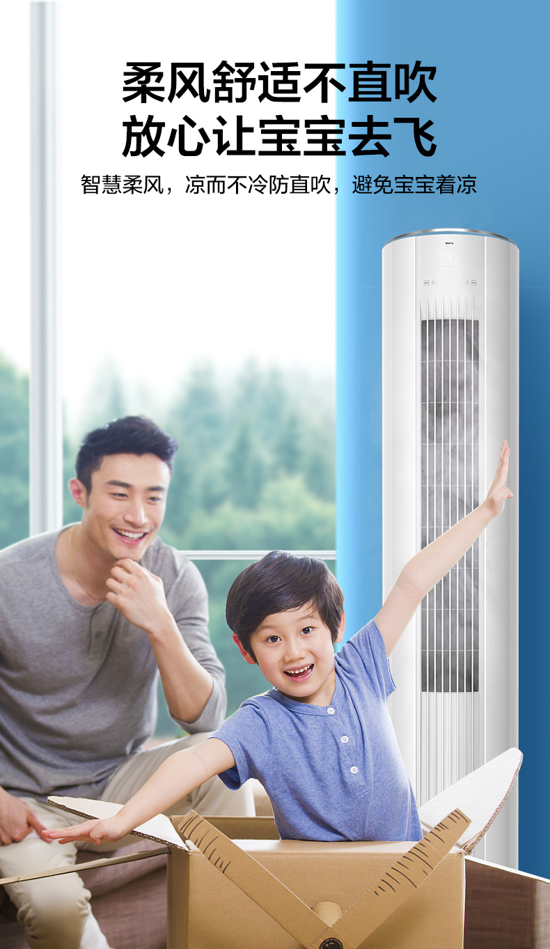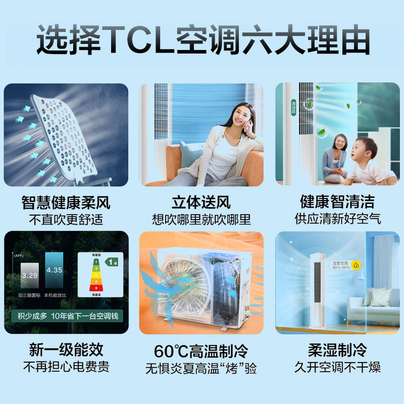 TCL空调 大3匹 变频冷暖 一级能效 柔风自清洁 圆柱立柜式空调