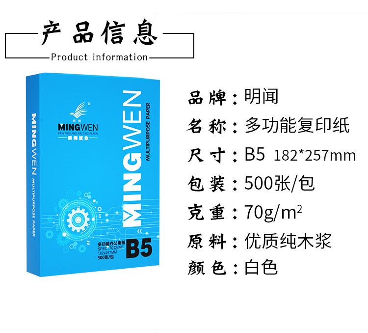 (特)明闻B5打印纸复印纸70g一包白纸打印纸