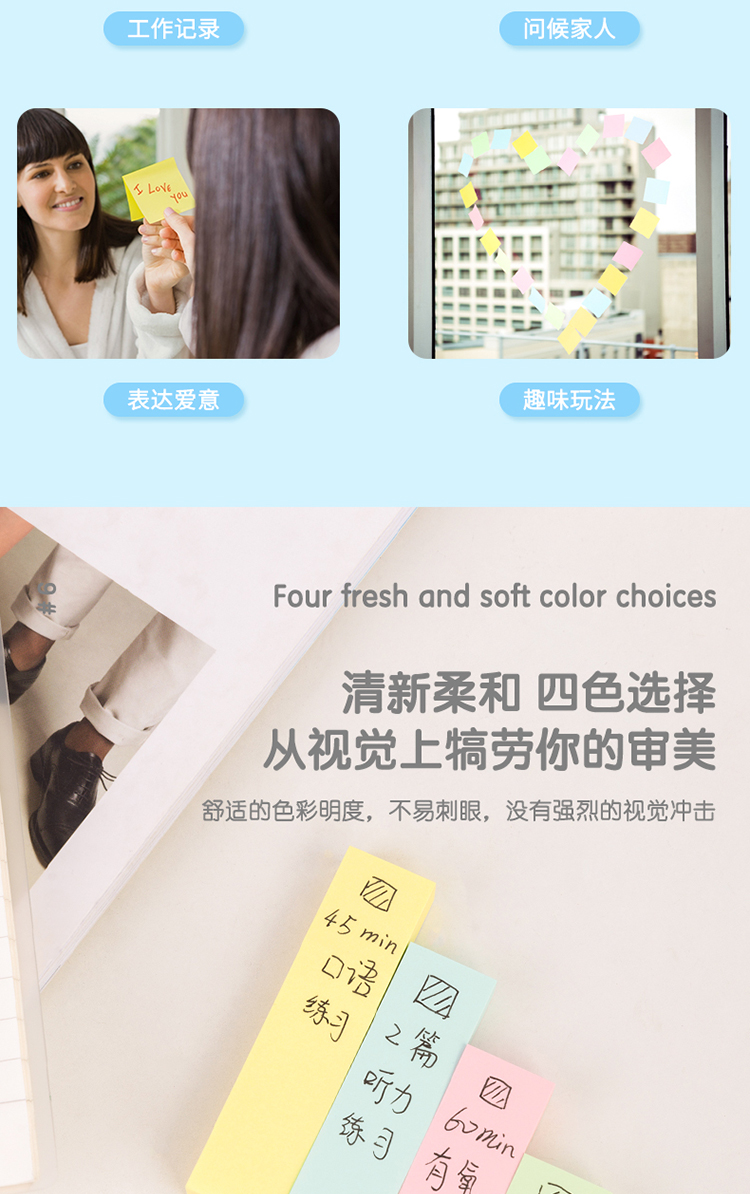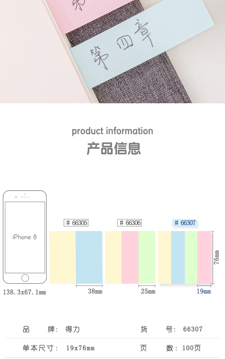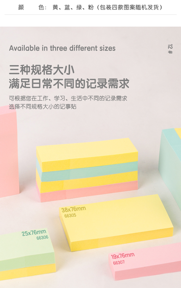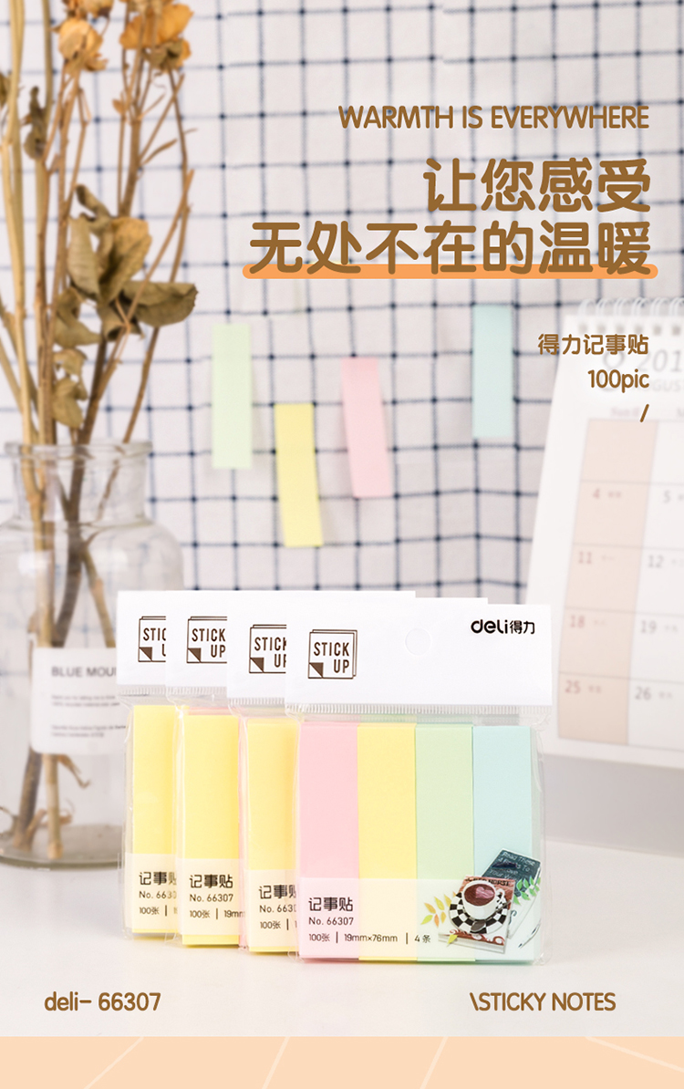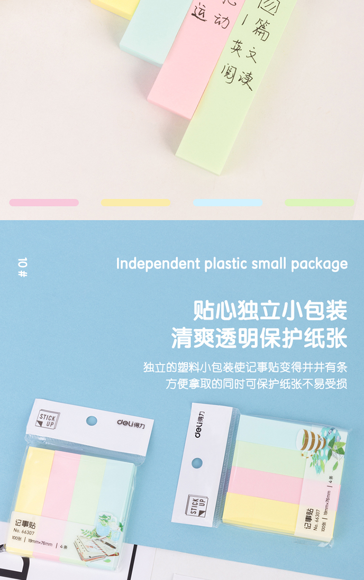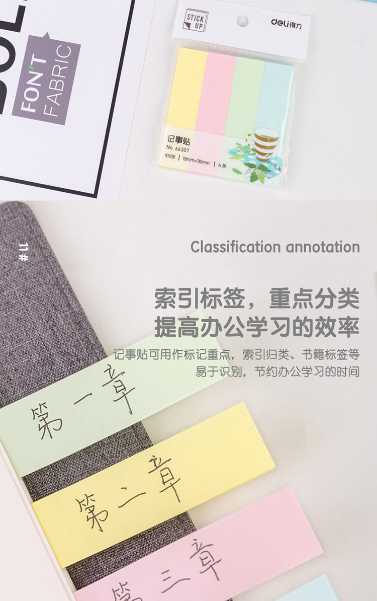得力(deli)400张4色分条便利贴便签纸 76*19mm记事贴 66307