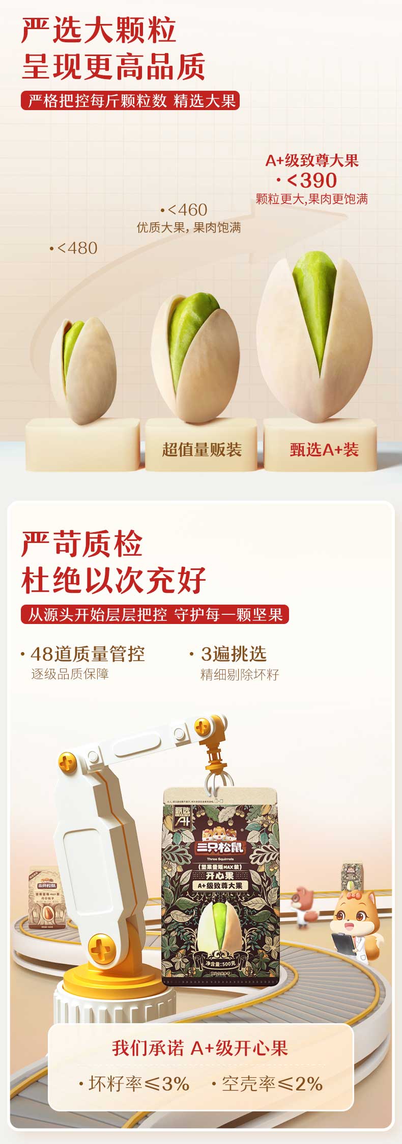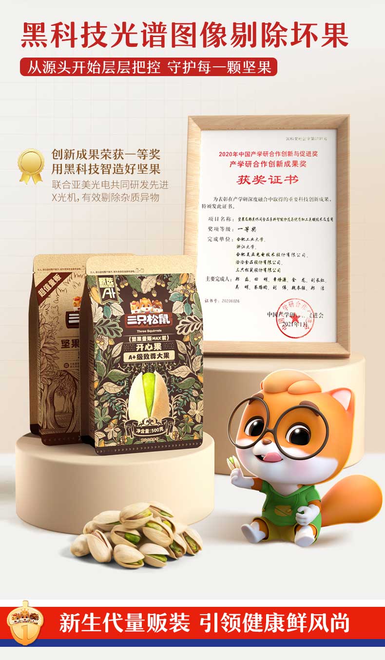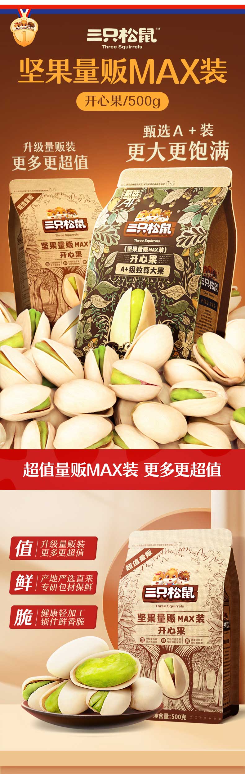 (特)三只松鼠 量贩开心果500g 坚果原色盐焗味干果零食特产1斤