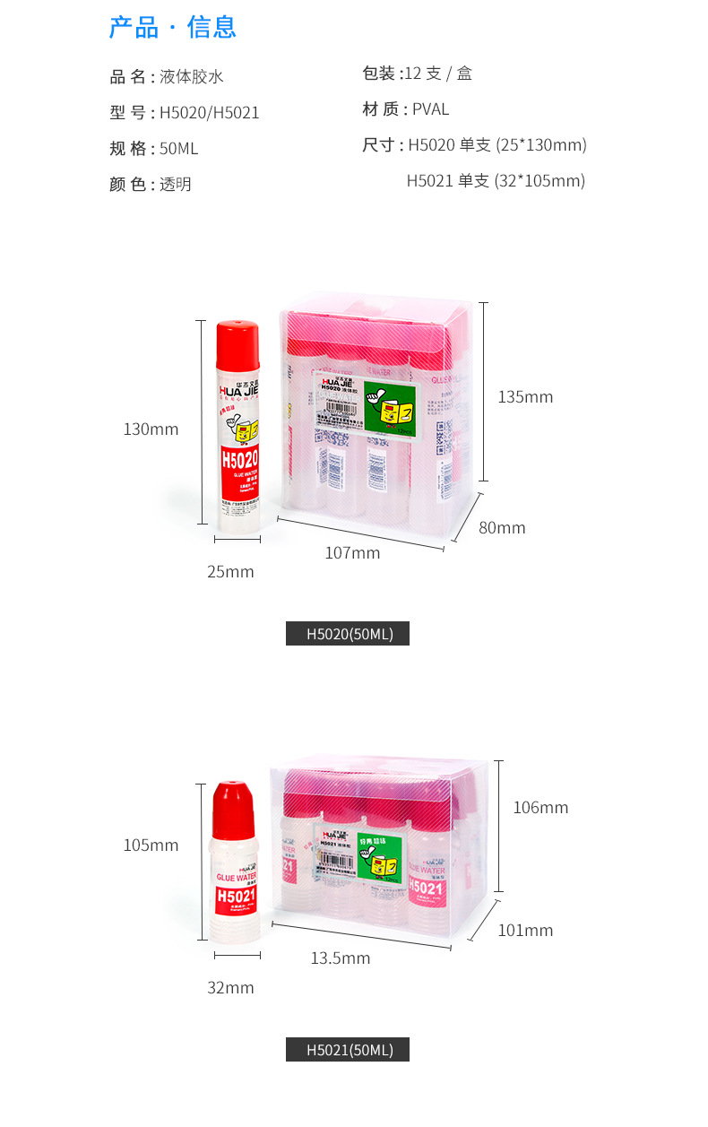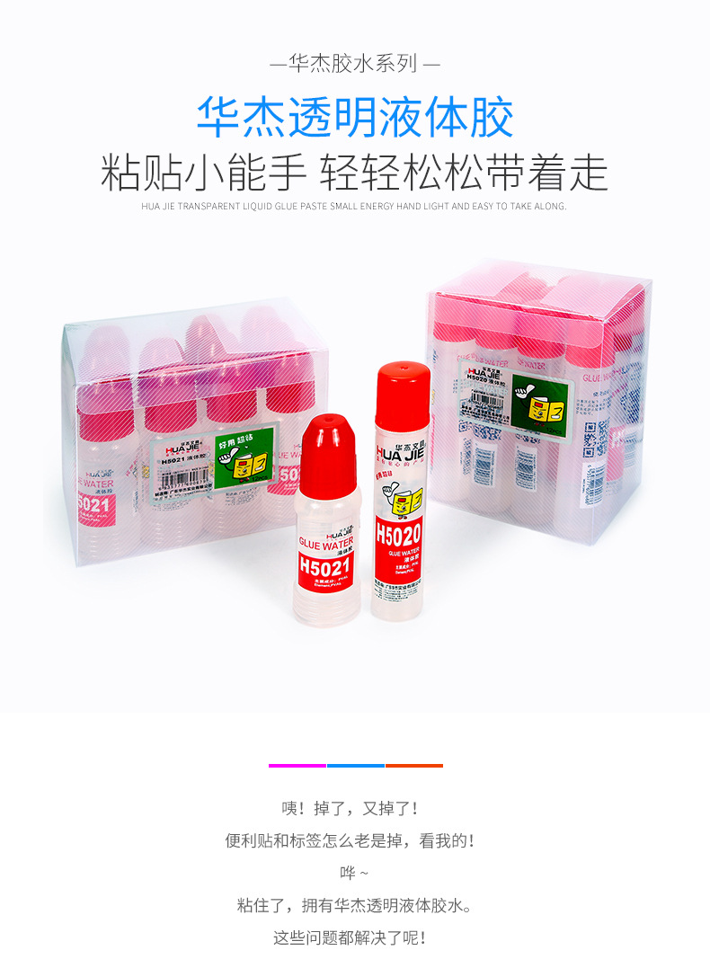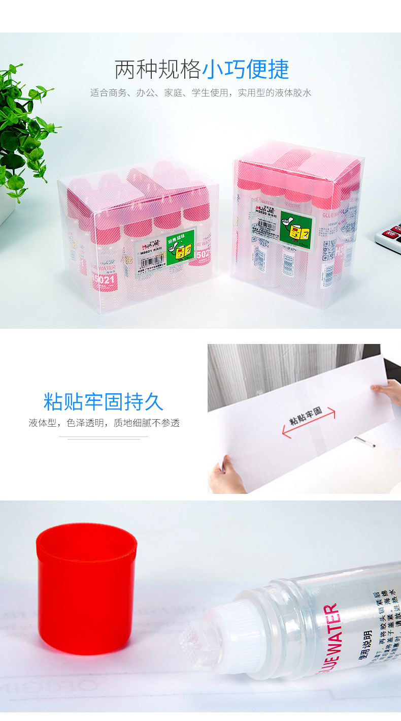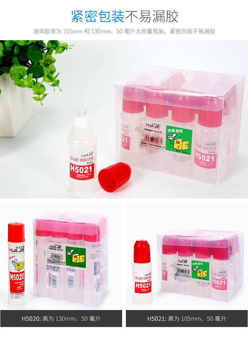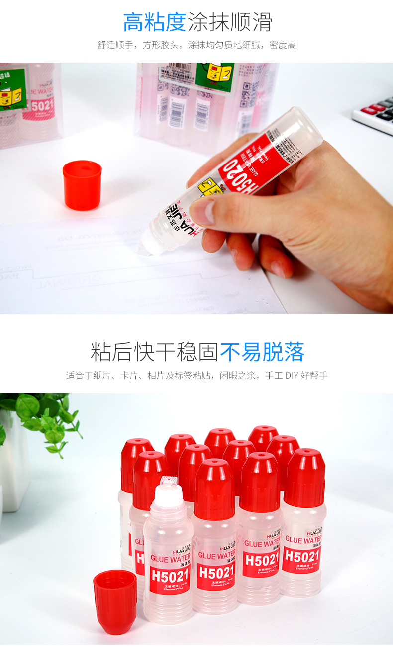 (特)华杰文具液体胶水学生中号胶水办公用品50ML透明液体胶黏胶水 12支装