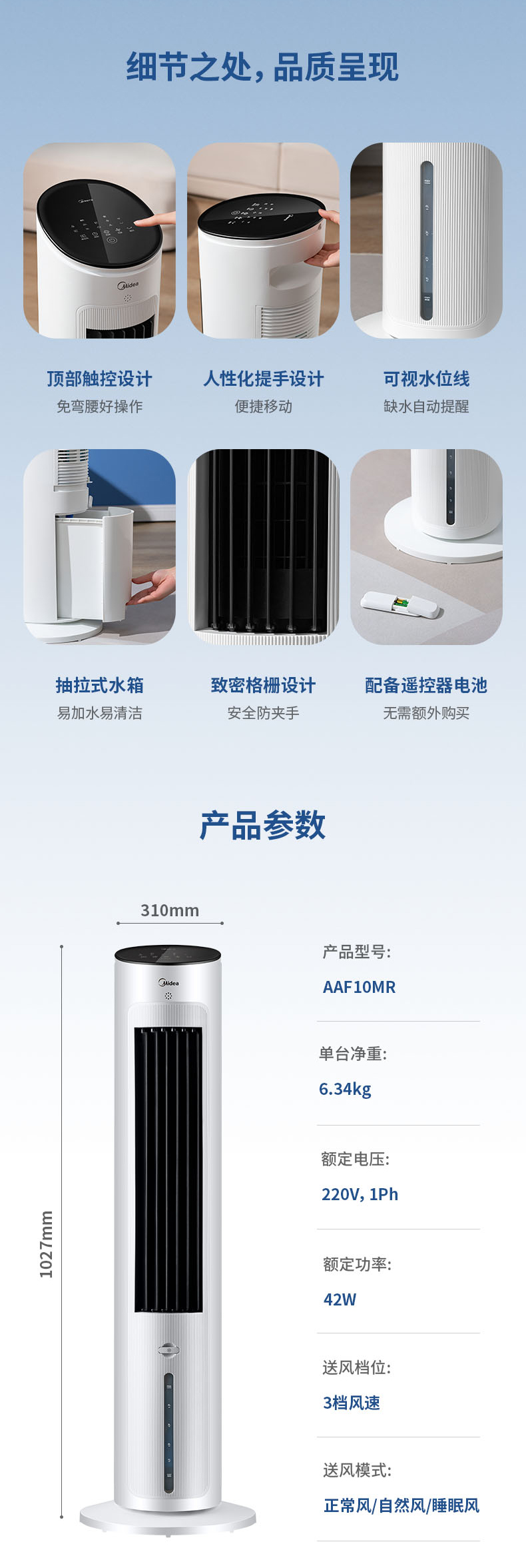 (特)美的空调扇家用水冷气扇静音冷风机制冷气机小型宿舍移动水空调扇AAF10MA