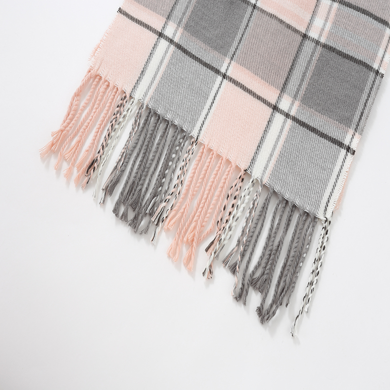 恒源祥 柔暖围巾 30x180+10x2cm 灰格 HYX036WJ