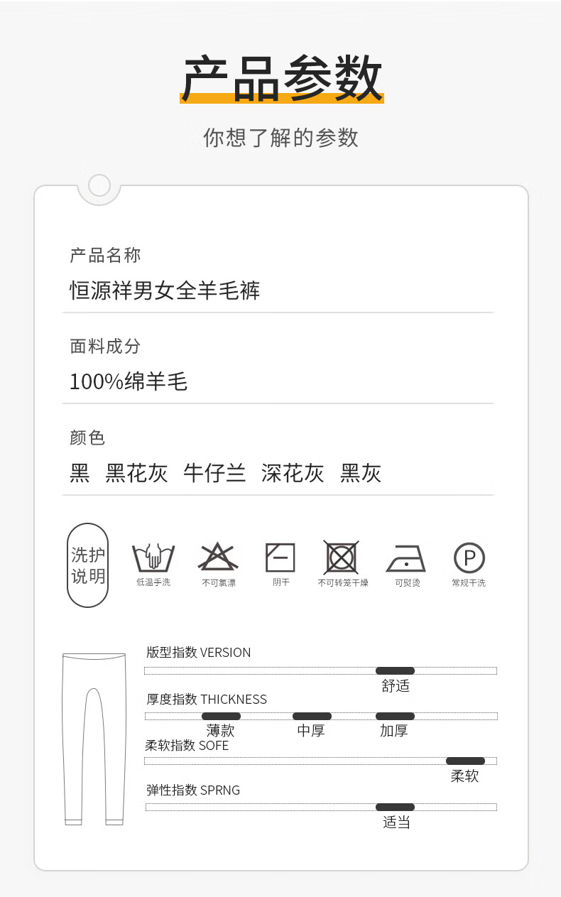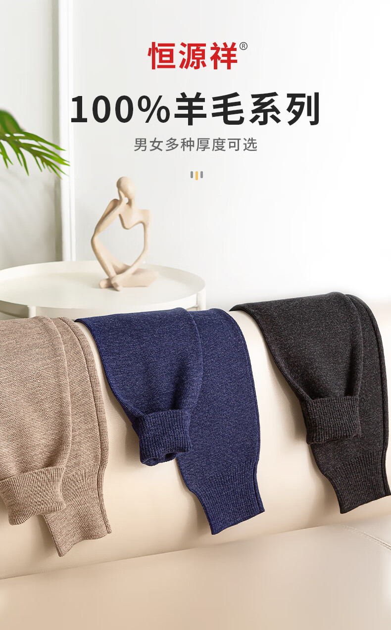 恒源祥 羊毛裤中厚全羊毛保暖裤打底裤 男款 k127745 女款 k127748
