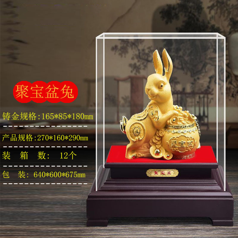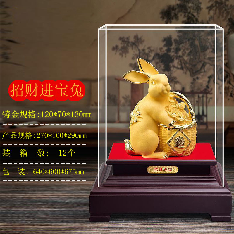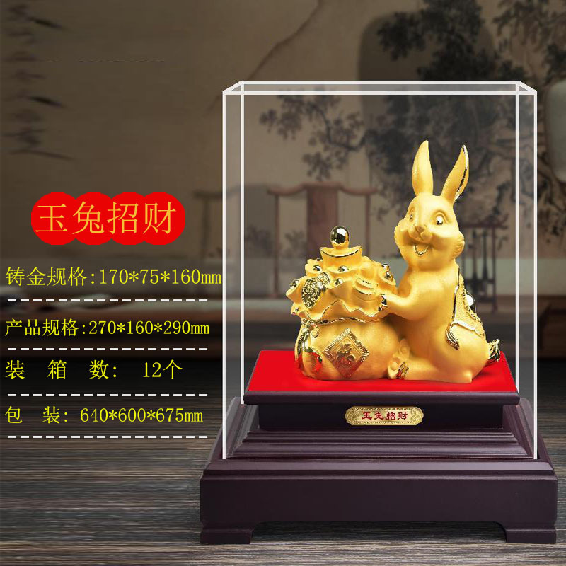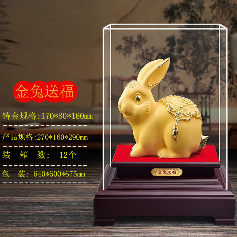 兔子摆件 金兔摆件玉兔招财 绒沙金礼品生肖兔摆件年会开门红送礼