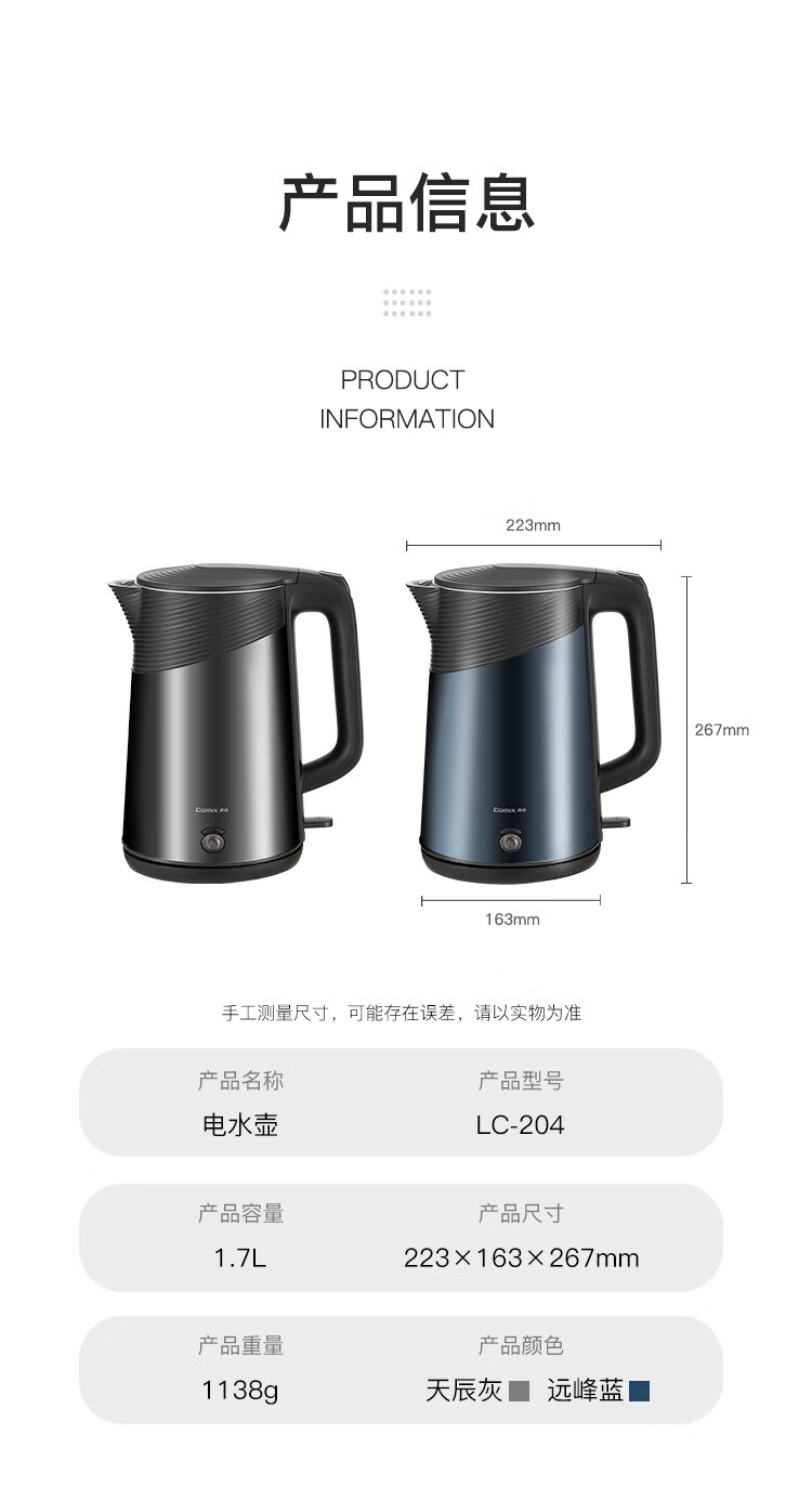 齐心(COMIX) 简约轻奢电水壶 LC-204