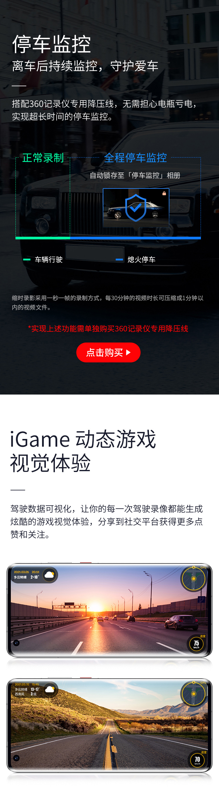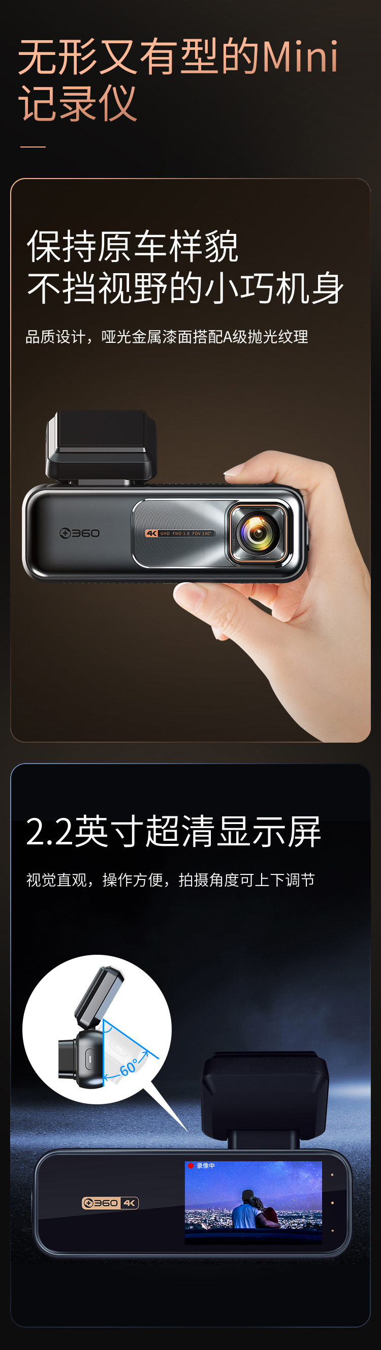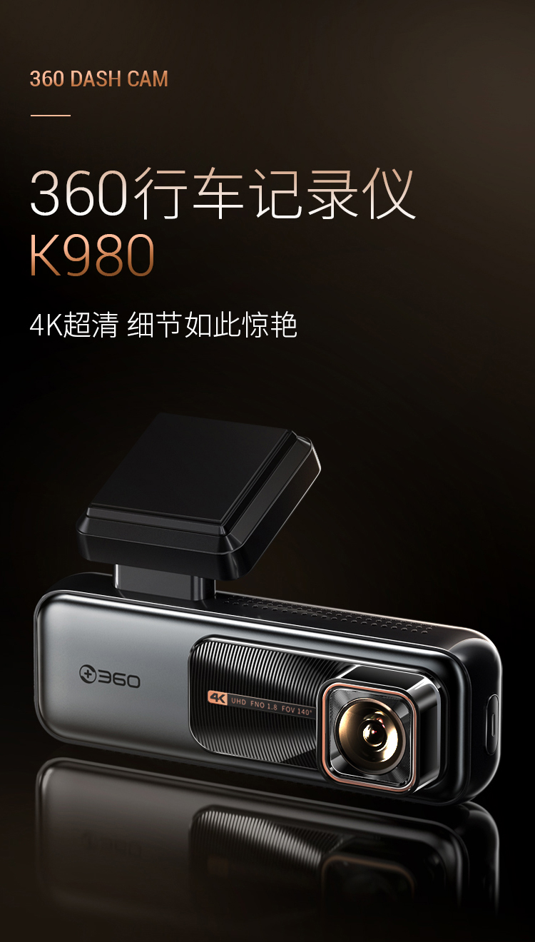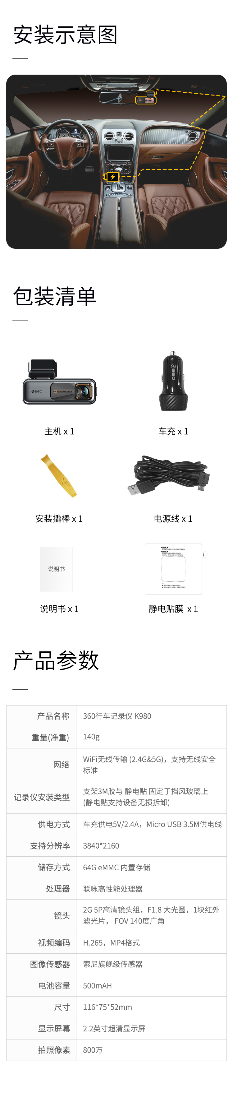 (特)360行车记录仪K980 4K超清画质 SONY影像传感器 内置64G存储 2.2英寸屏幕 触控按键 5GHzWiFi传输