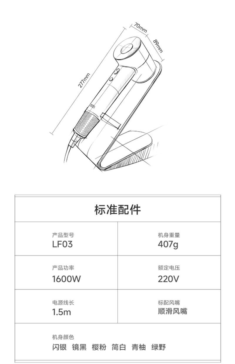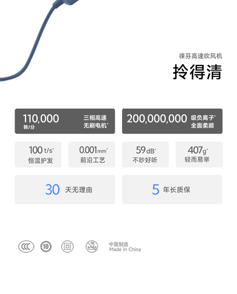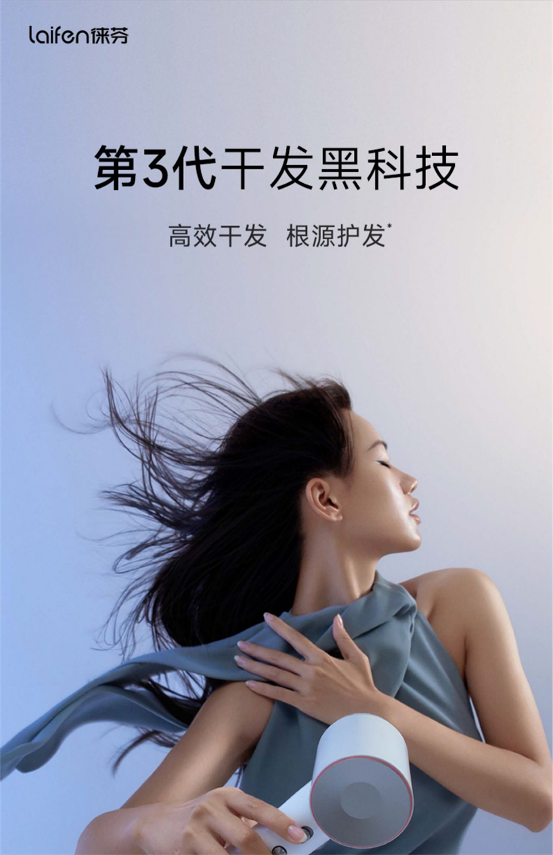 (特)徕芬 吹风机家用电吹风筒新一代大功率高速吹风机负离子大风力速干低噪音莱芬便携无叶 LF03