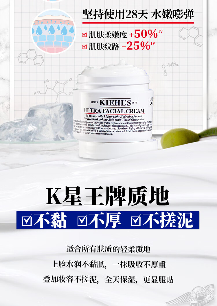 科颜氏(Kiehs)高保湿面霜 保湿补水乳液缓解皮肤干燥润肤舒缓修复