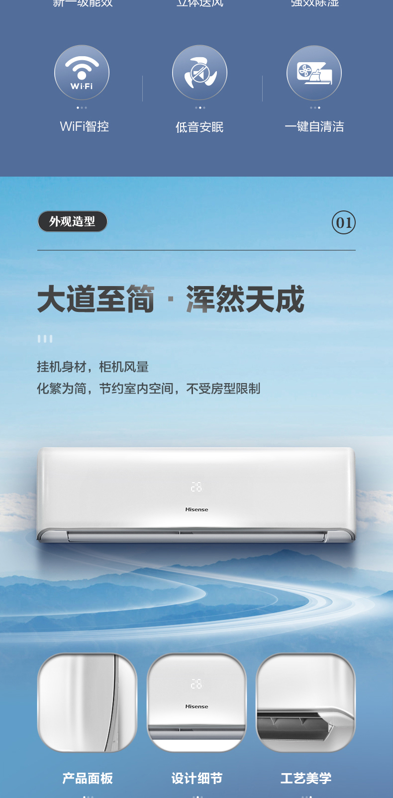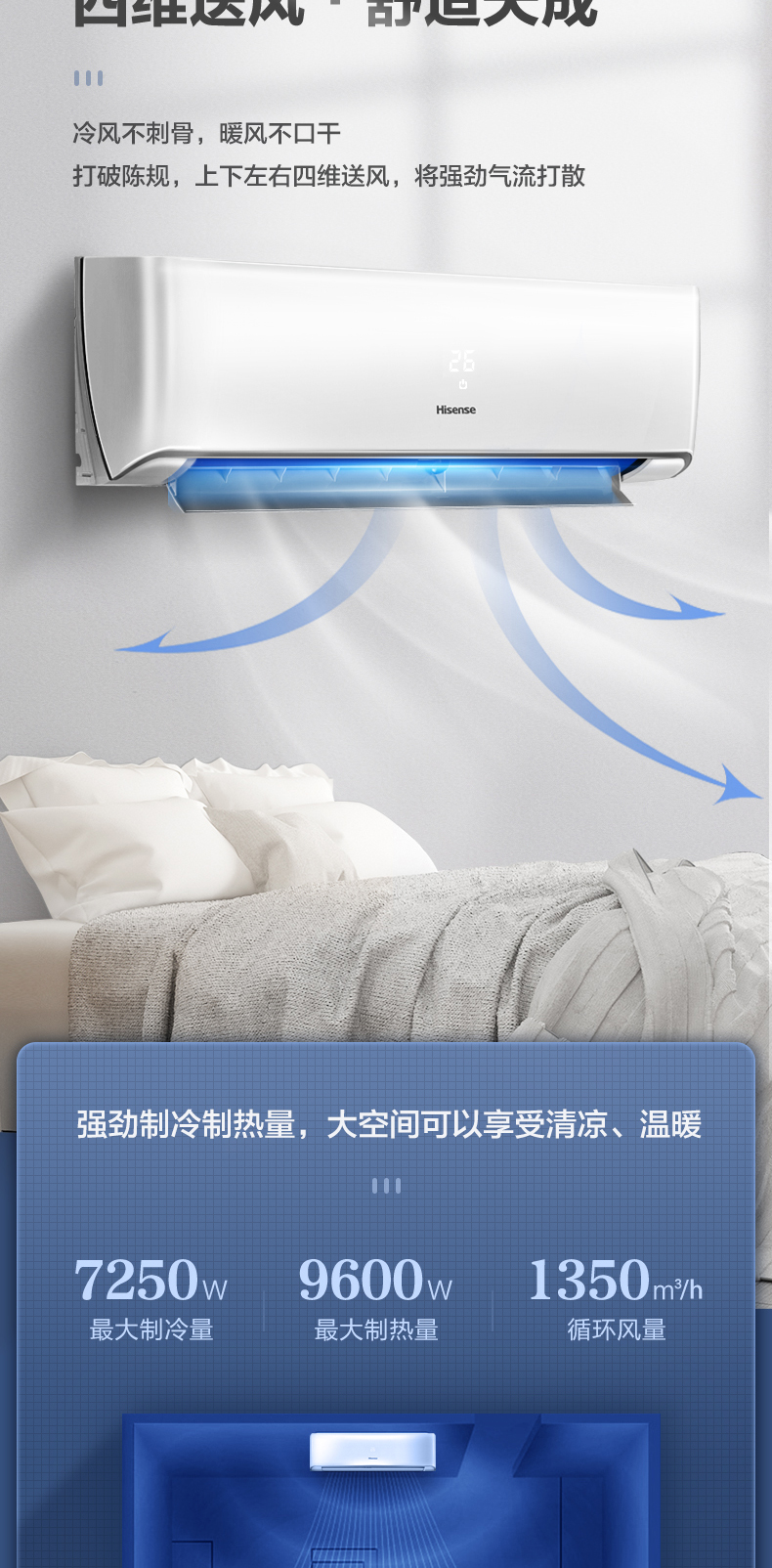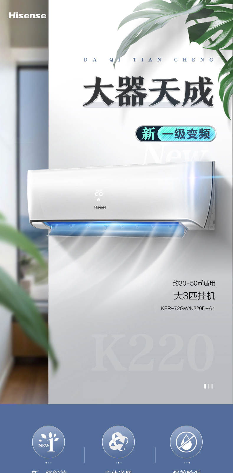 (特)海信(Hisense)3匹空调挂机三匹变频新一级能效冷暖壁挂式家用WIFI智能空调 KFR-72GW/K220D-A1