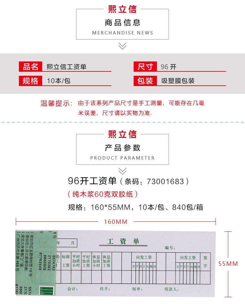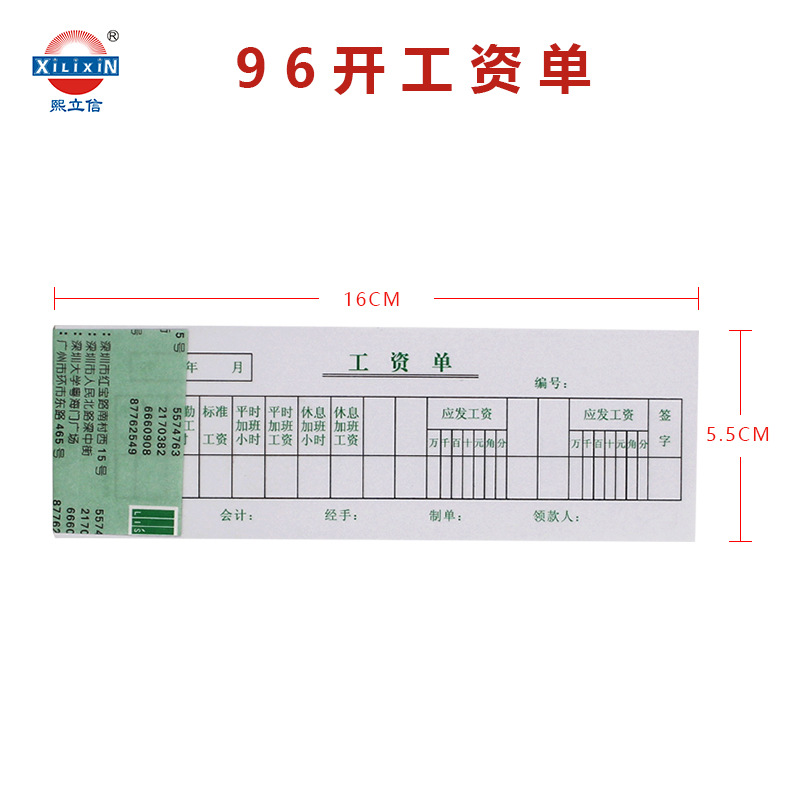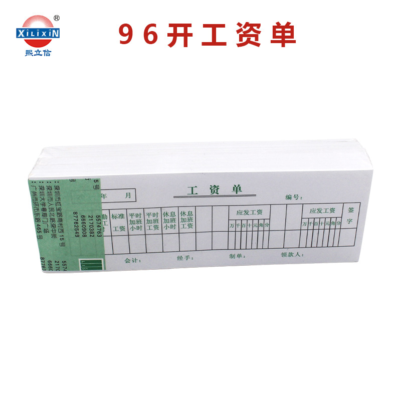 熙立信 96开工资单据 工资条工资表票据薪金单薪水单月薪单工钱条