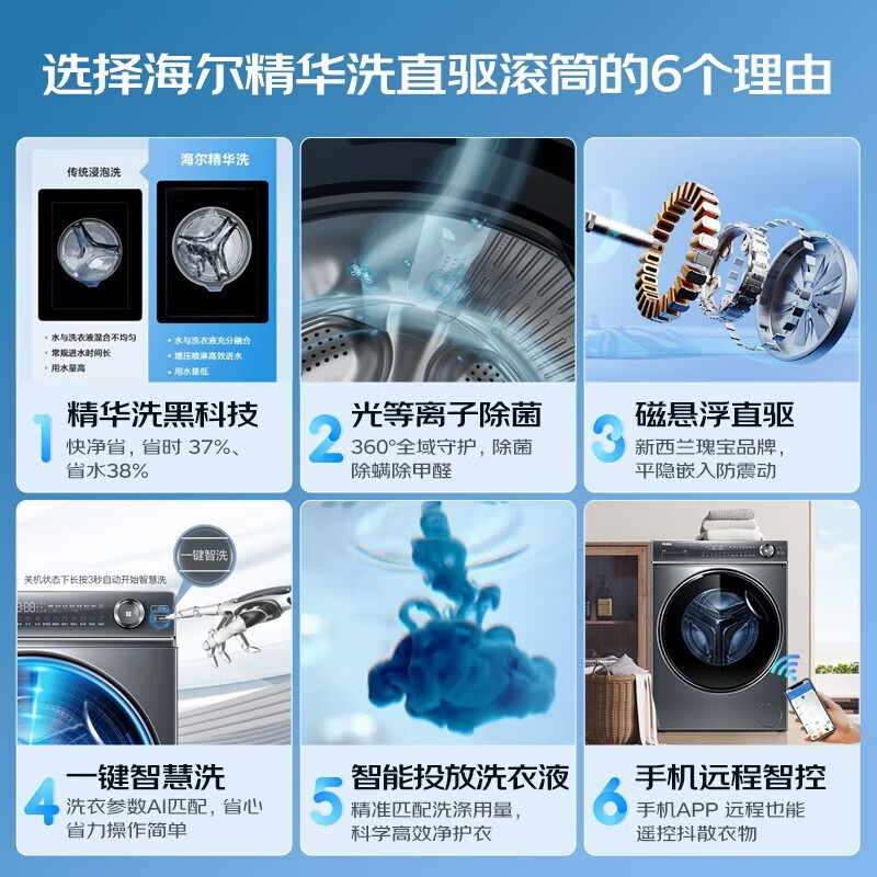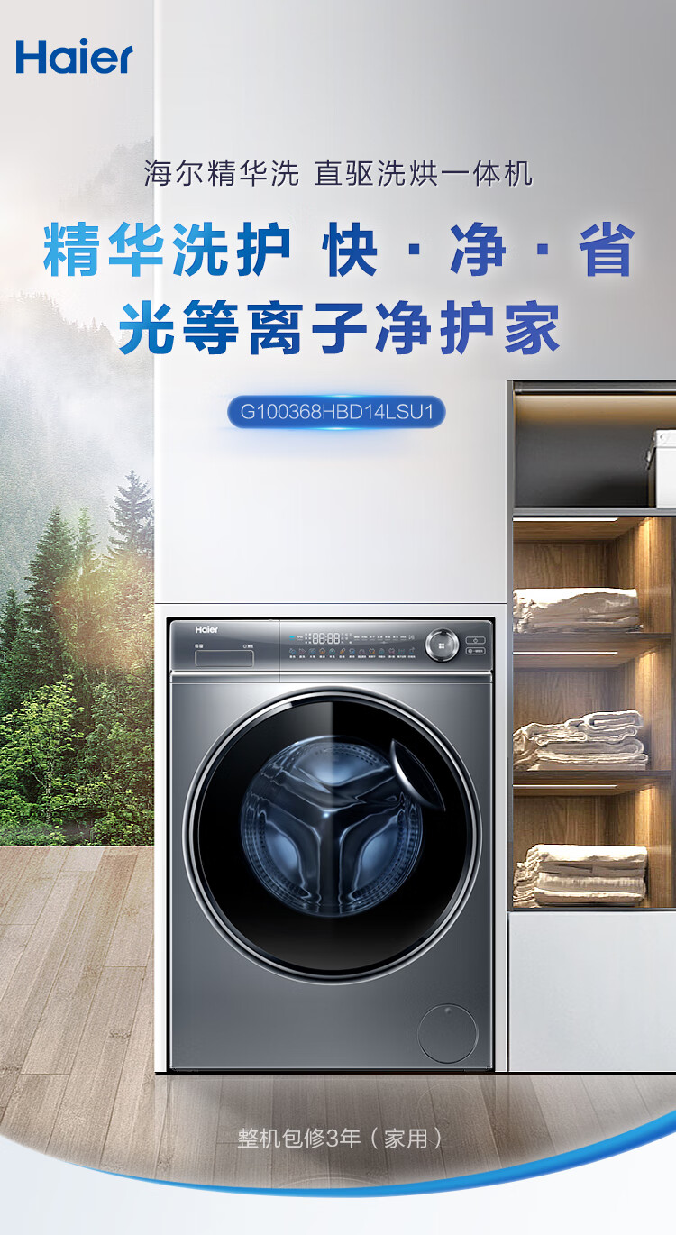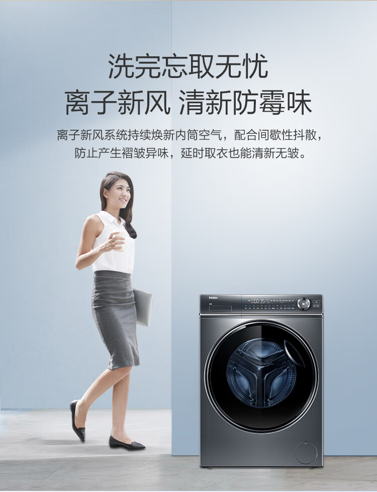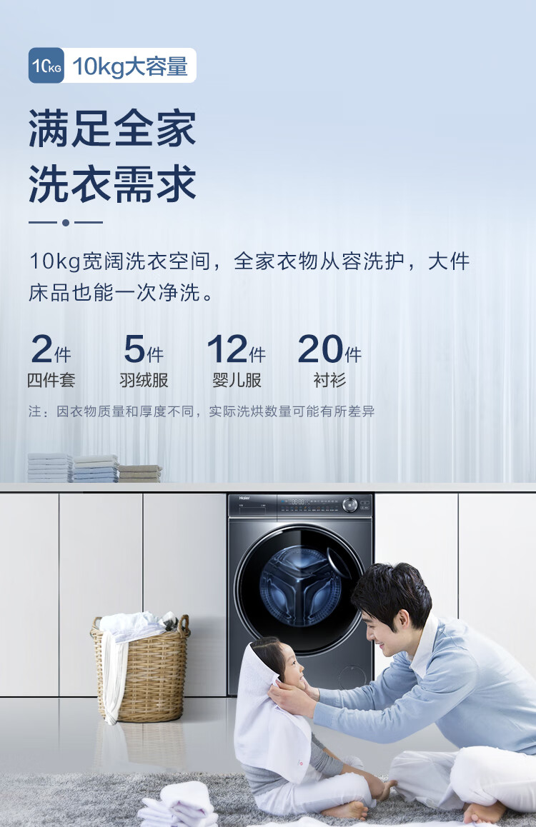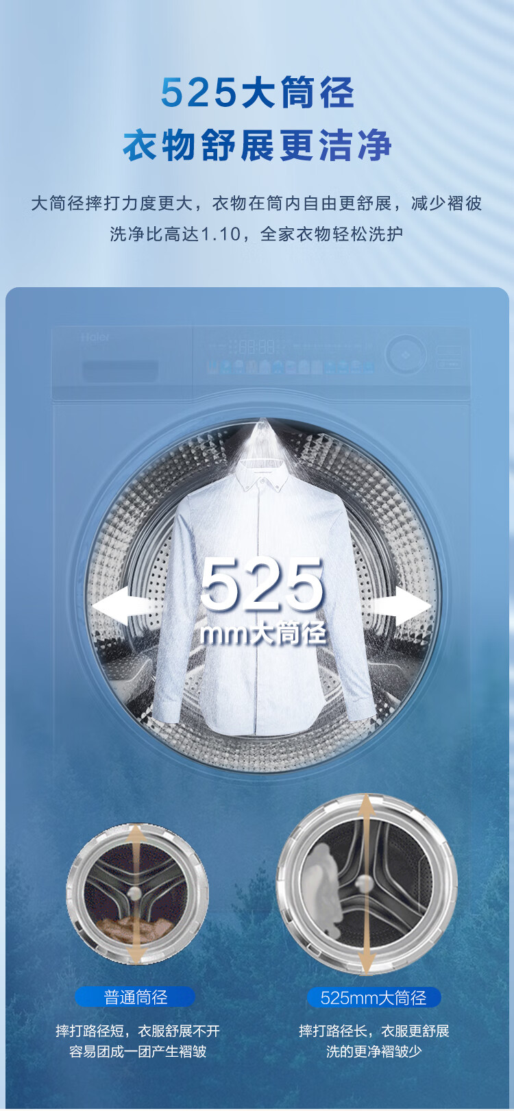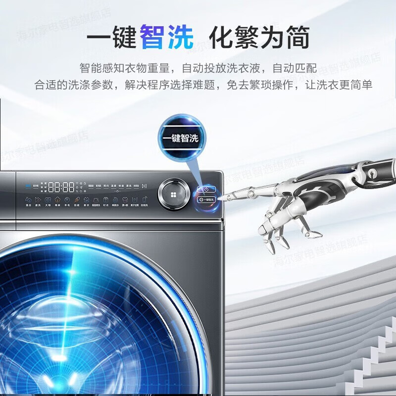 (特)海尔(Haier)滚筒洗衣机10kg直驱变频干衣烘干家用全自动大容量智能投放