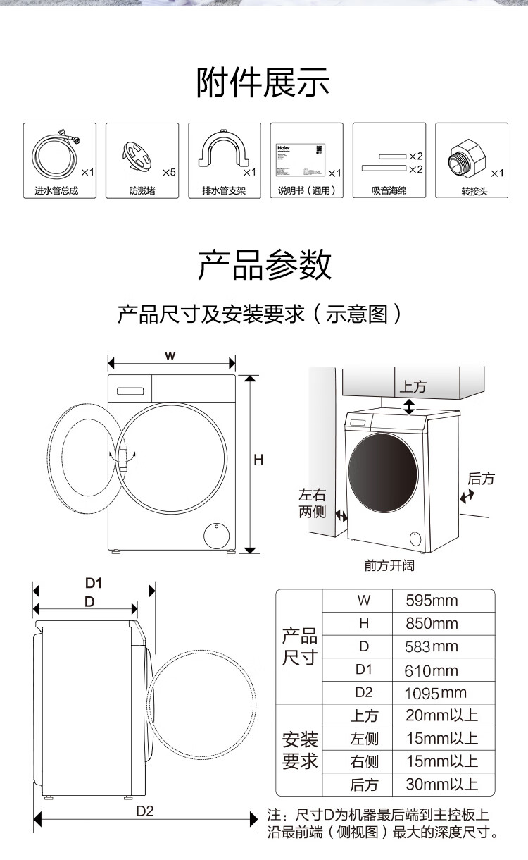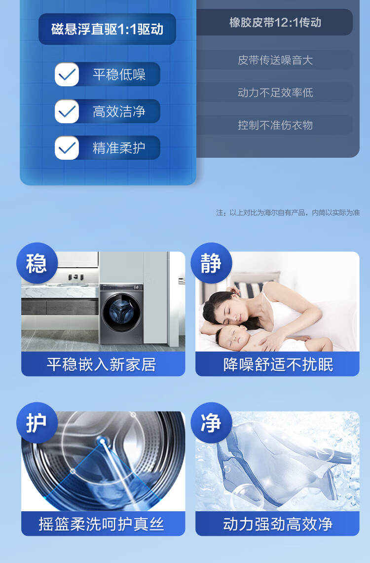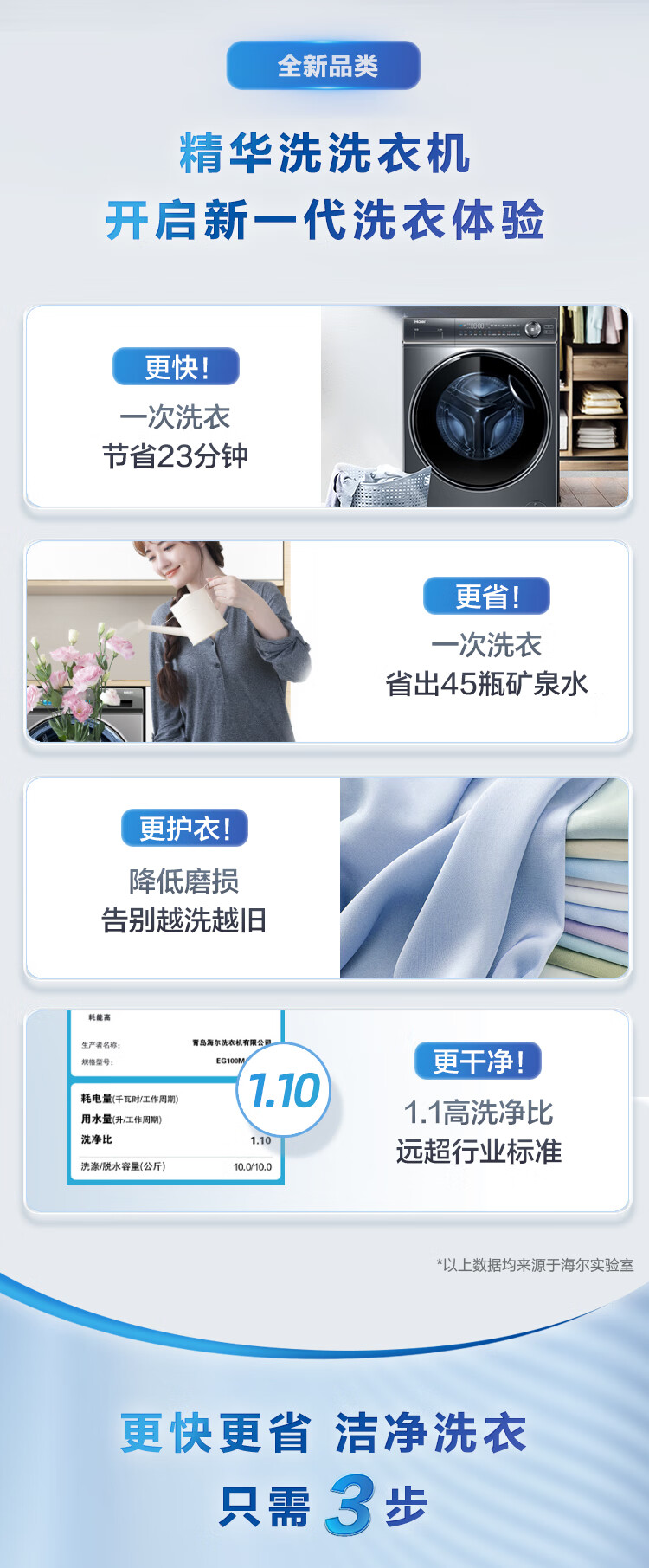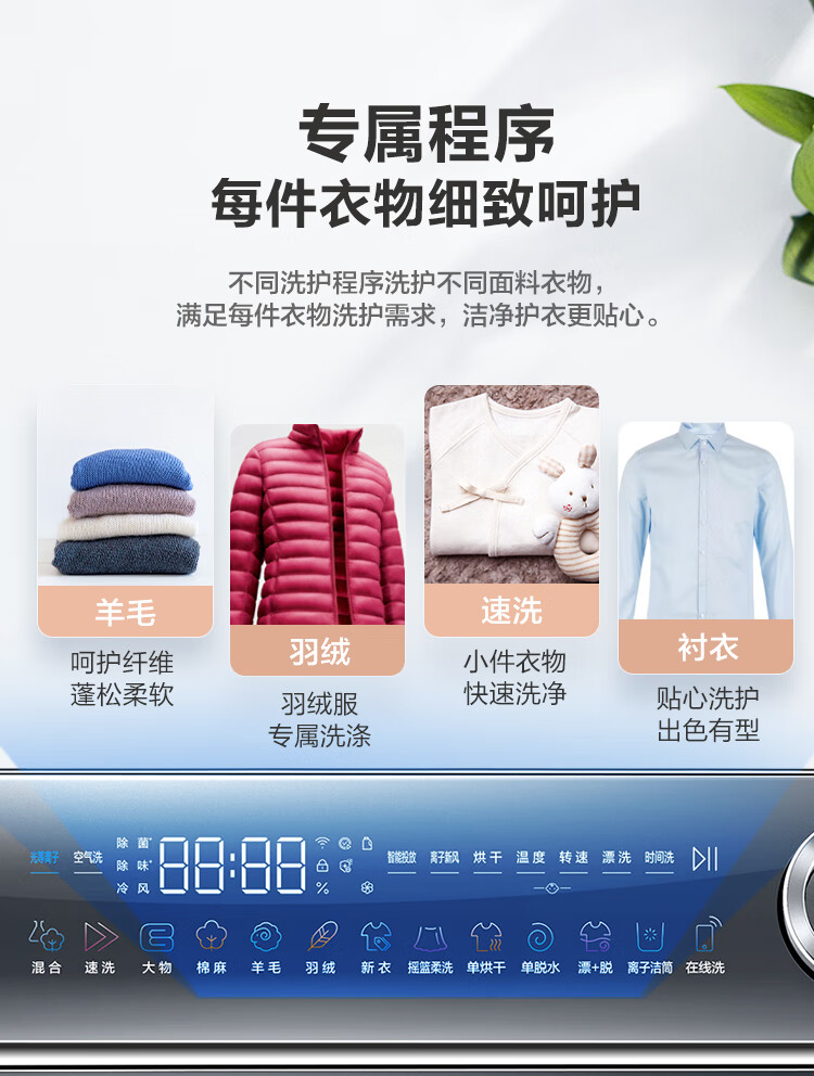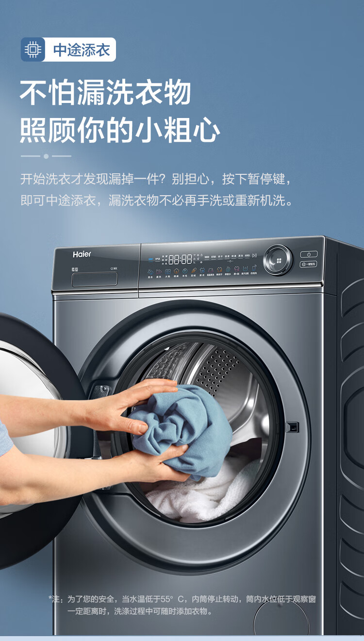 (特)海尔(Haier)滚筒洗衣机10kg直驱变频干衣烘干家用全自动大容量智能投放
