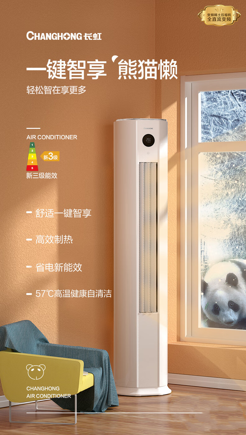 (特)长虹(CHANGHONG) 大3匹 熊猫懒 新能效 空调柜机 变频冷暖 空调立式 KFR-72LW/ZDTTW1+R3