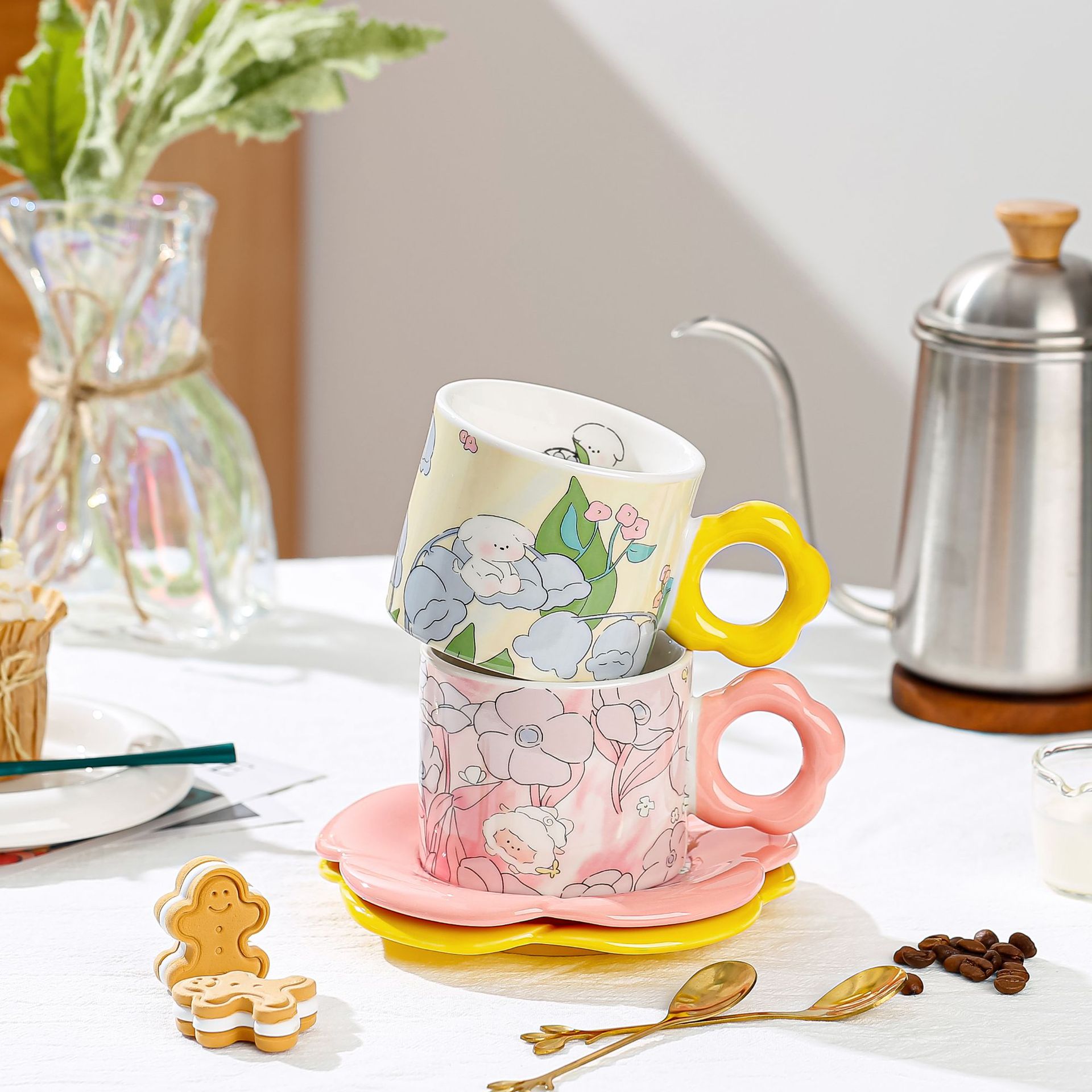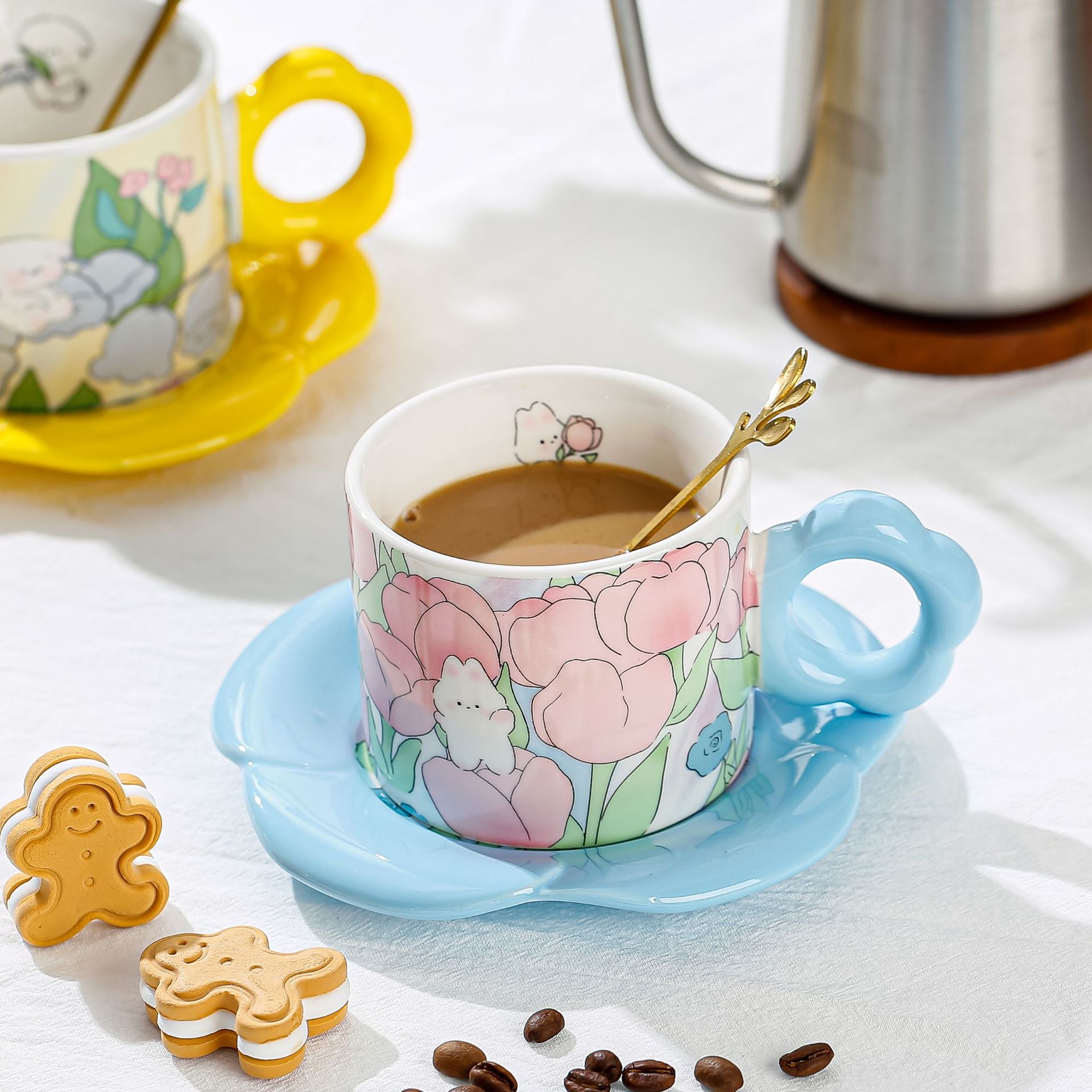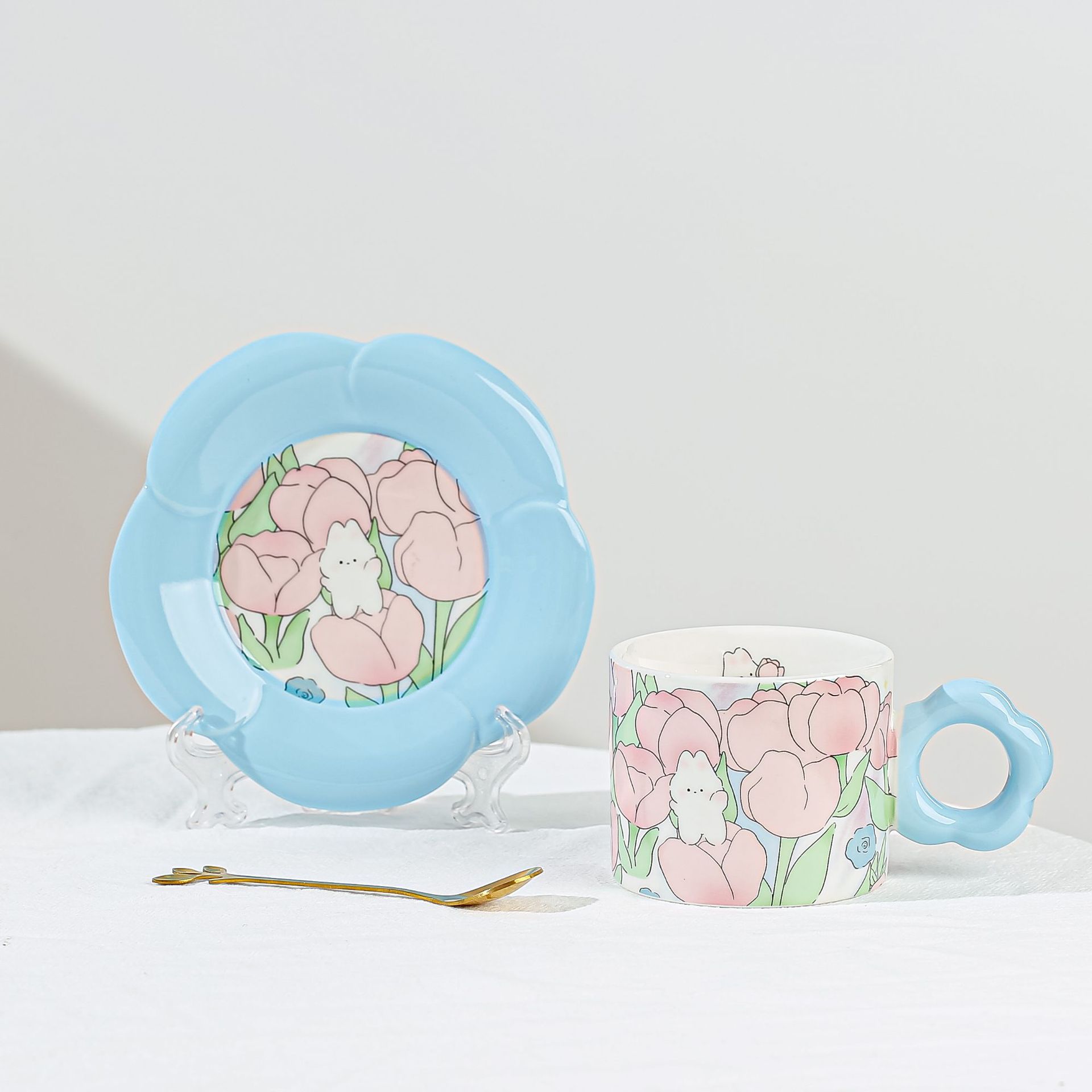 高颜值创意家用下午茶咖啡杯子网红卡通郁金香小兔子陶瓷马克水杯 支持定制LOGO