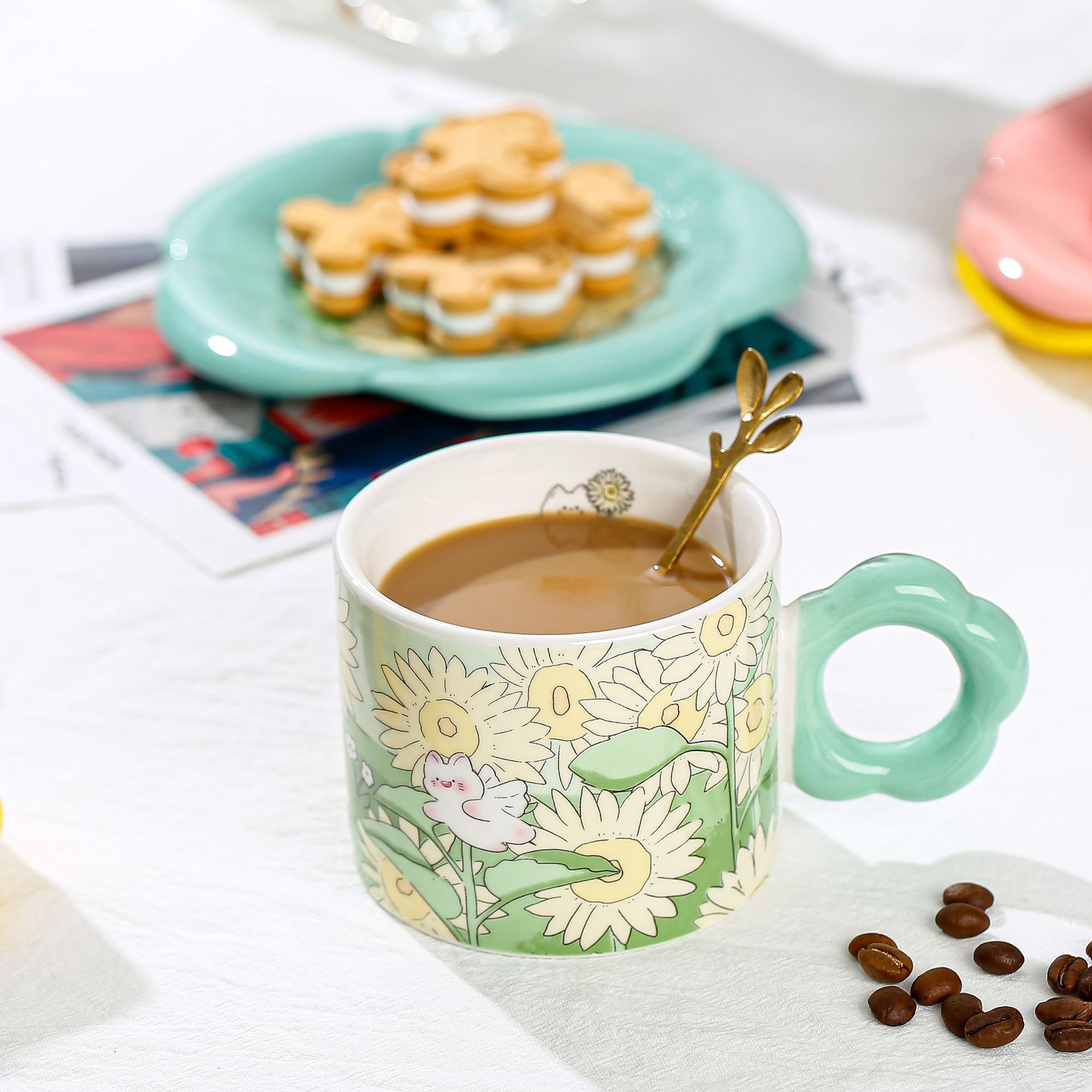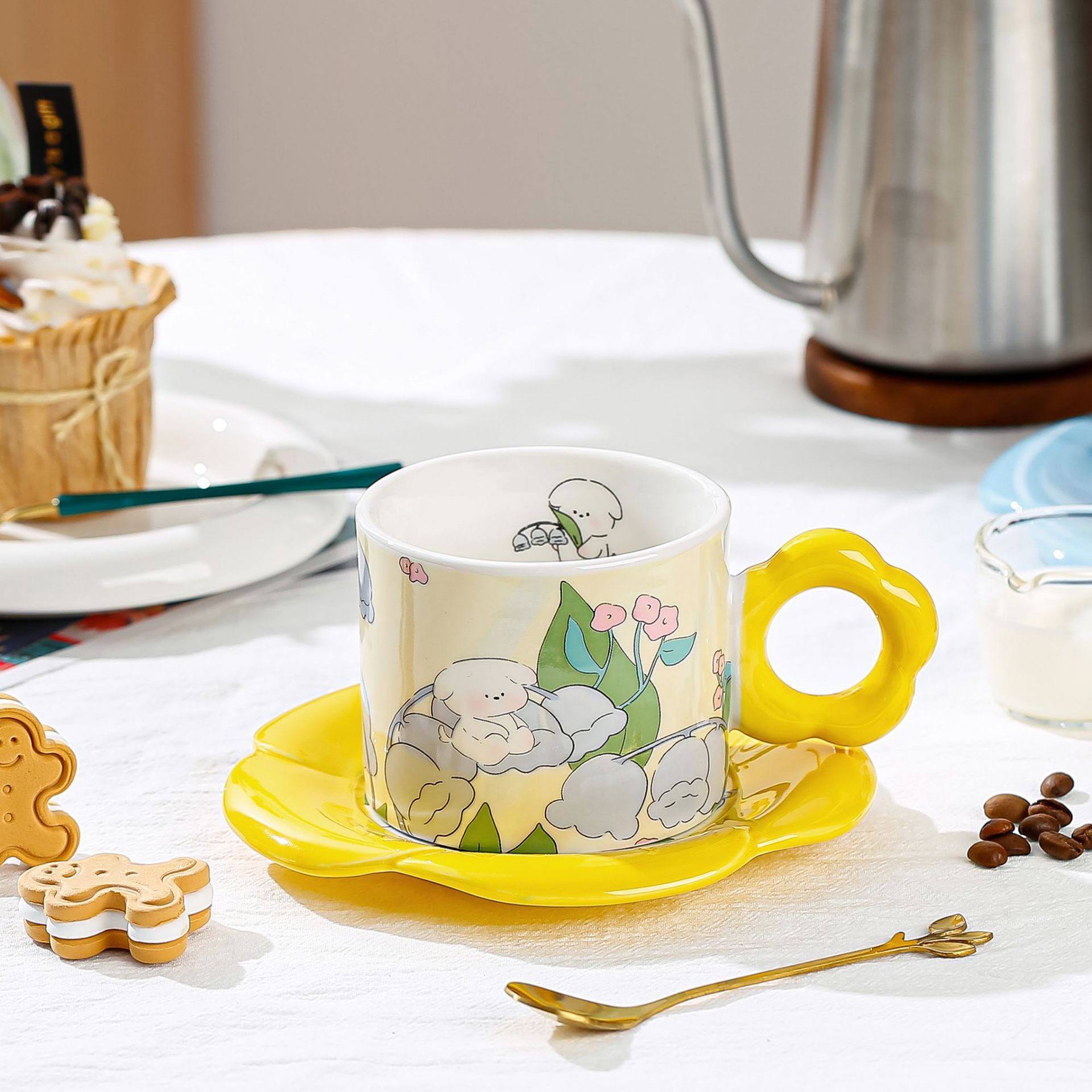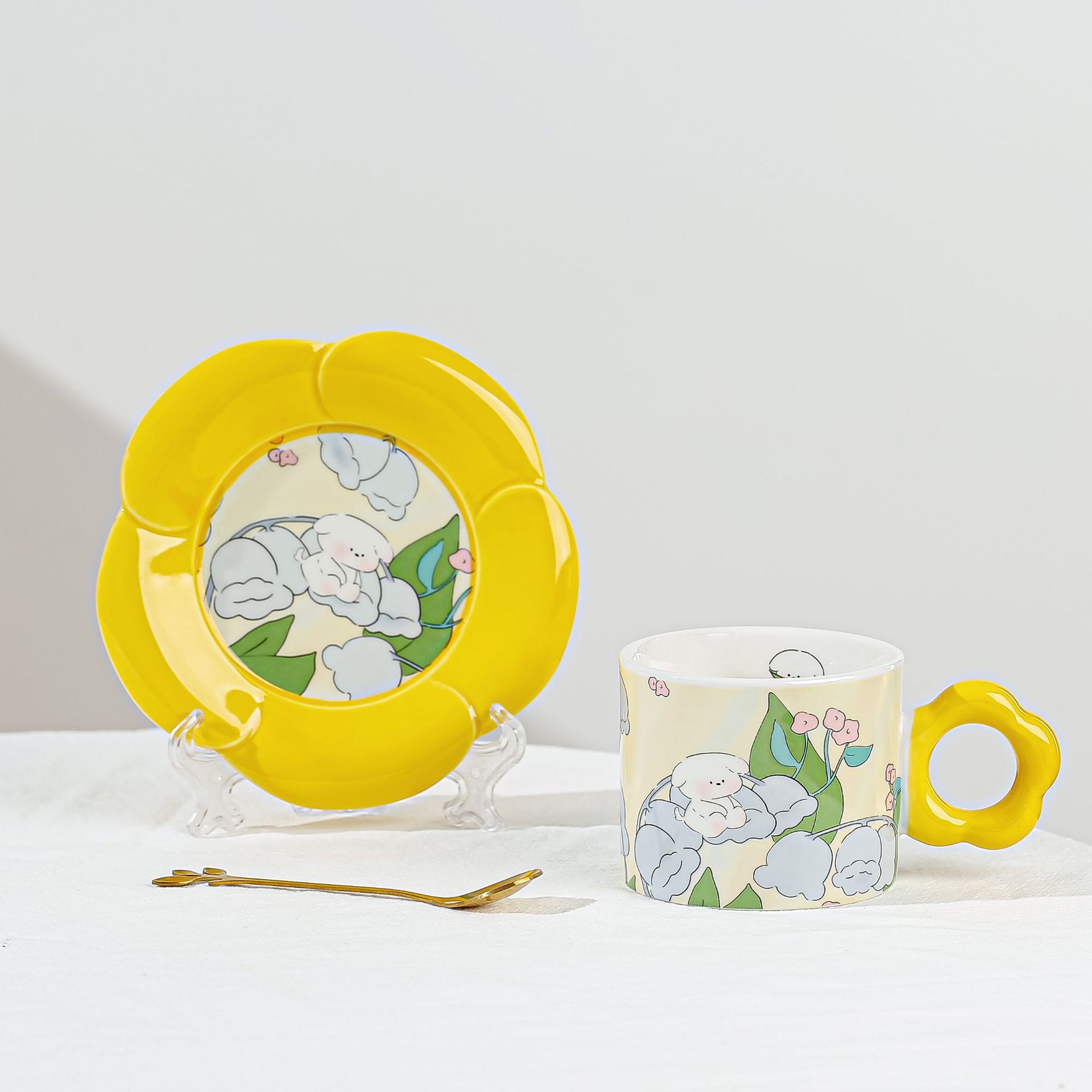 高颜值创意家用下午茶咖啡杯子网红卡通郁金香小兔子陶瓷马克水杯 支持定制LOGO