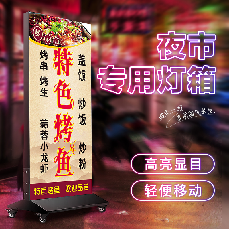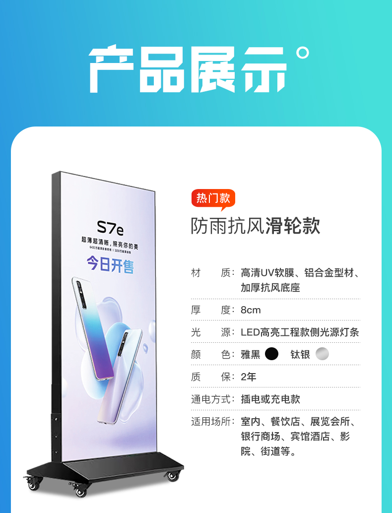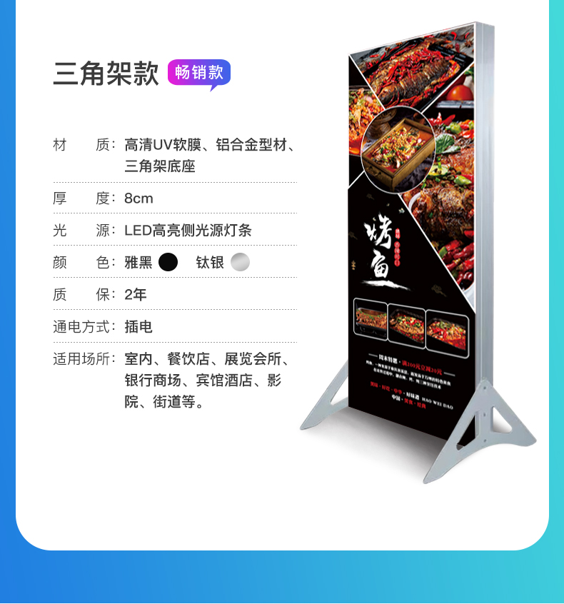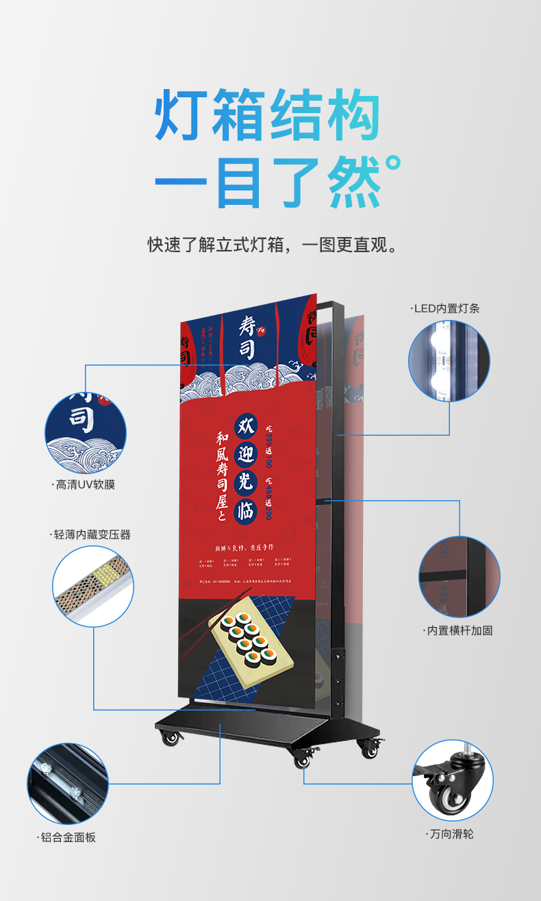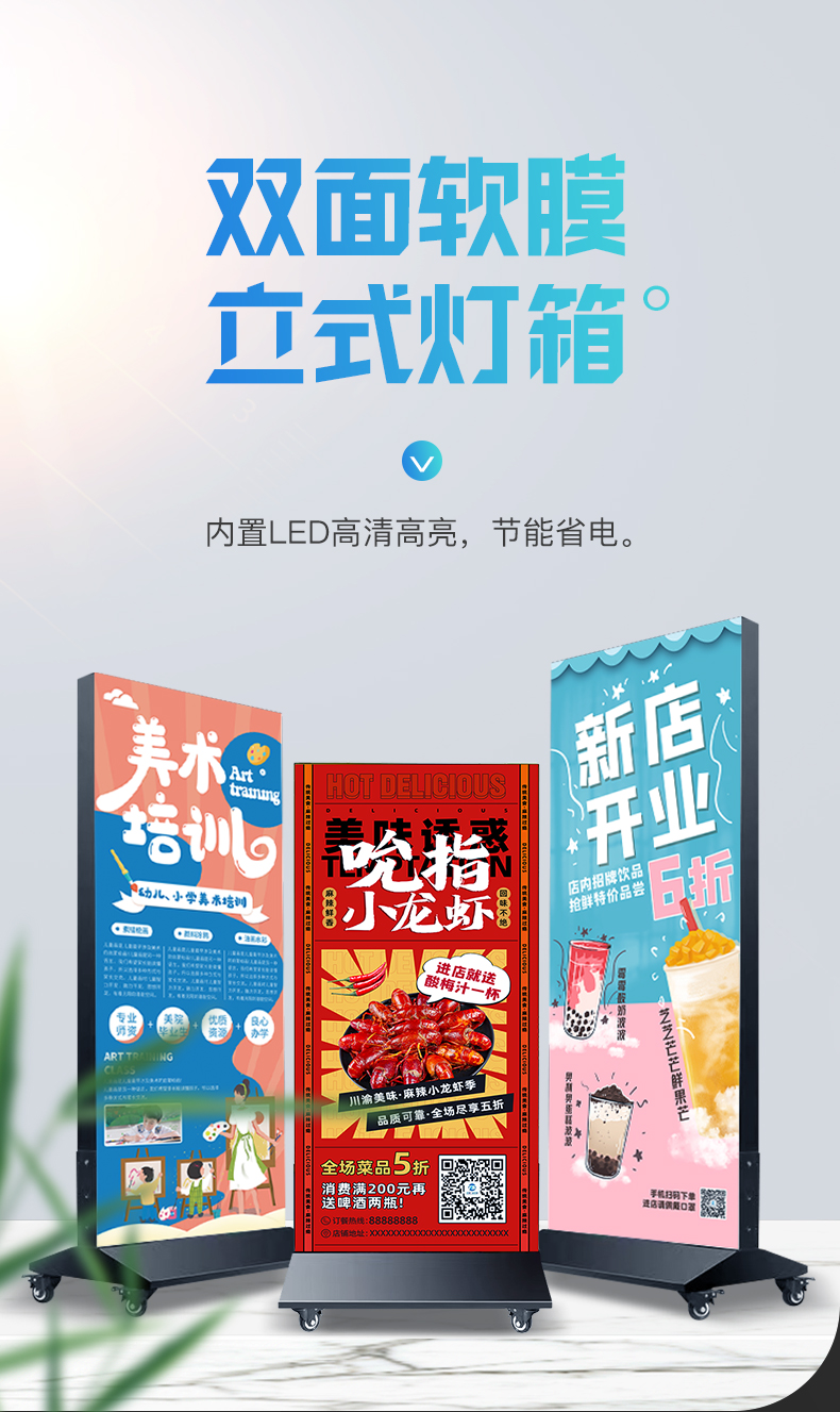 (特)LED卡布灯箱UV软膜超薄立式双面可移动无边框户外室内广告牌