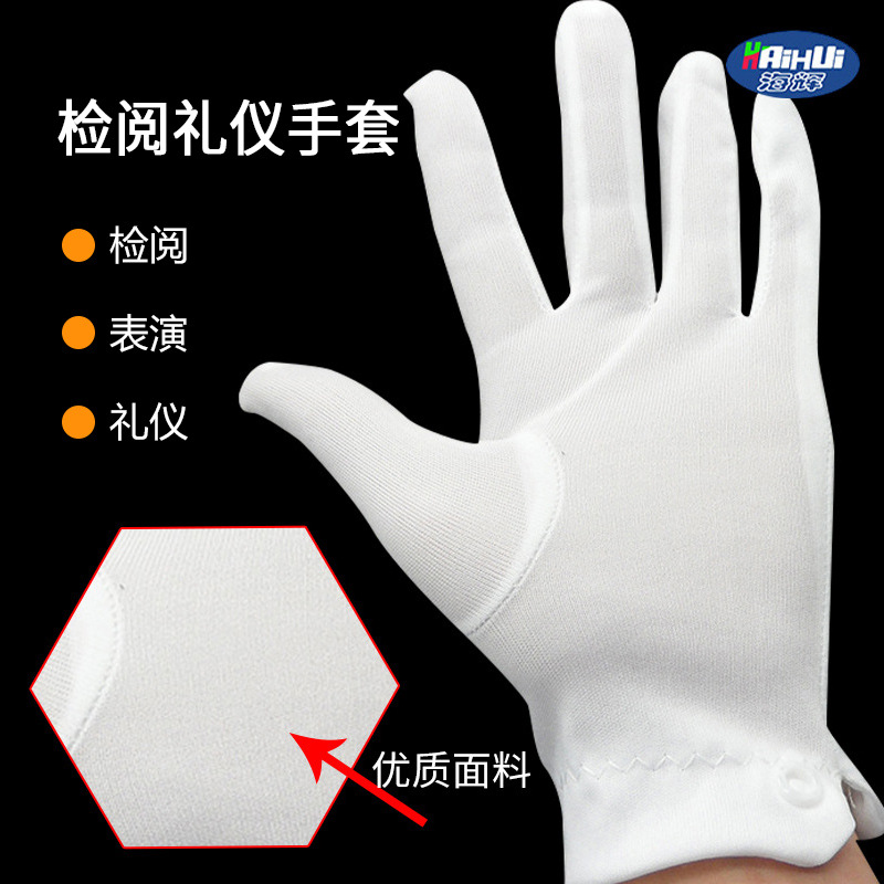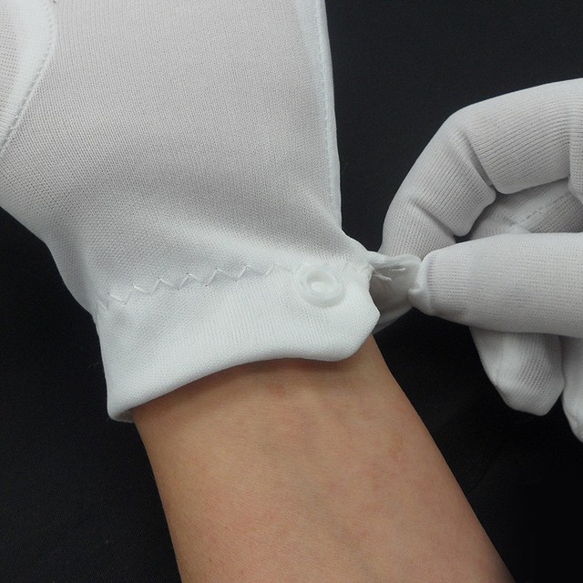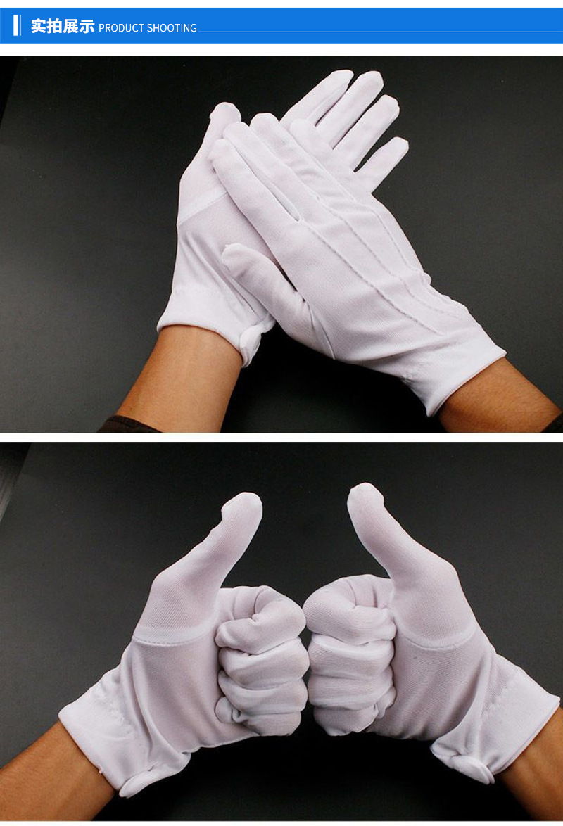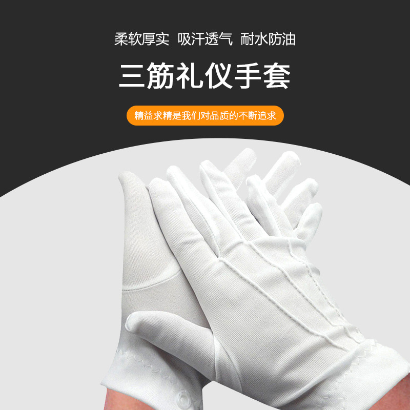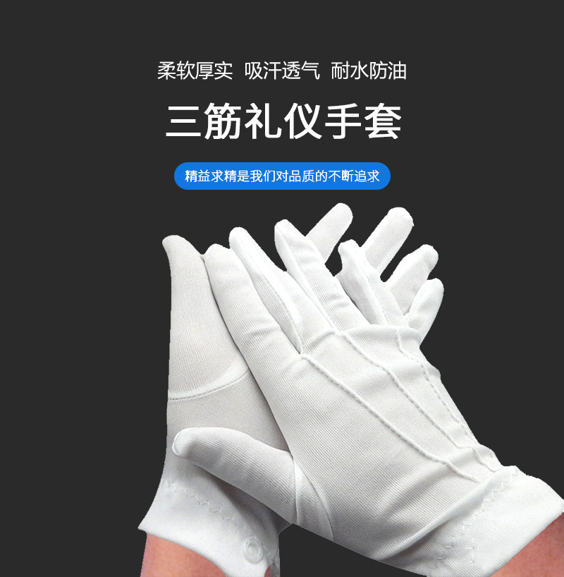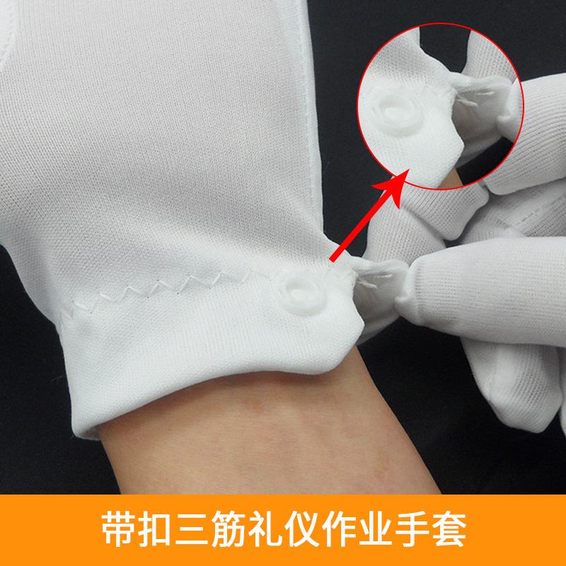 白色纯棉手套盘珠文玩阅兵礼仪作业手套带扣三筋礼仪手套 30双