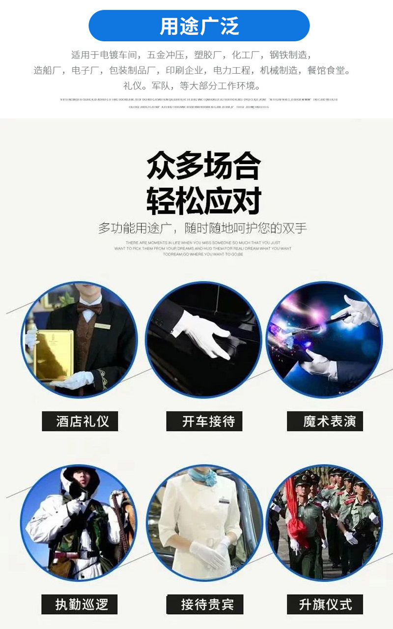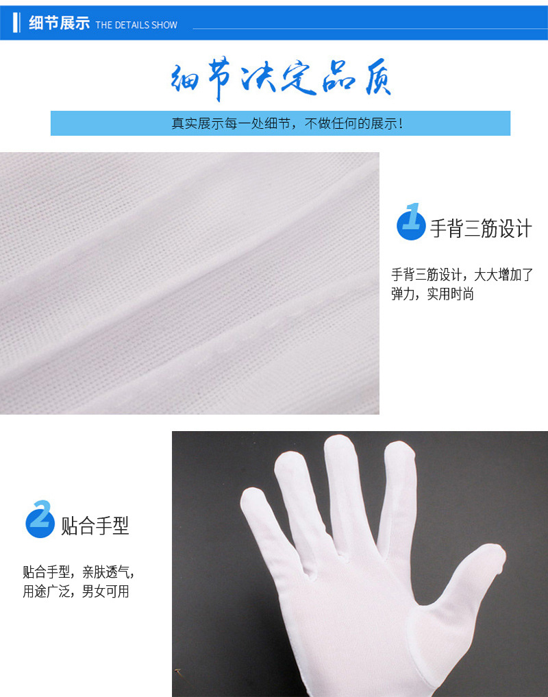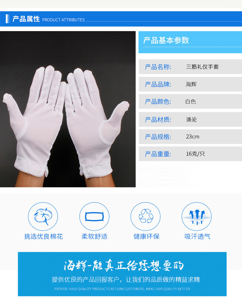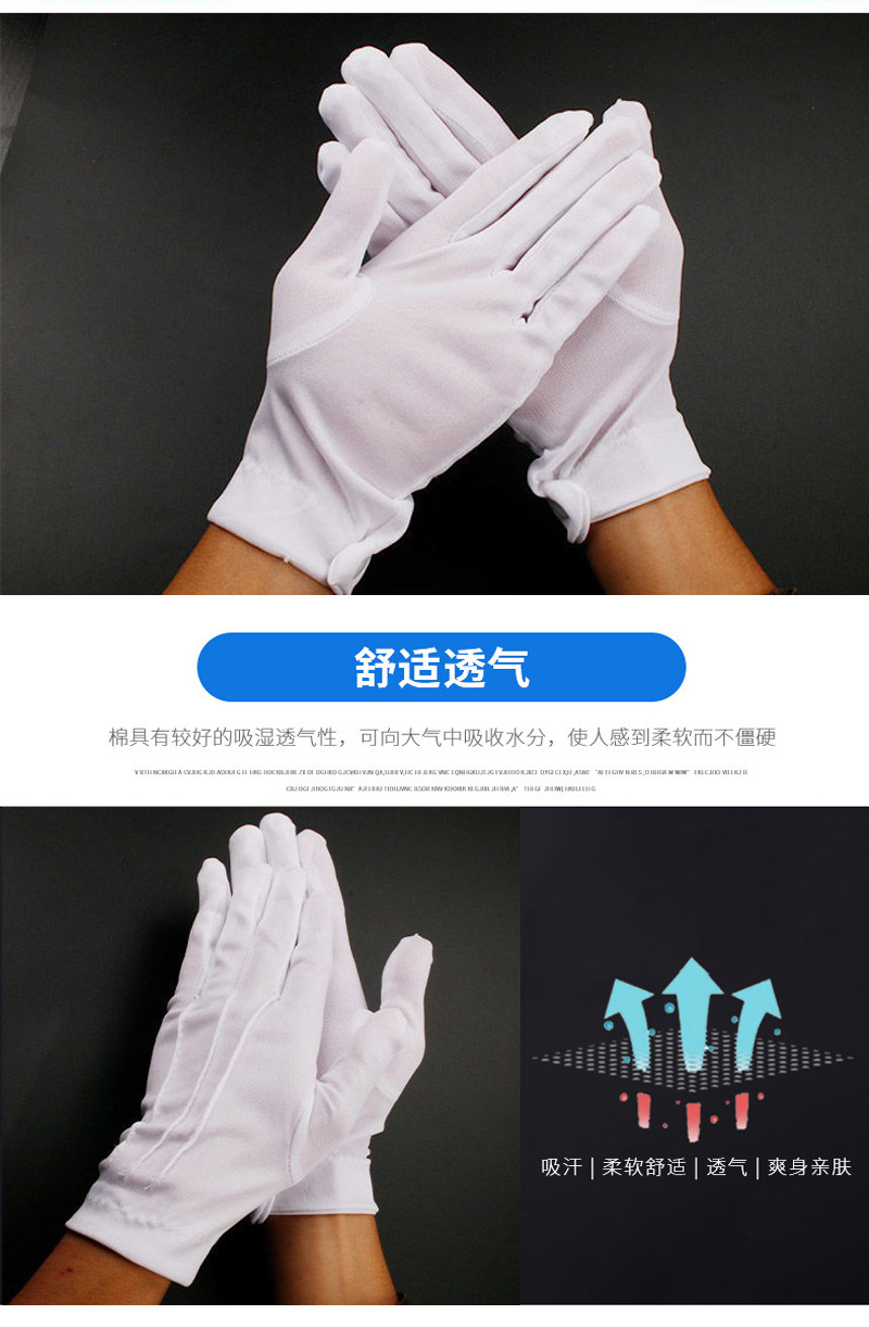 白色纯棉手套盘珠文玩阅兵礼仪作业手套带扣三筋礼仪手套 30双