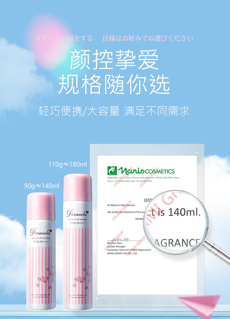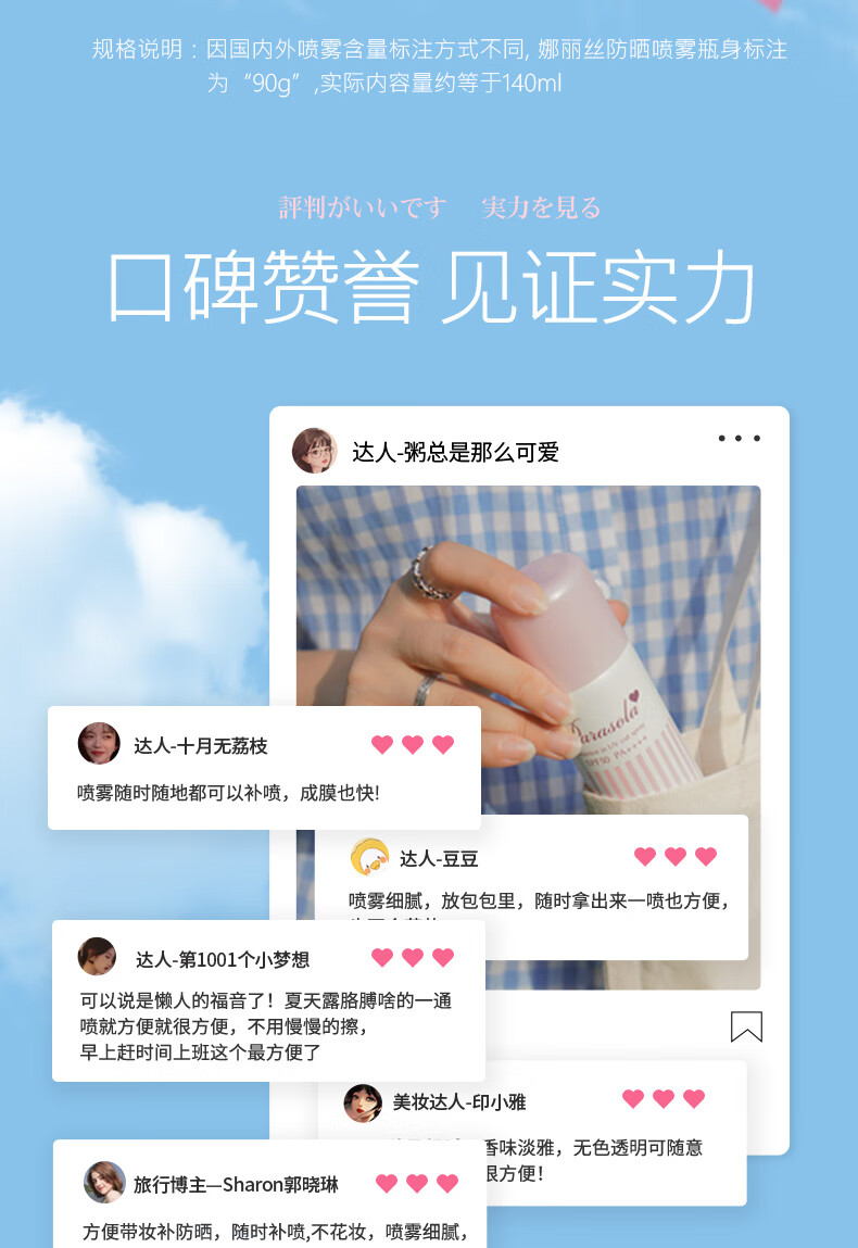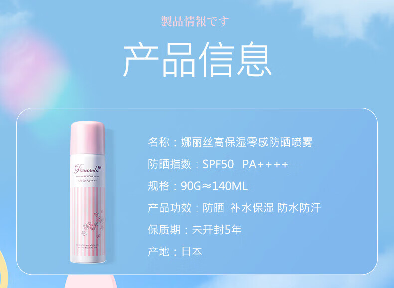 娜丽丝防晒喷雾140ml 男女士学生防晒霜户外养肤防水隔离乳液
