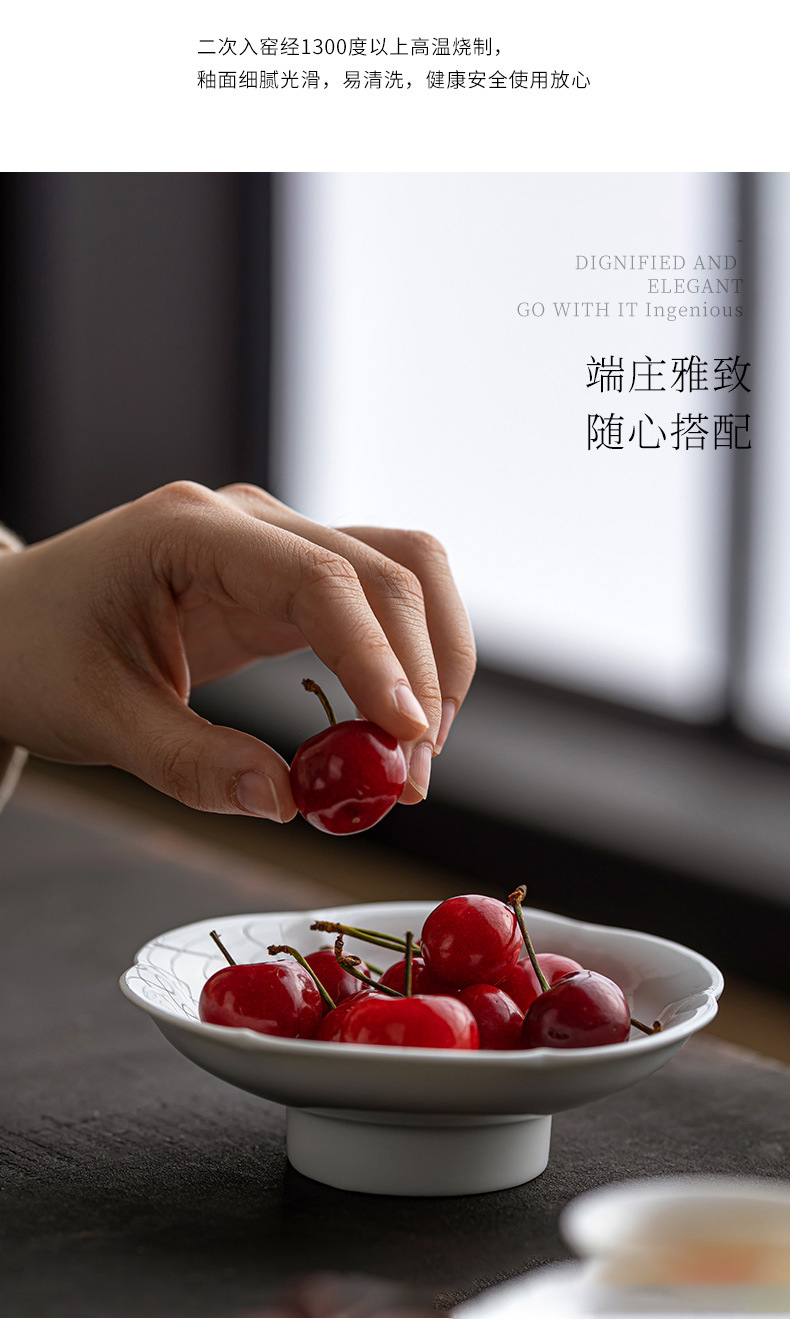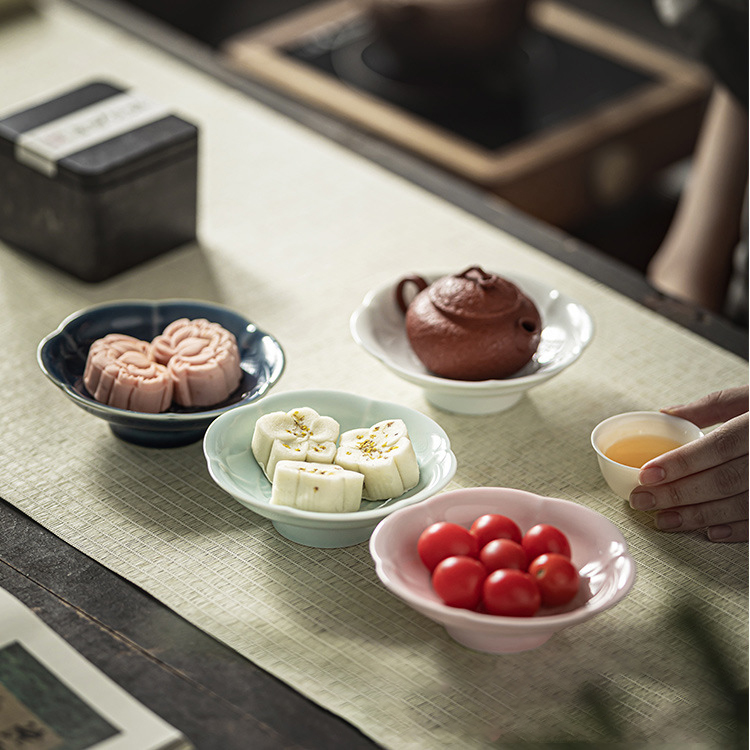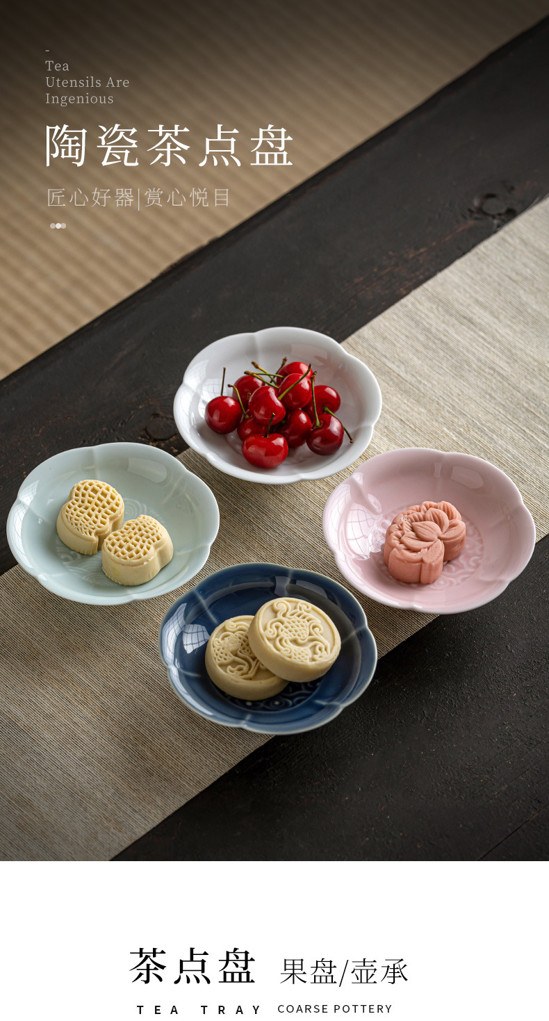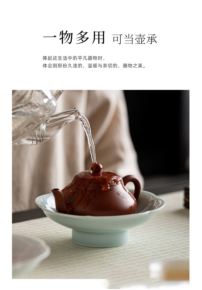 陶瓷小号高脚盘茶点盘供盘茶点心盘复古禅意零食小吃碟茶壶壶承托