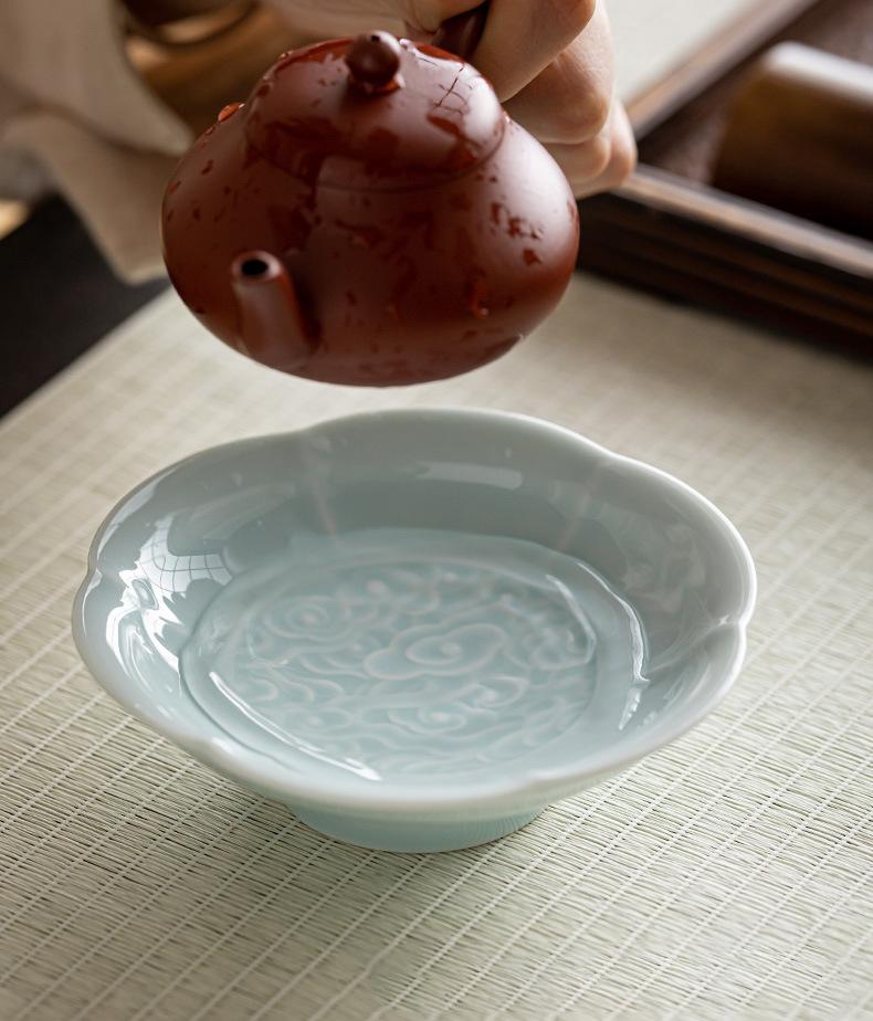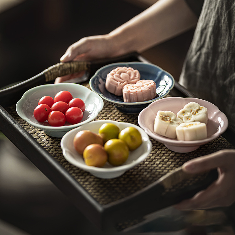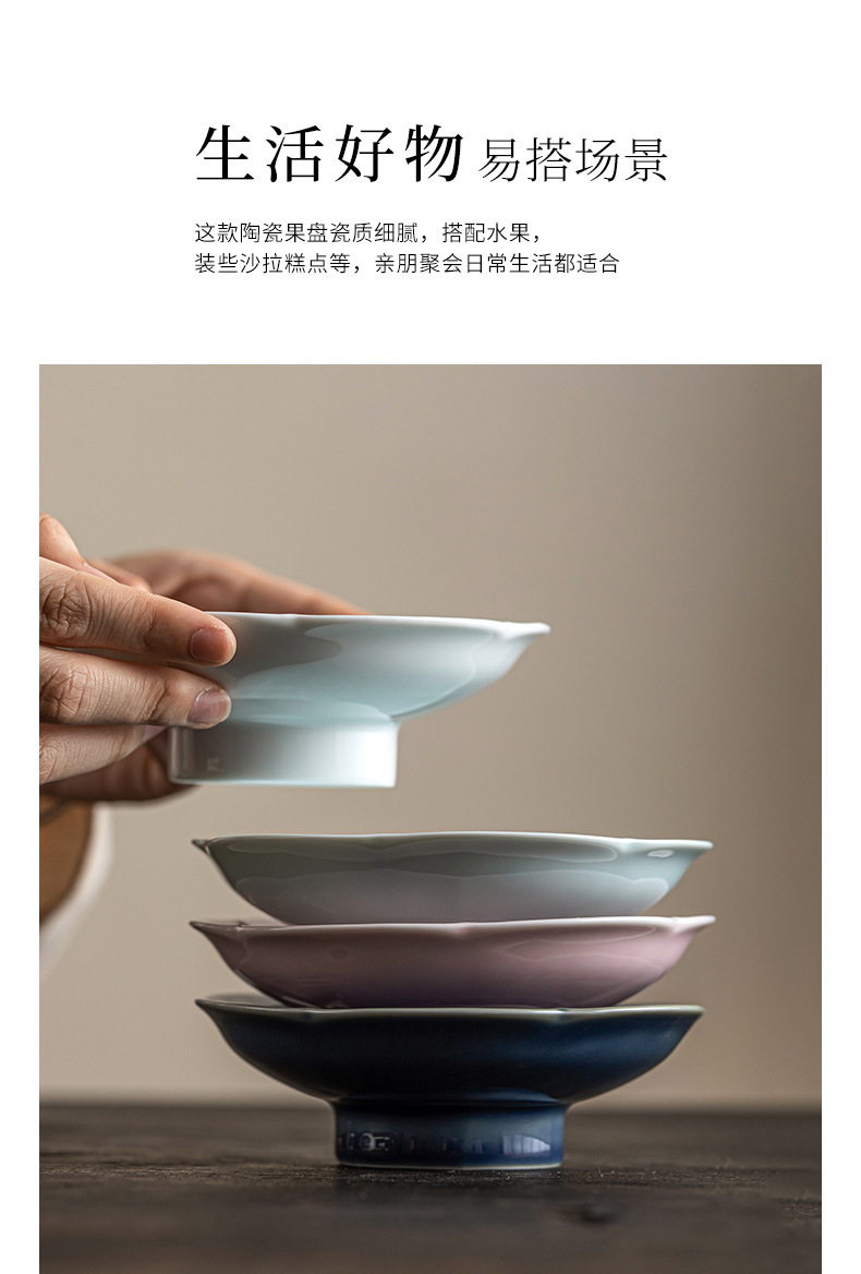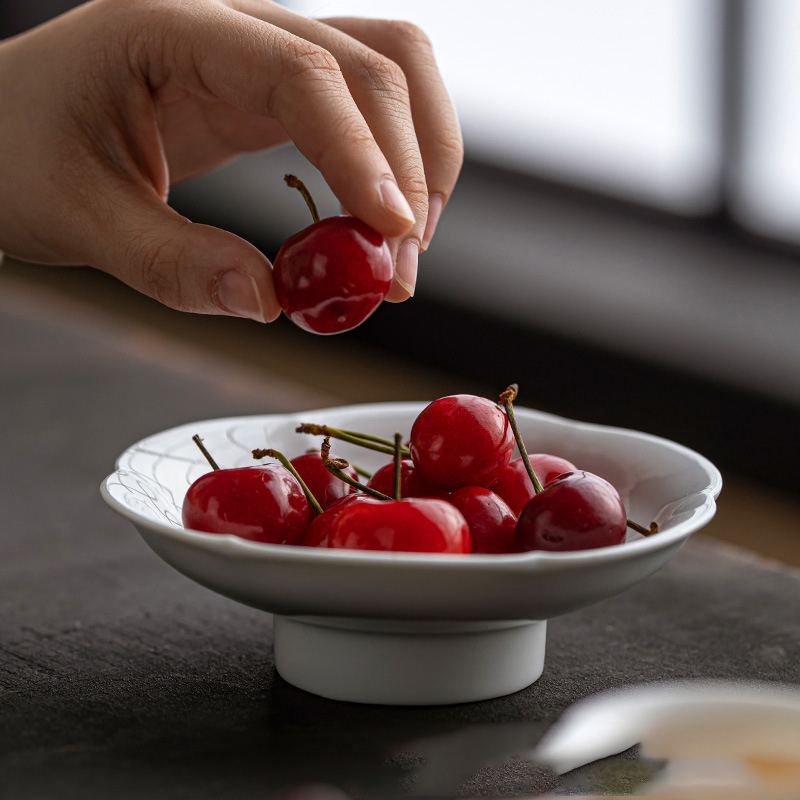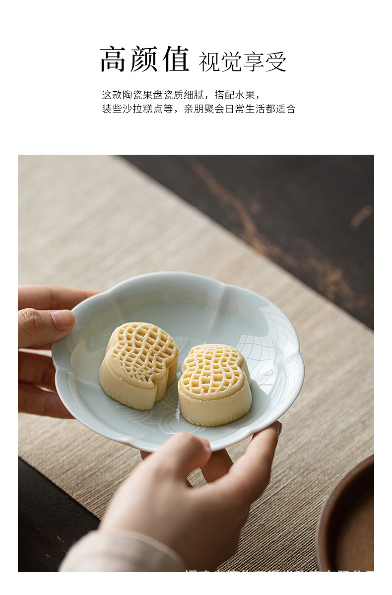 陶瓷小号高脚盘茶点盘供盘茶点心盘复古禅意零食小吃碟茶壶壶承托