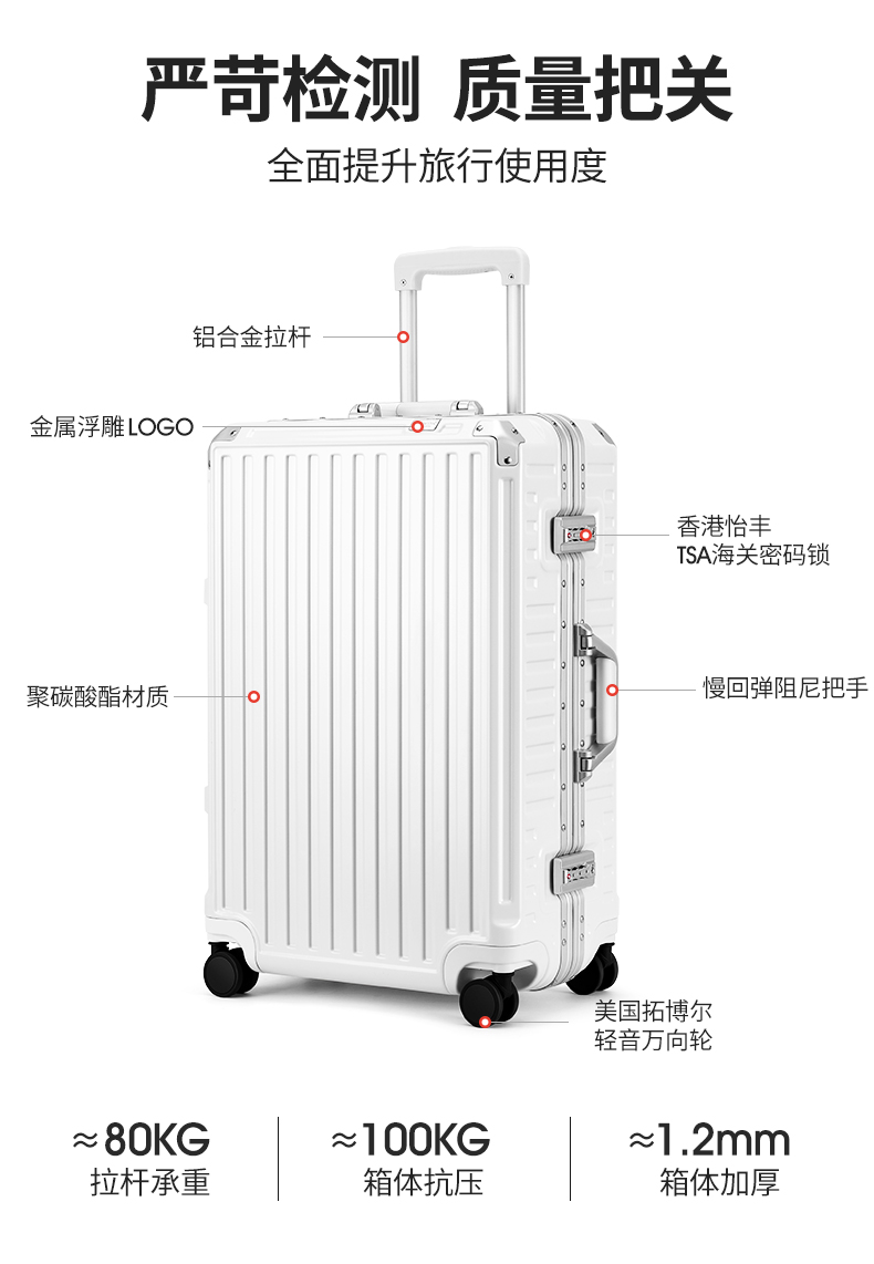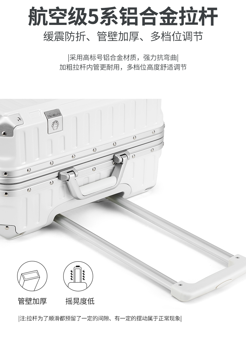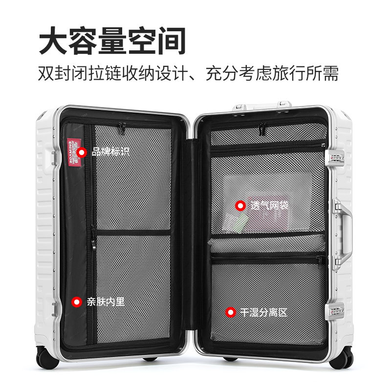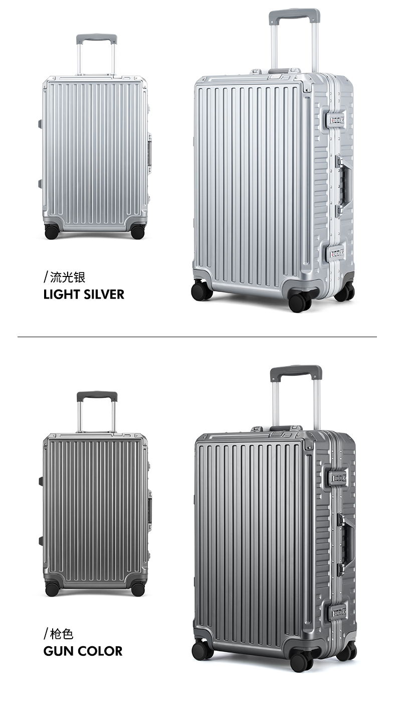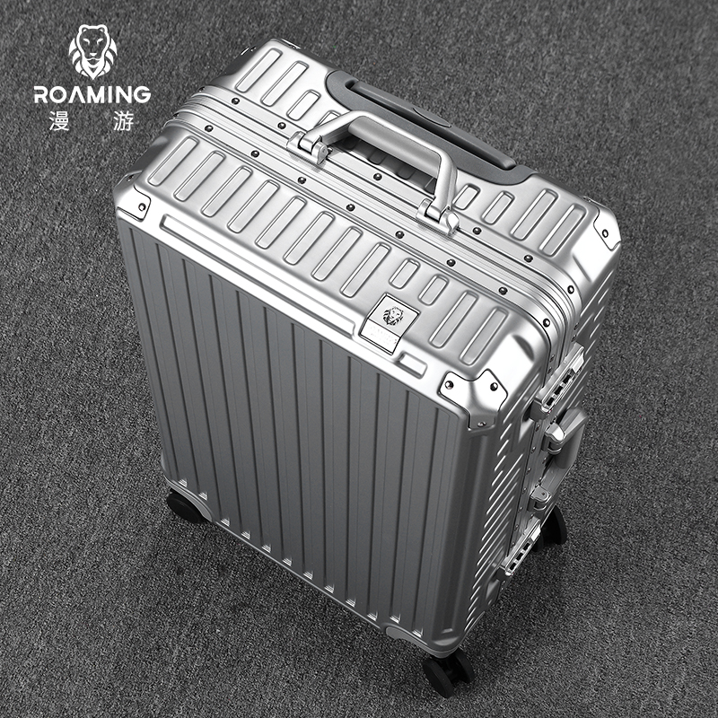 (特)漫游铝框行李箱男轻音万向轮旅行箱包大拉杆箱登机箱子小型密码箱女 太空银 20英寸-美国拓博尔轻音轮