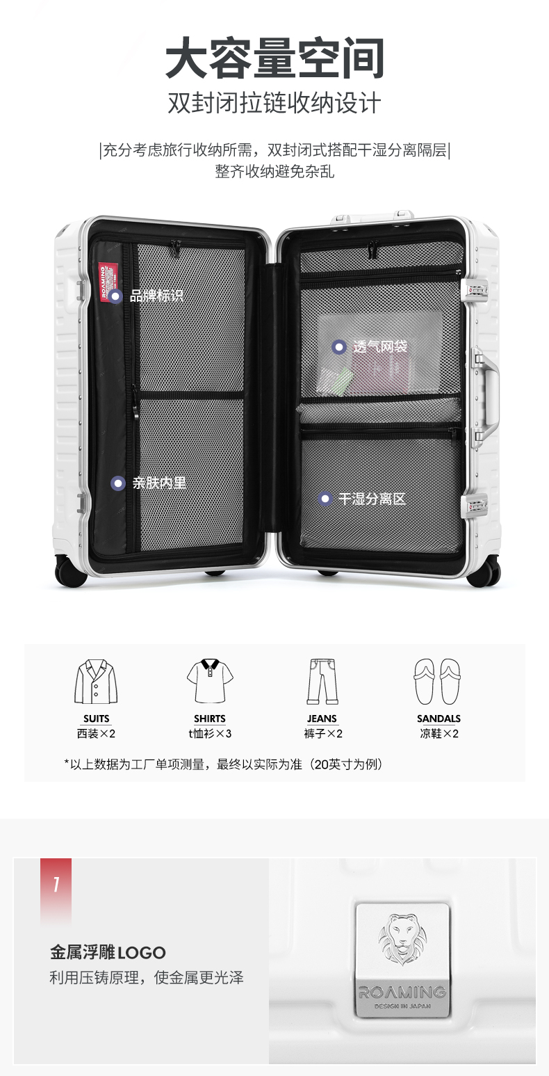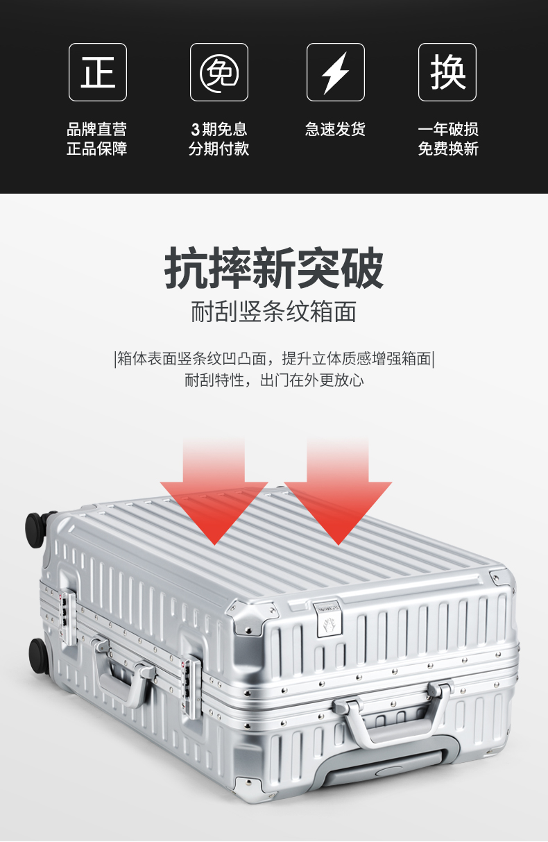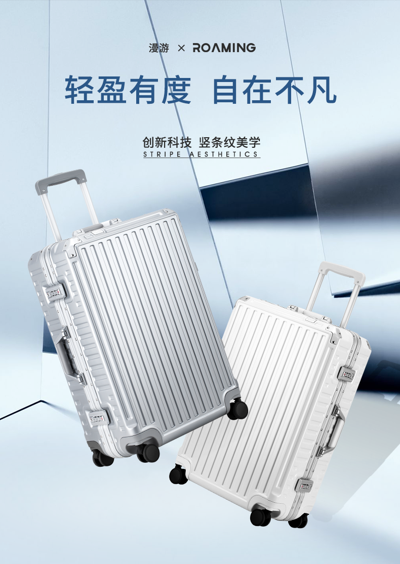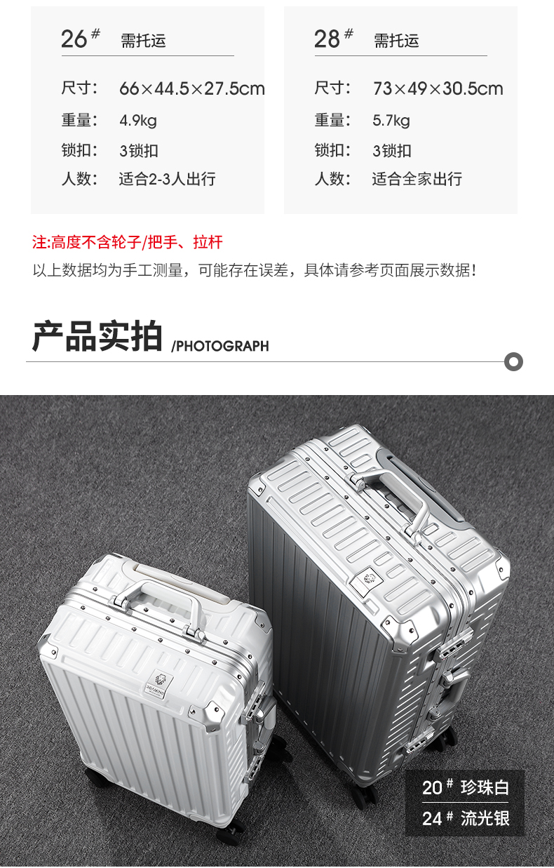 (特)漫游铝框行李箱男轻音万向轮旅行箱包大拉杆箱登机箱子小型密码箱女 太空银 20英寸-美国拓博尔轻音轮
