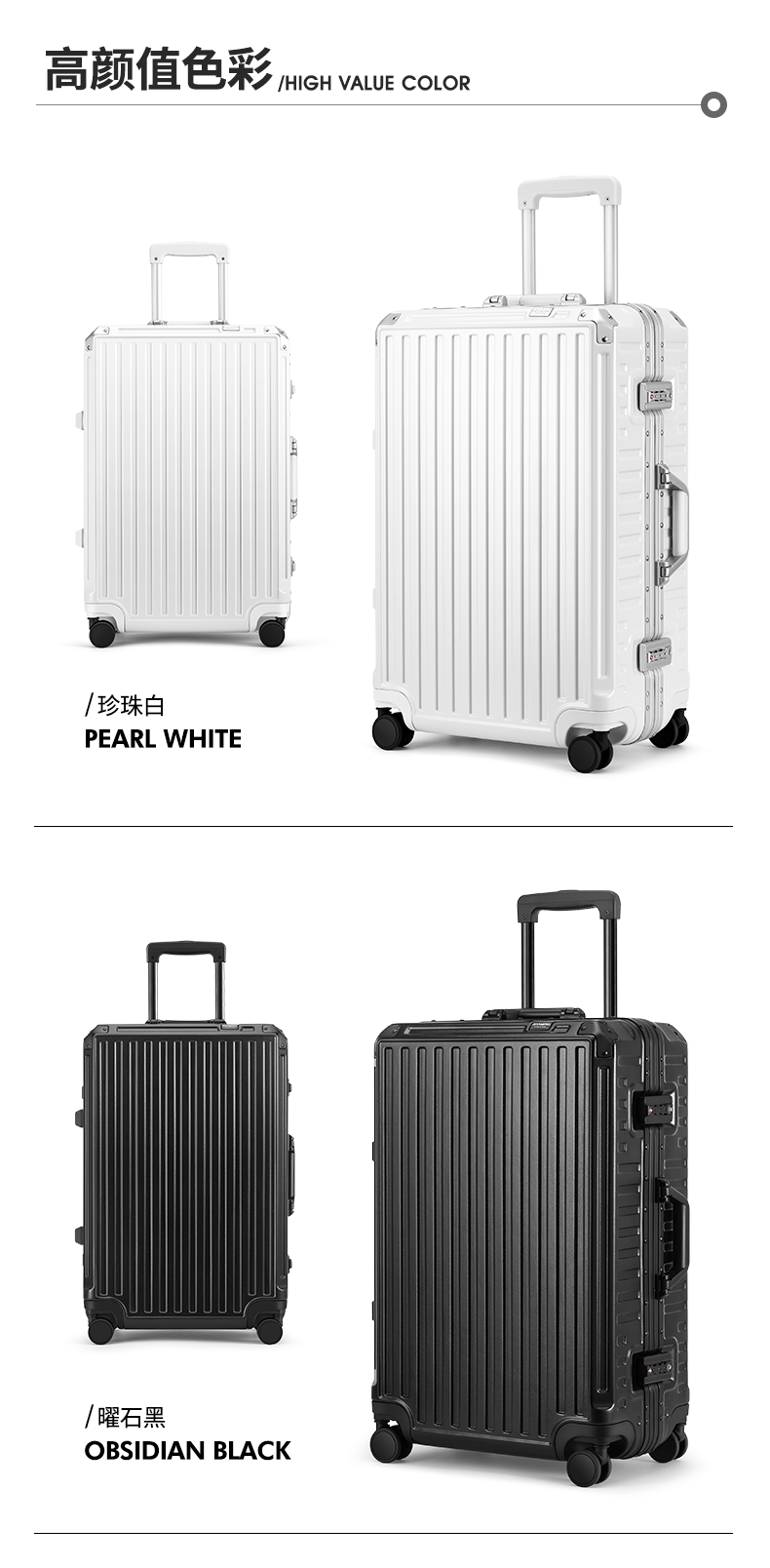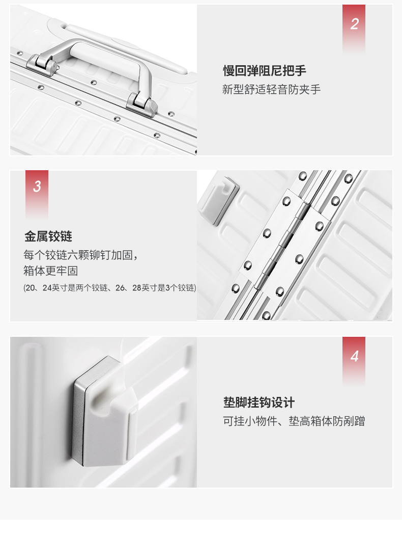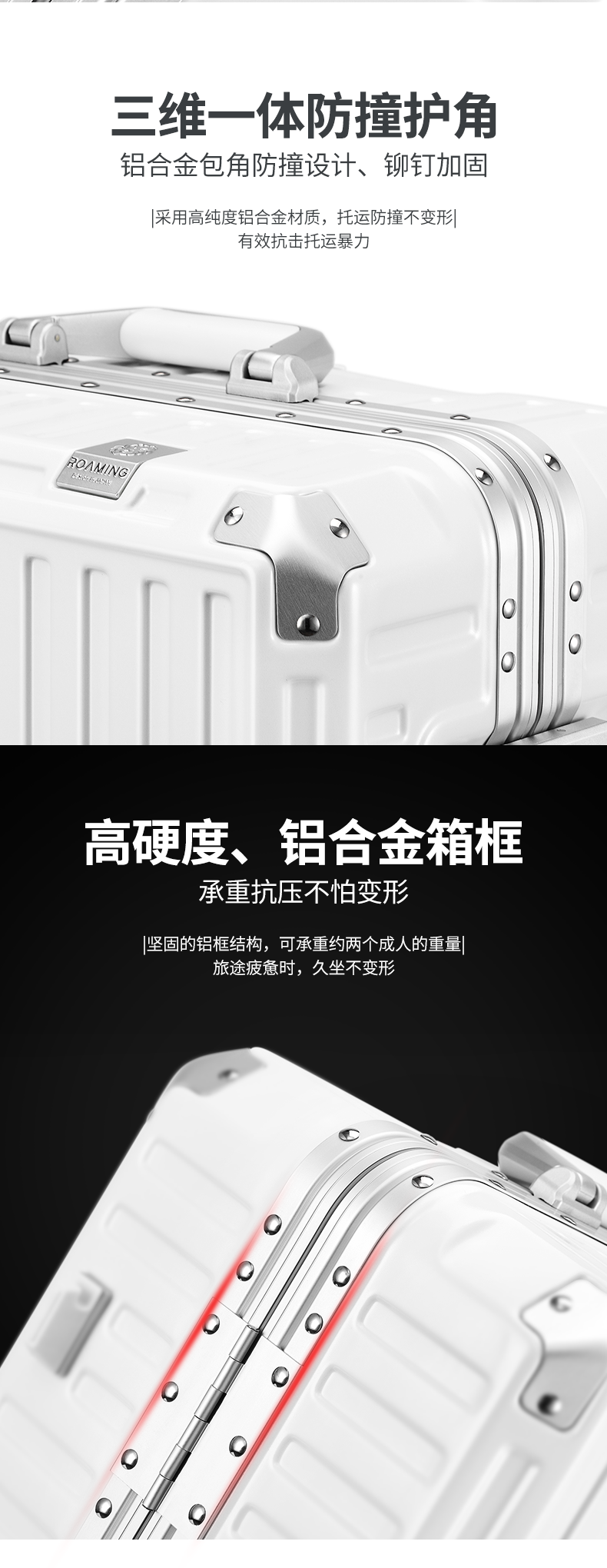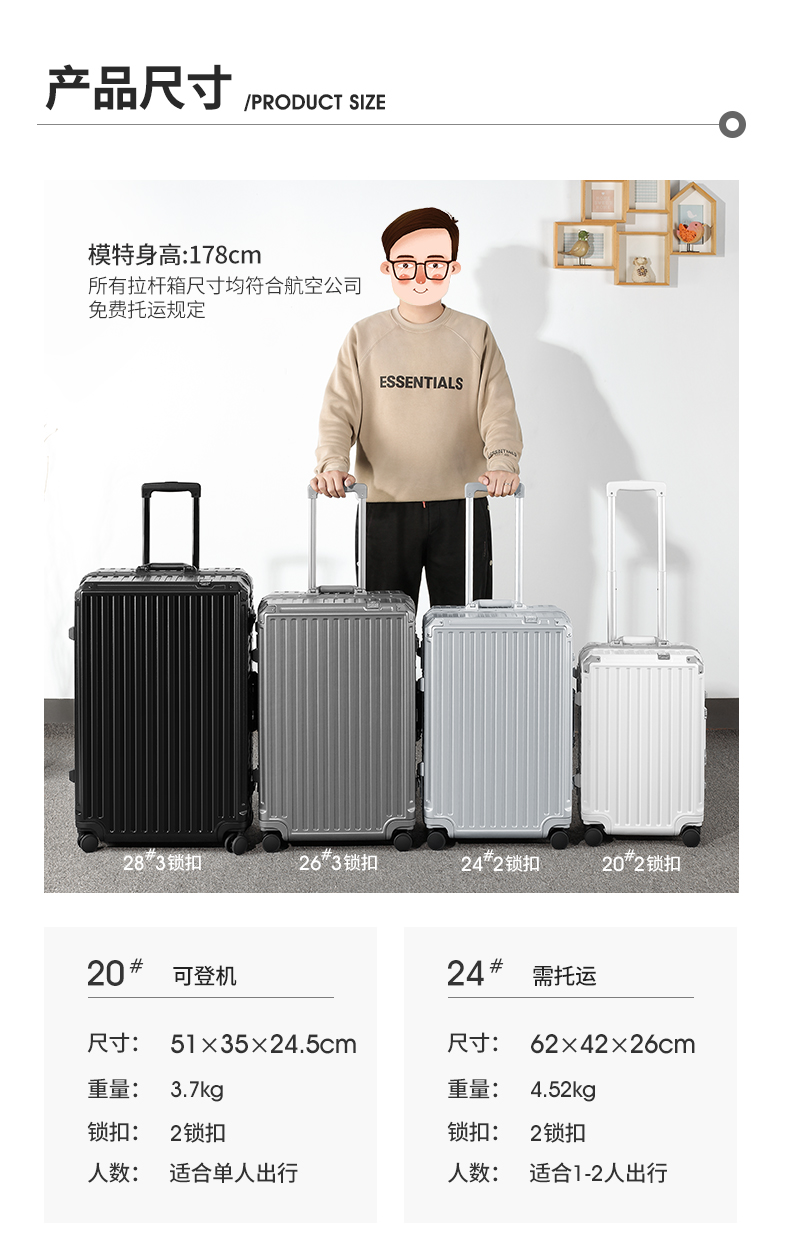 (特)漫游铝框行李箱男轻音万向轮旅行箱包大拉杆箱登机箱子小型密码箱女 太空银 20英寸-美国拓博尔轻音轮