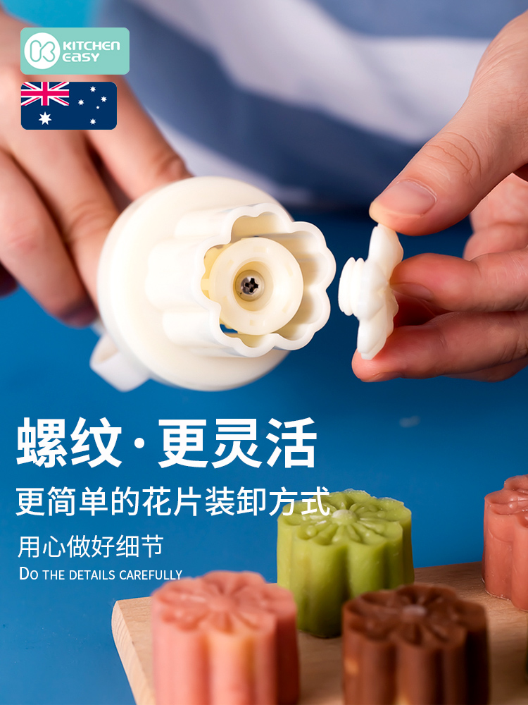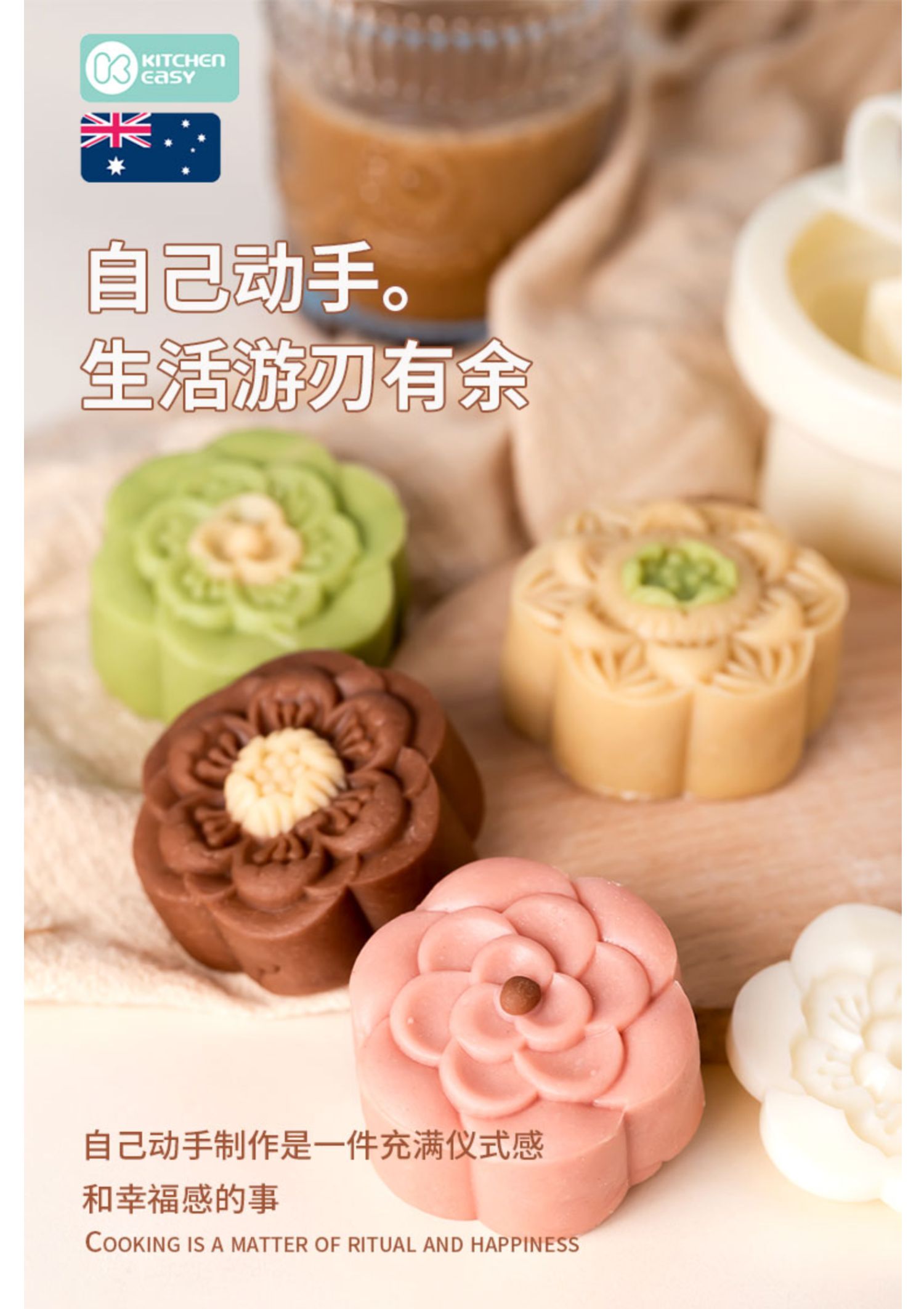 (特)澳洲KE花朵月饼模具流心冰皮绿豆糕手压式家用压模2022新款磨具