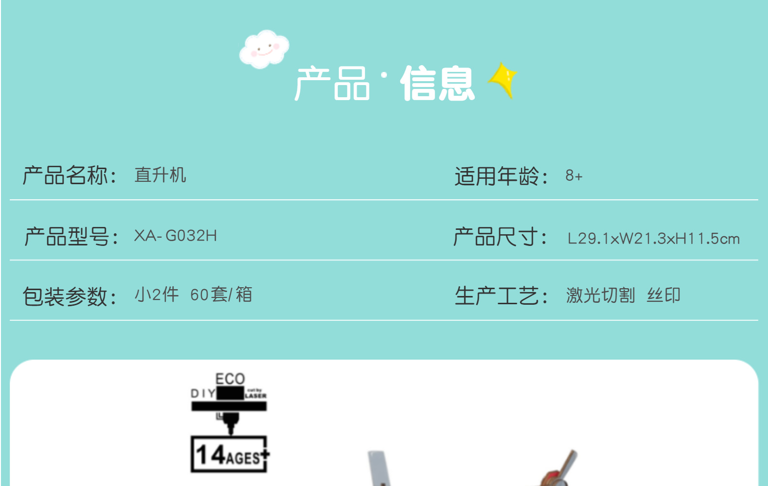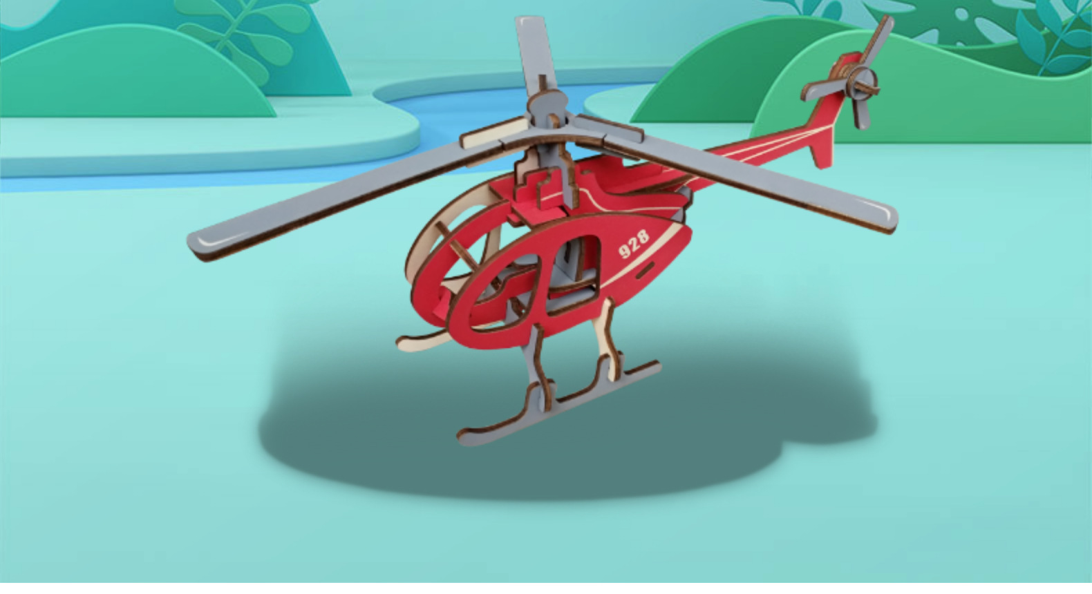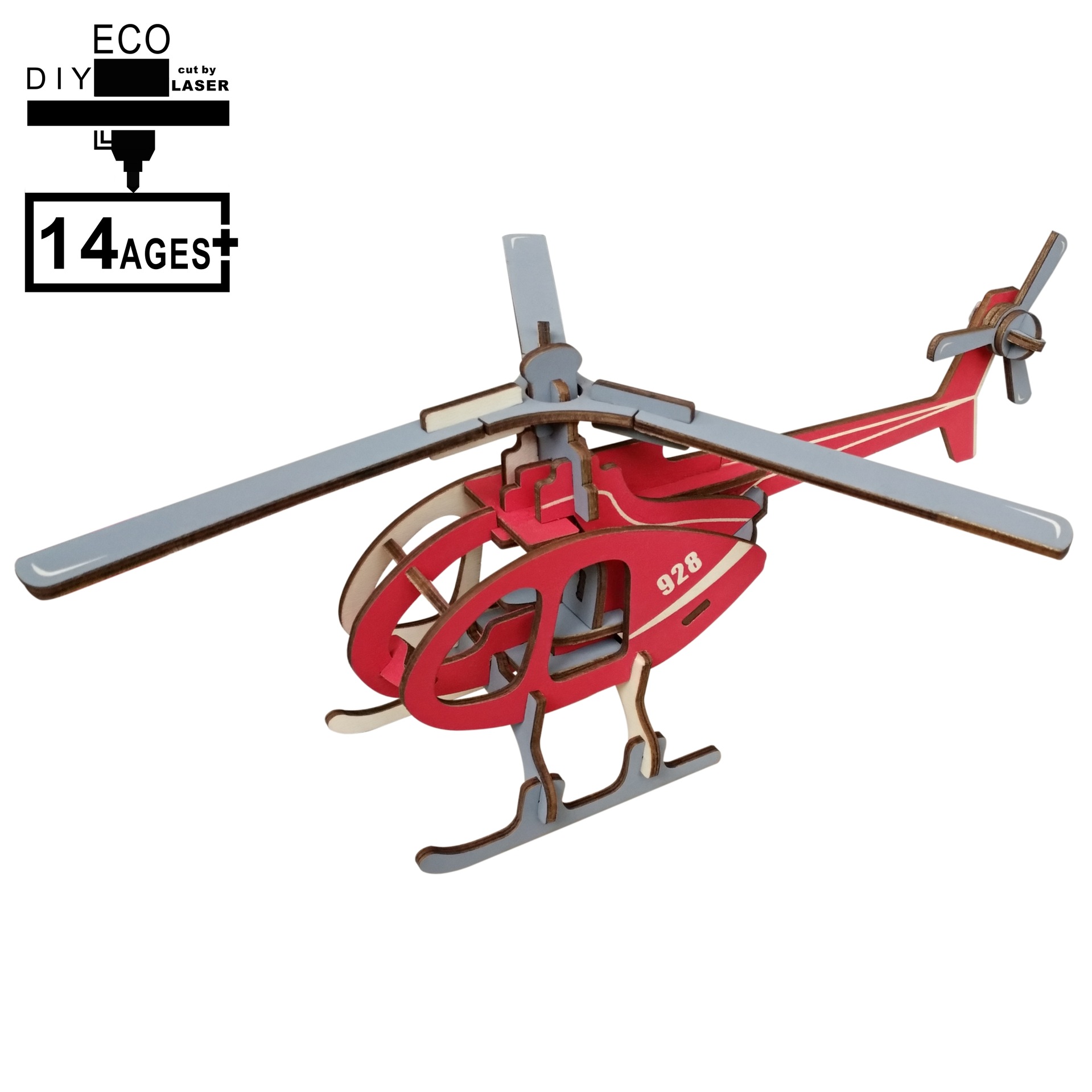 3D木制立体拼图拼板激光切割DIY拼装益智玩具直升机 10套