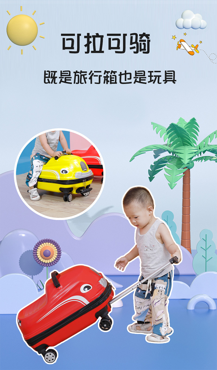 (特)20寸可骑行儿童拉杆箱定logo静音万向轮旅行箱动漫卡通宝宝礼品箱