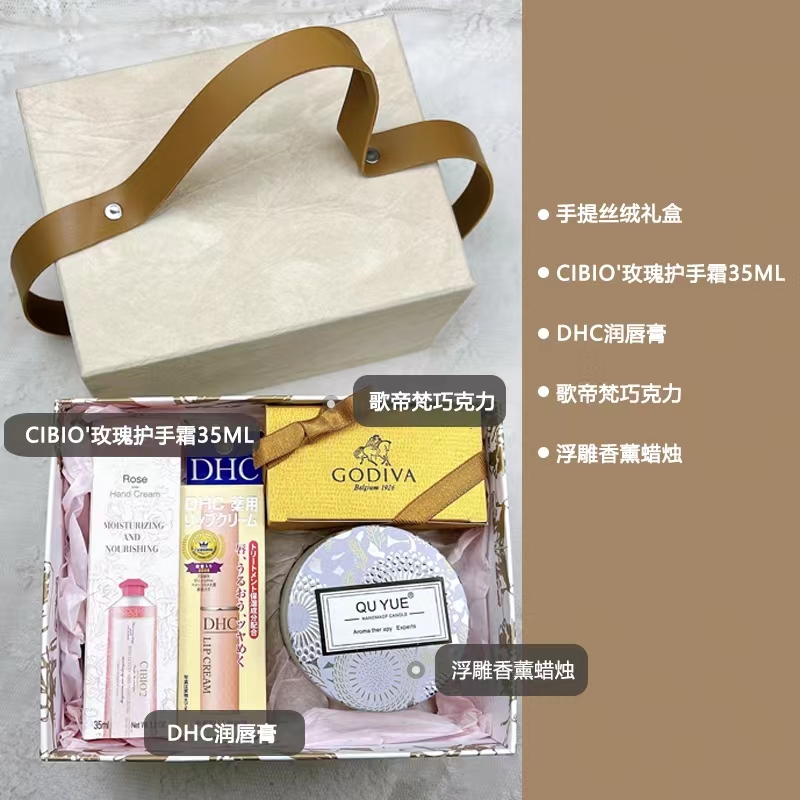 - D款米色:DHC润唇膏 浮雕香薰蜡烛 希蓓欧护手霜35ml 歌帝梵巧克力x1