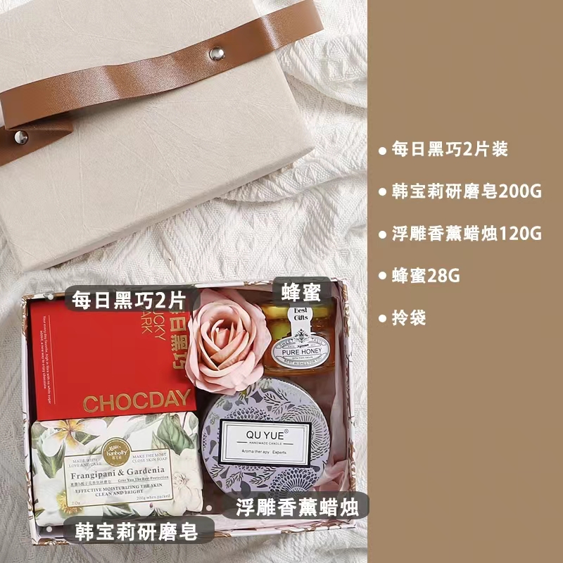 - K款米色:每日黑巧2片装 韩宝莉研磨皂200G 浮雕香薰蜡烛120G 蜂蜜28G