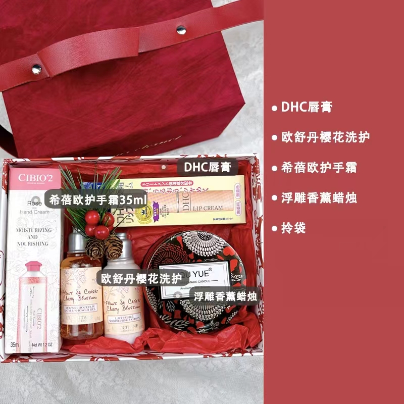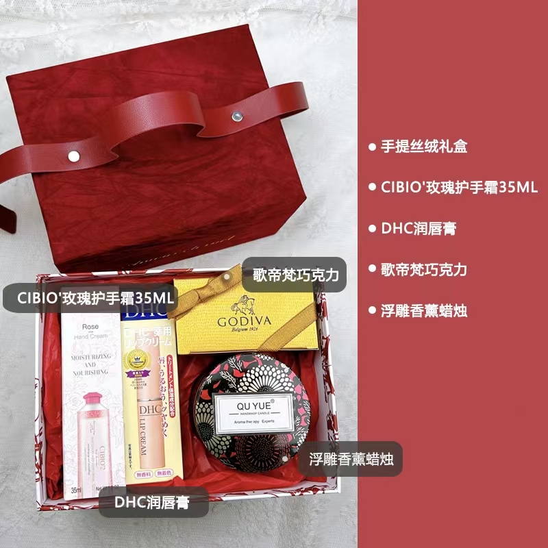 - D款酒红色:DHC润唇膏 浮雕香薰蜡烛 希蓓欧护手霜35ml 歌帝梵巧克力 x1