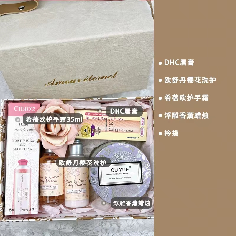 - M款米色:DHC润唇膏 浮雕香薰蜡烛 希蓓欧护手霜35ml 欧舒丹洗护35ML*2