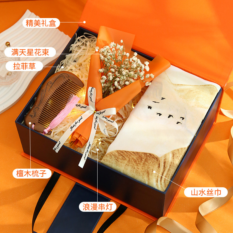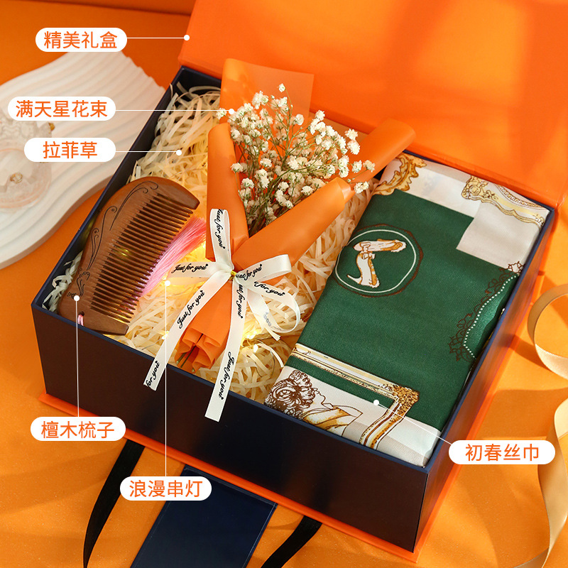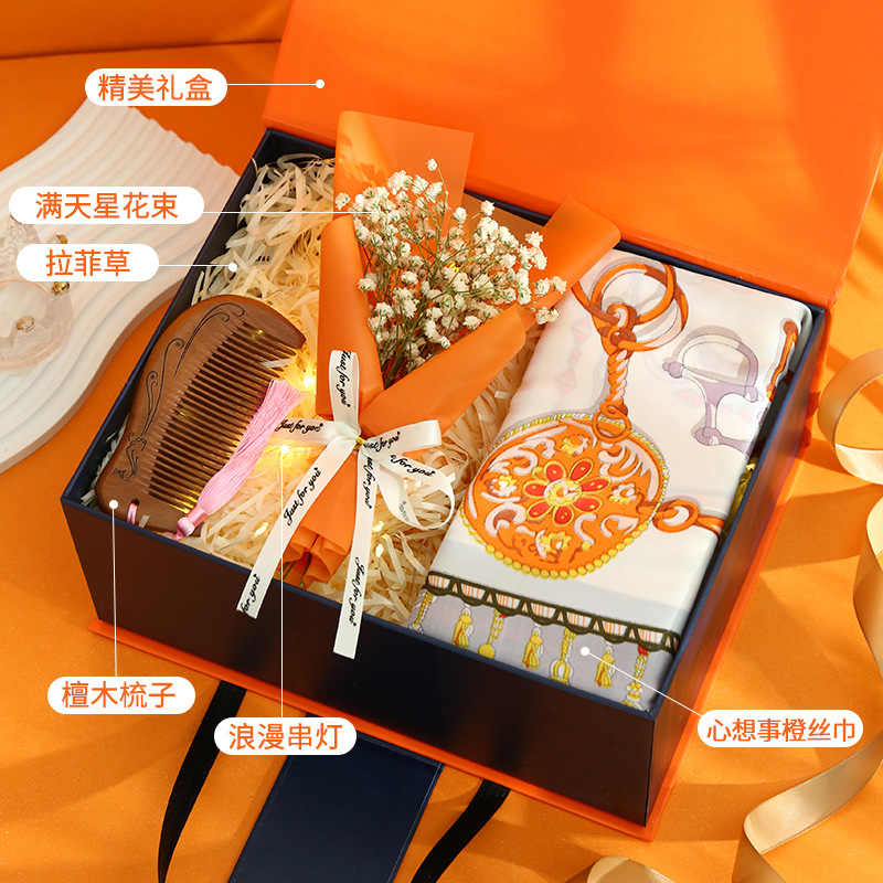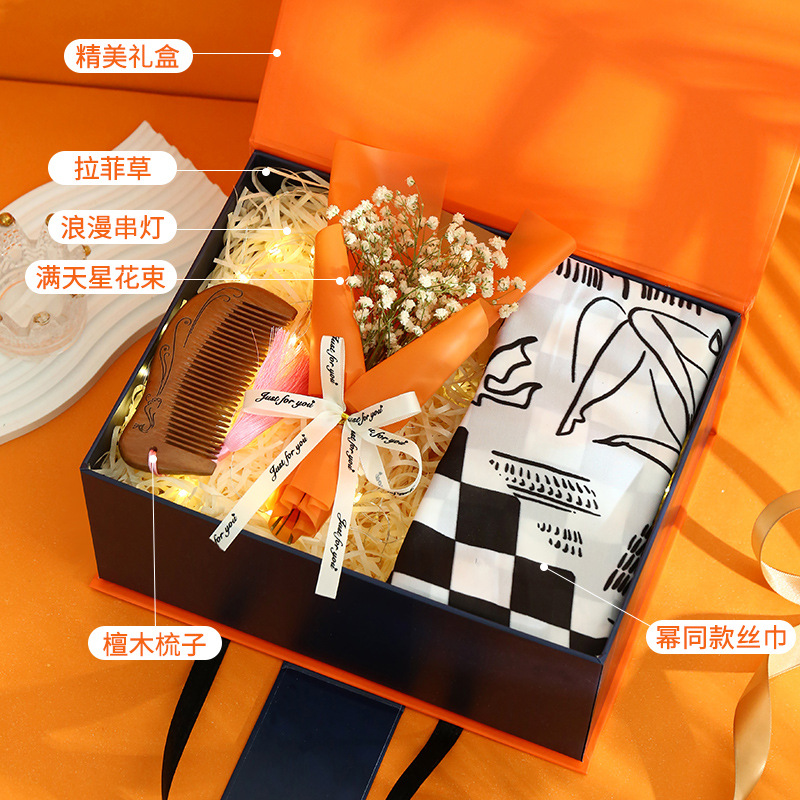 母亲节礼物 丝巾套装礼盒礼品 木梳 生日礼物