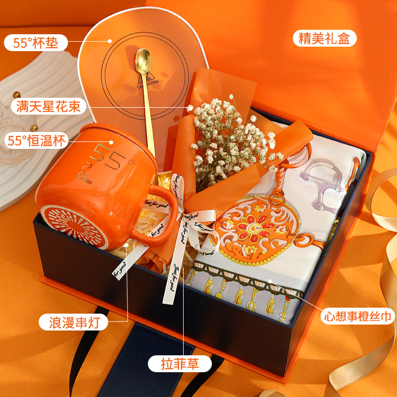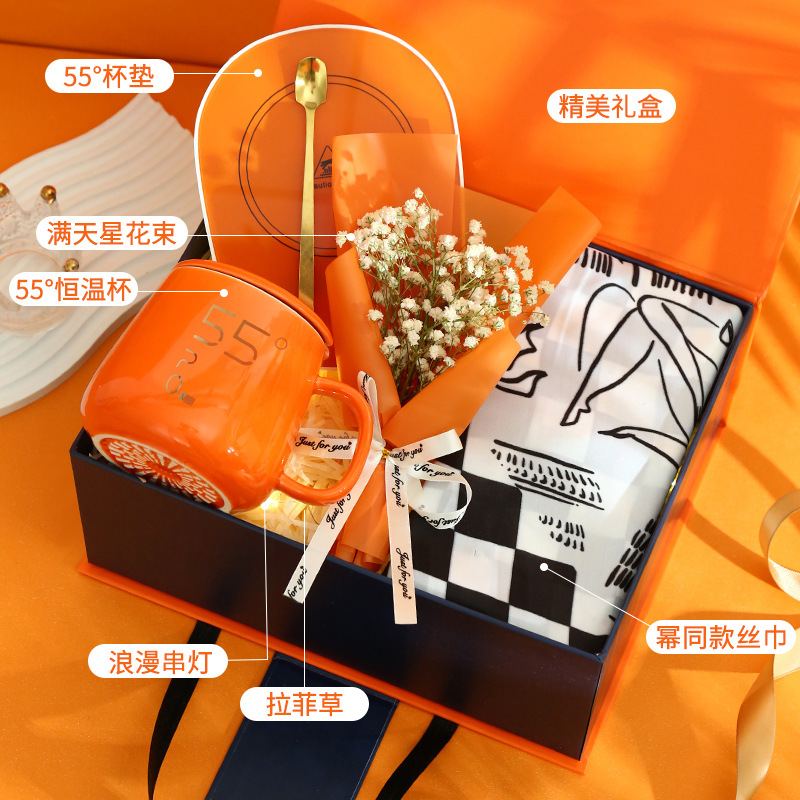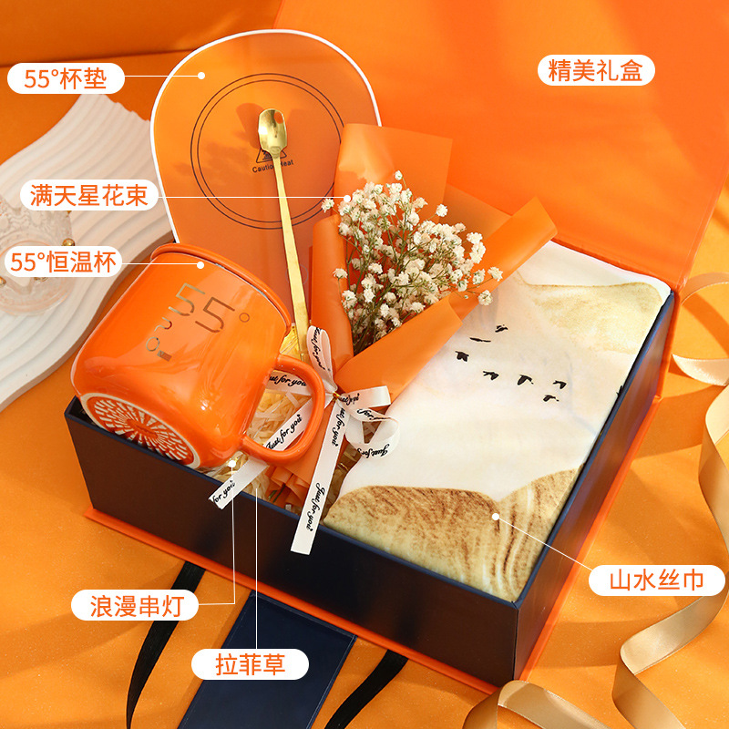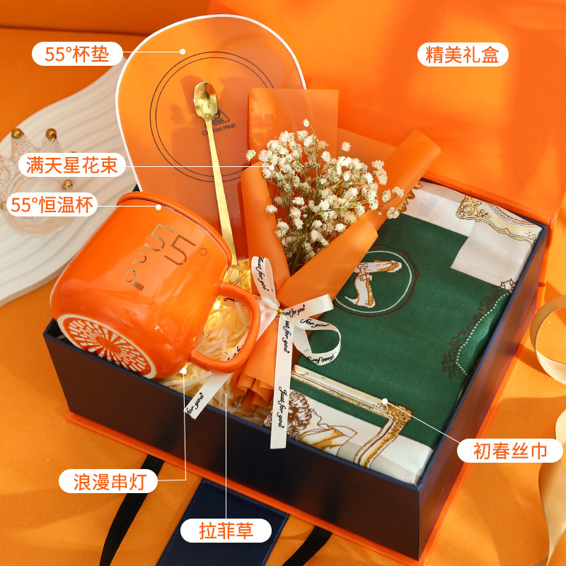 母亲节礼物 丝巾套装礼盒礼品 55度恒温杯 生日礼物