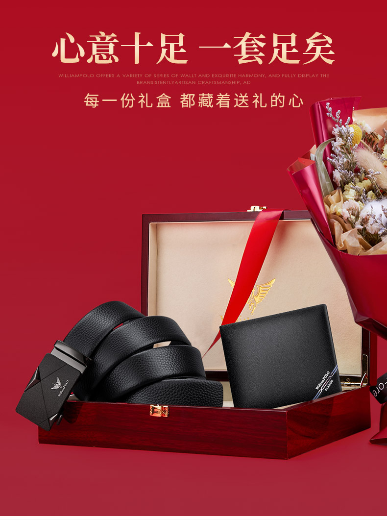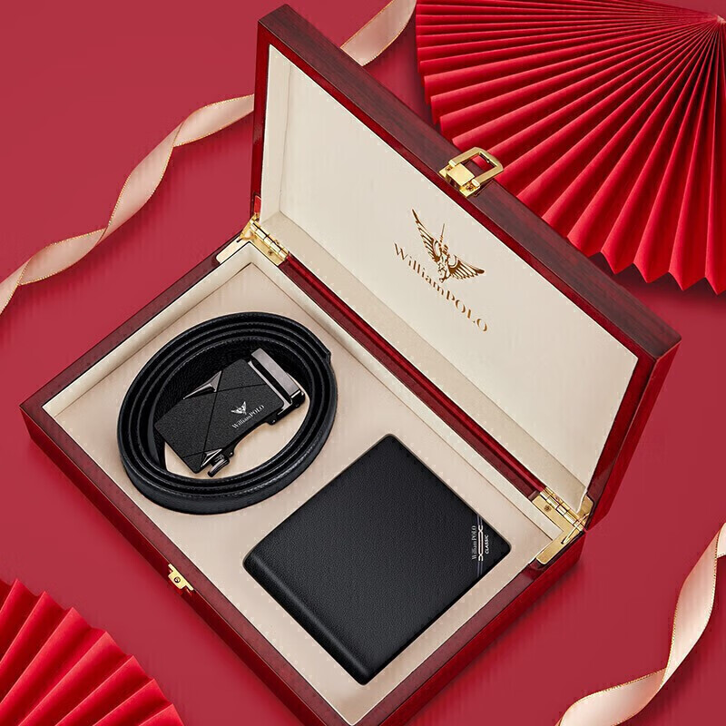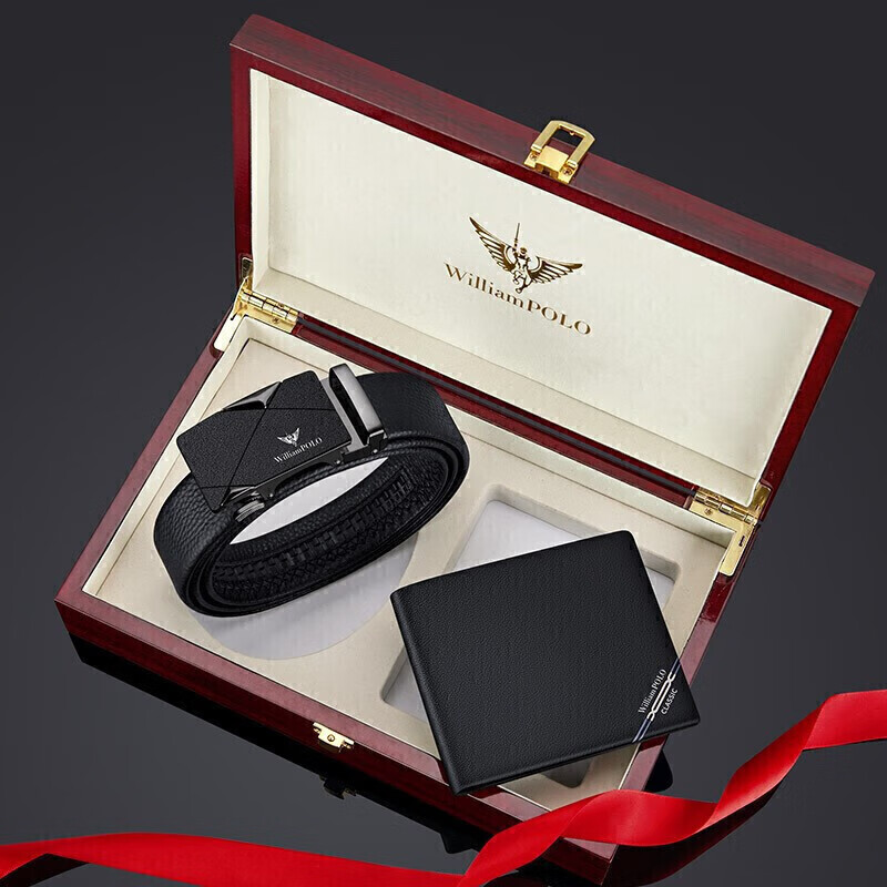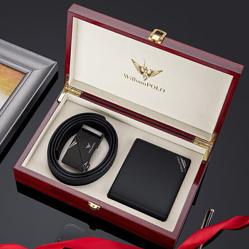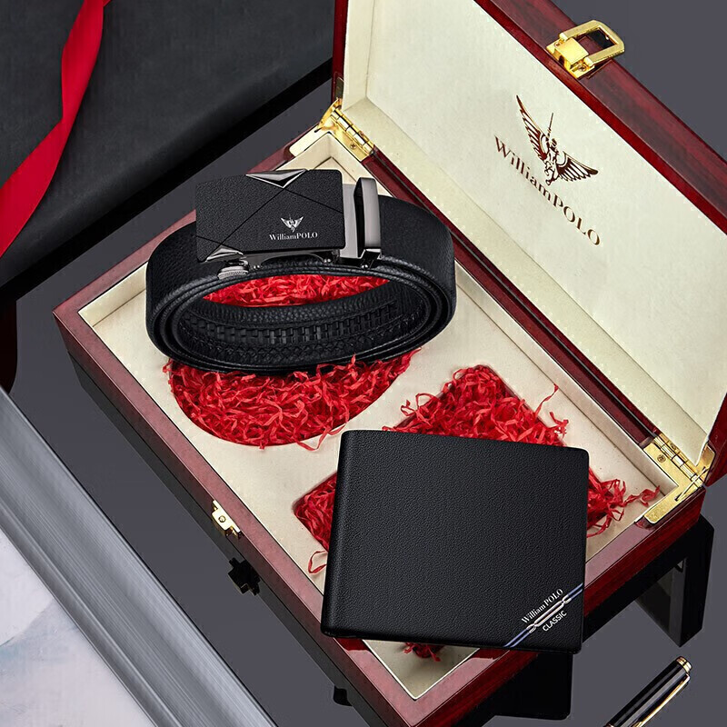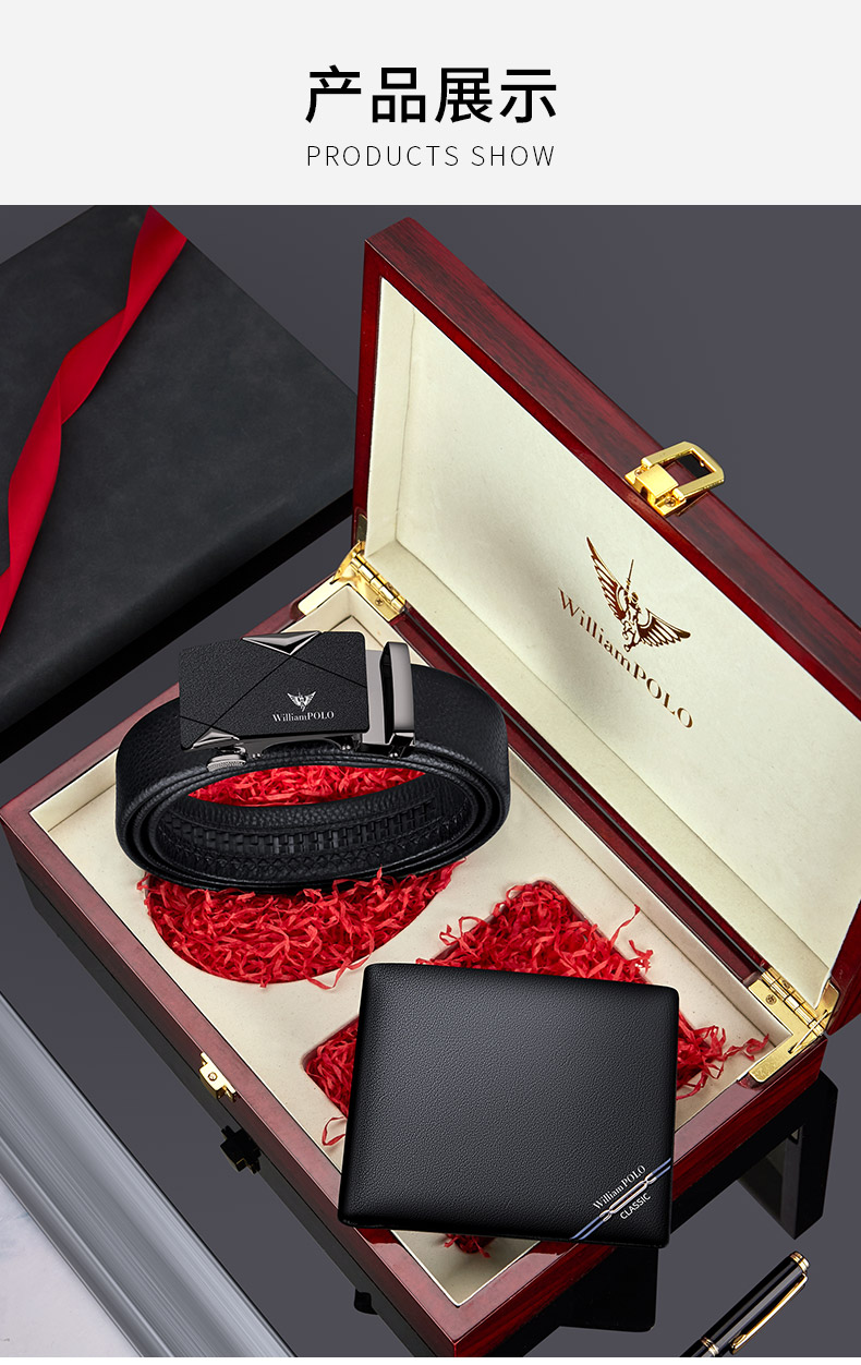 (特)英皇保罗WILLIAMPOLO男士钱包皮带礼盒套装牛皮自动扣皮带横款钱包送父亲男友老公生日情人节礼物LHP003